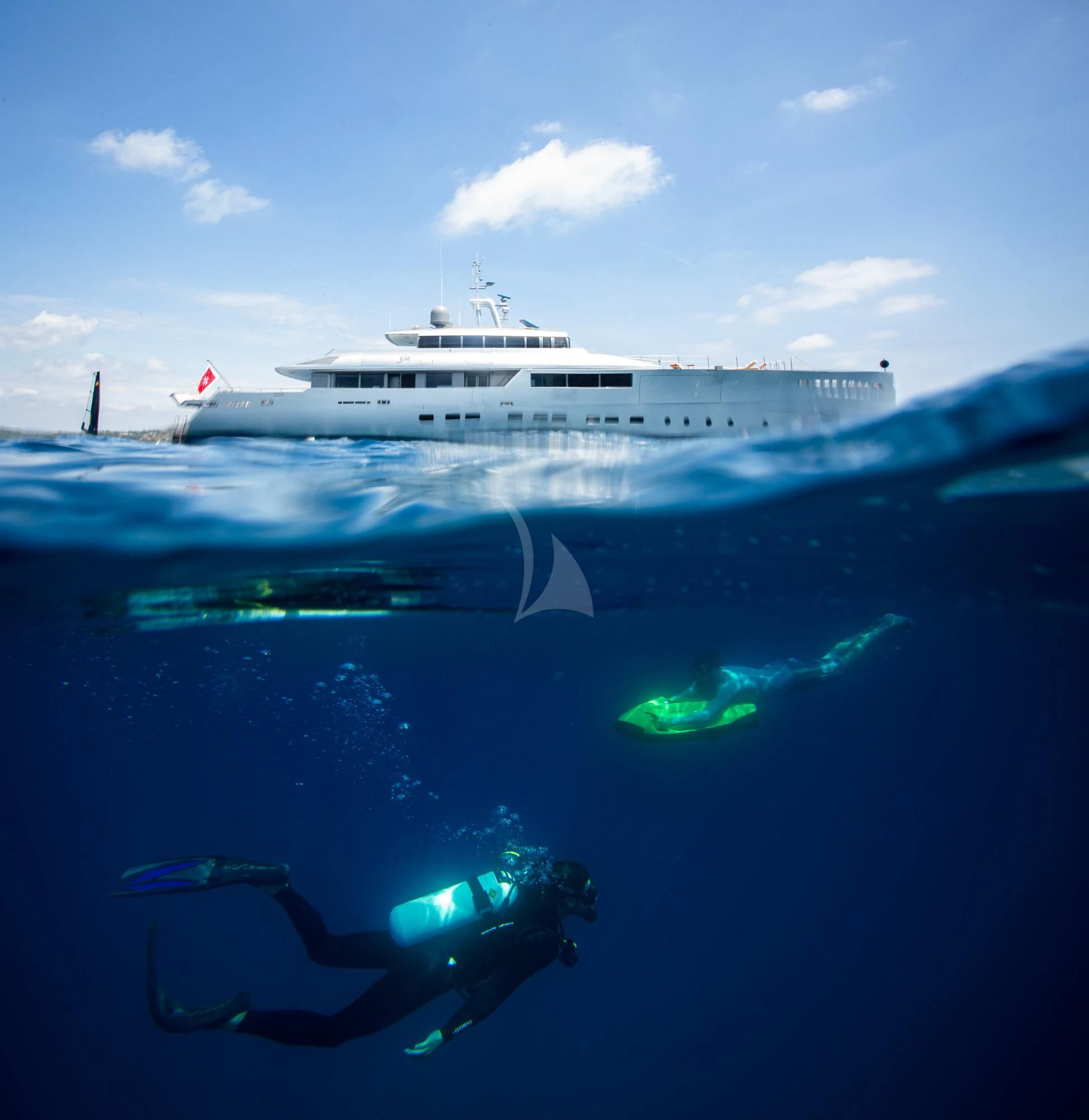 Introducing FALCO MOSCATA, a stunning 164-foot custom expedition yacht built by the world-renowned Perini Navi shipyard in 2010 and underwent an extensive refit in 2022. Constructed with a robust aluminum hull, this motor yacht boasts a displacement of 430 tons and gross tonnage of 497. With her impressive beam spanning over 31 feet and maximum draft reaching just under seven feet, she is designed to traverse the high seas with grace and stability.