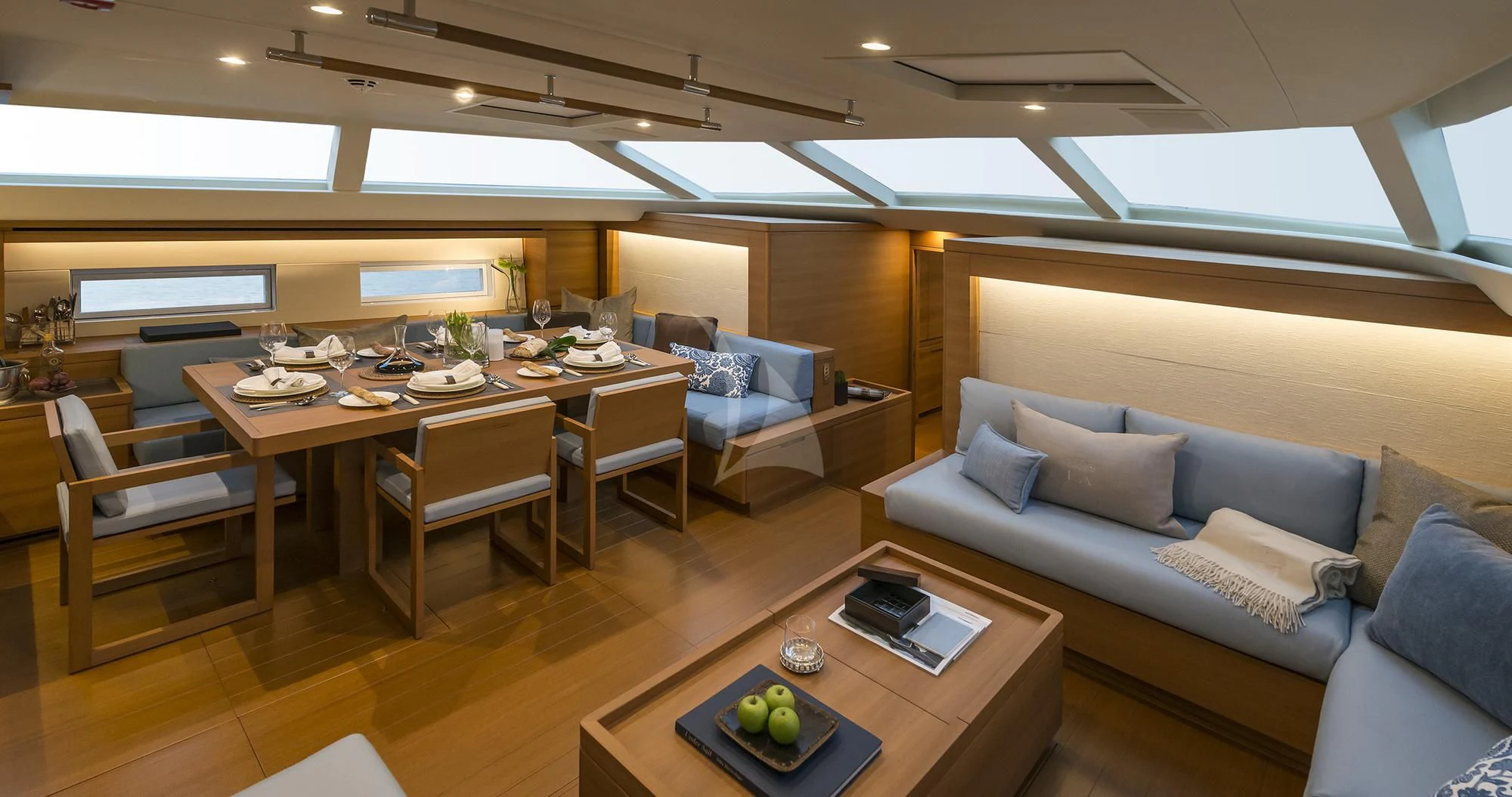The main salon serves as an inviting social hub where guests can unwind after a day full of sea adventures or enjoy gourmet meals meticulously prepared by our talented chef in the dining area adjacent to it. For fitness enthusiasts who don't want to miss their workout routine even while cruising on high seas, there's also an onboard gym equipped with state-of-the-art fitness equipment.