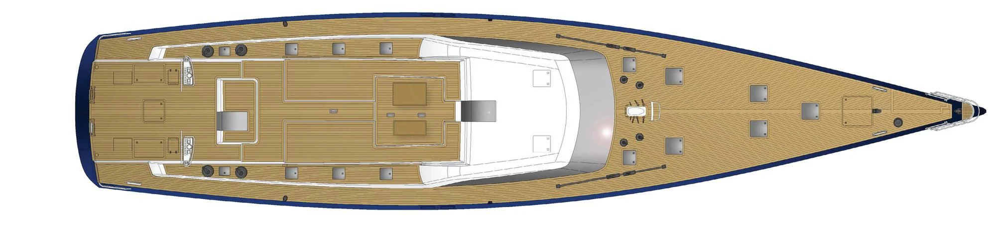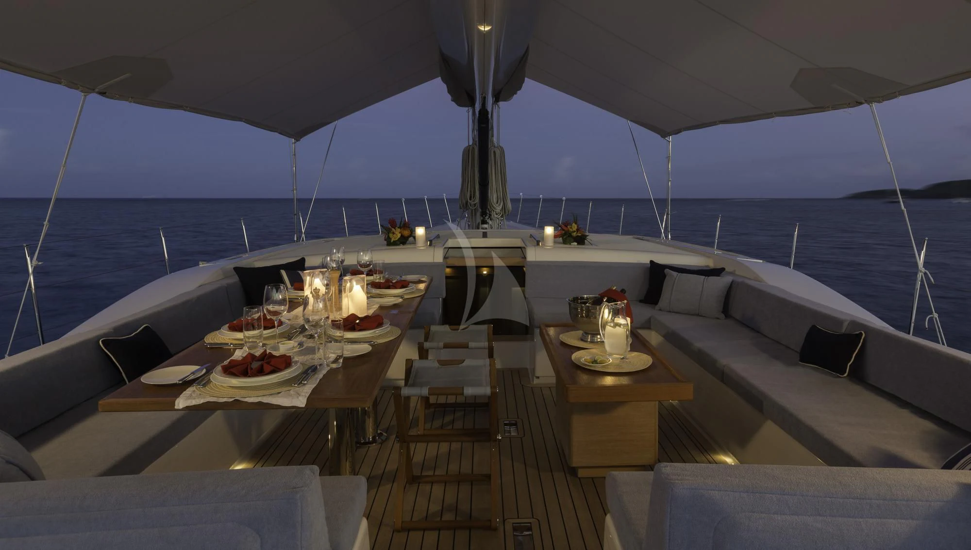 As you step onto the deck, you'll find ample space for alfresco dining or lounging under the sun on comfortable deck furniture while enjoying panoramic views over the ocean horizon. The sundeck area invites guests to soak up some rays or indulge in refreshing cocktails served by FARFALLA's highly skilled crew members.