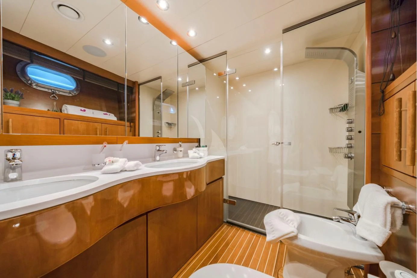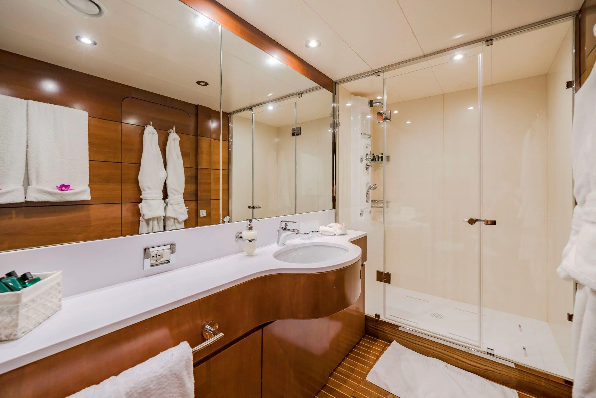 The exterior spaces on FIORENTE are truly exceptional; they offer numerous opportunities for relaxation and entertainment amidst panoramic ocean views. She can comfortably accommodate up to ten guests across five luxurious cabins, attended by five dedicated crew members ensuring an unparalleled level of service during your voyage.