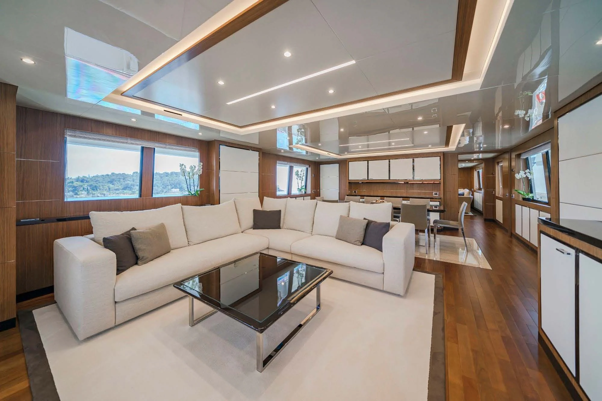 Step inside FIORENTE and you will be instantly mesmerized by her elegant interior design that offers a seamless blend between comfort and luxury. The living spaces are adorned with high-end finishes, plush furnishings, state-of-the-art amenities including Wi-Fi connectivity throughout the yacht for those who wish to stay connected even while sailing across azure waters.