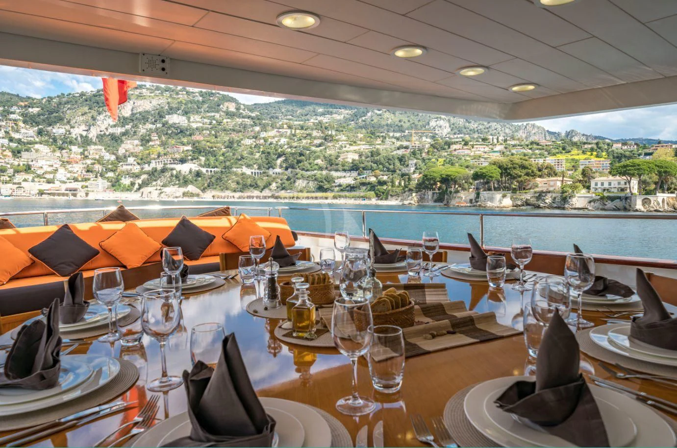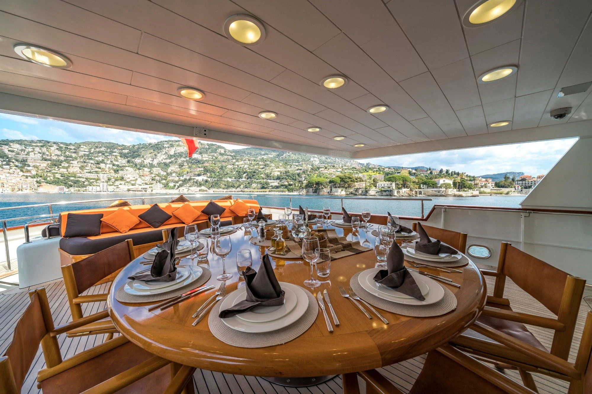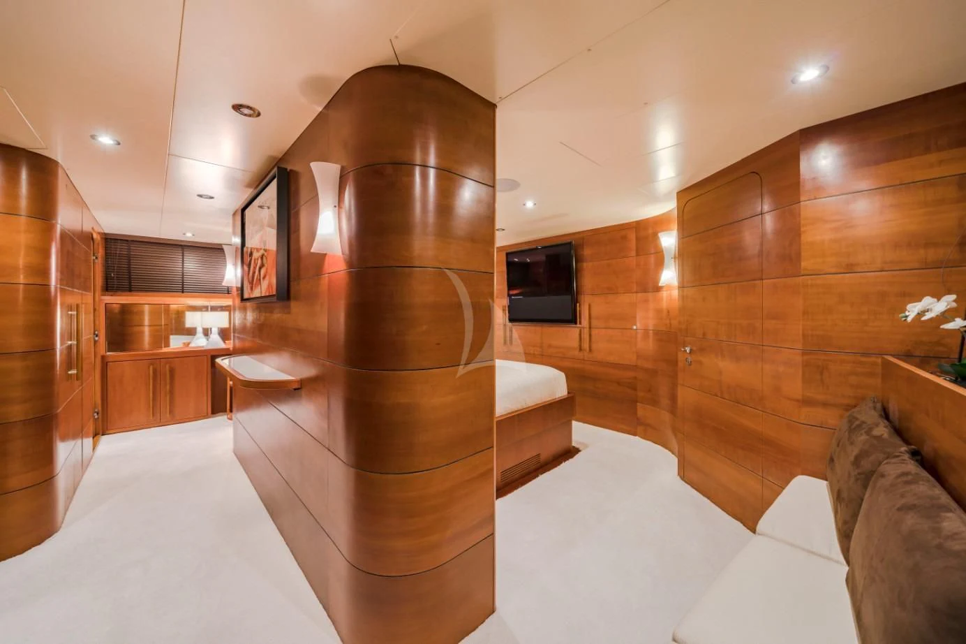 The accommodation onboard FIORENTE is nothing short of spectacular; each cabin radiates warmth through its tastefully chosen color palette along with unique design elements adding character to each room. The master stateroom stands out as it offers unrivaled luxury complete with opulent bedding options providing utmost comfort during your stay aboard this magnificent yacht.