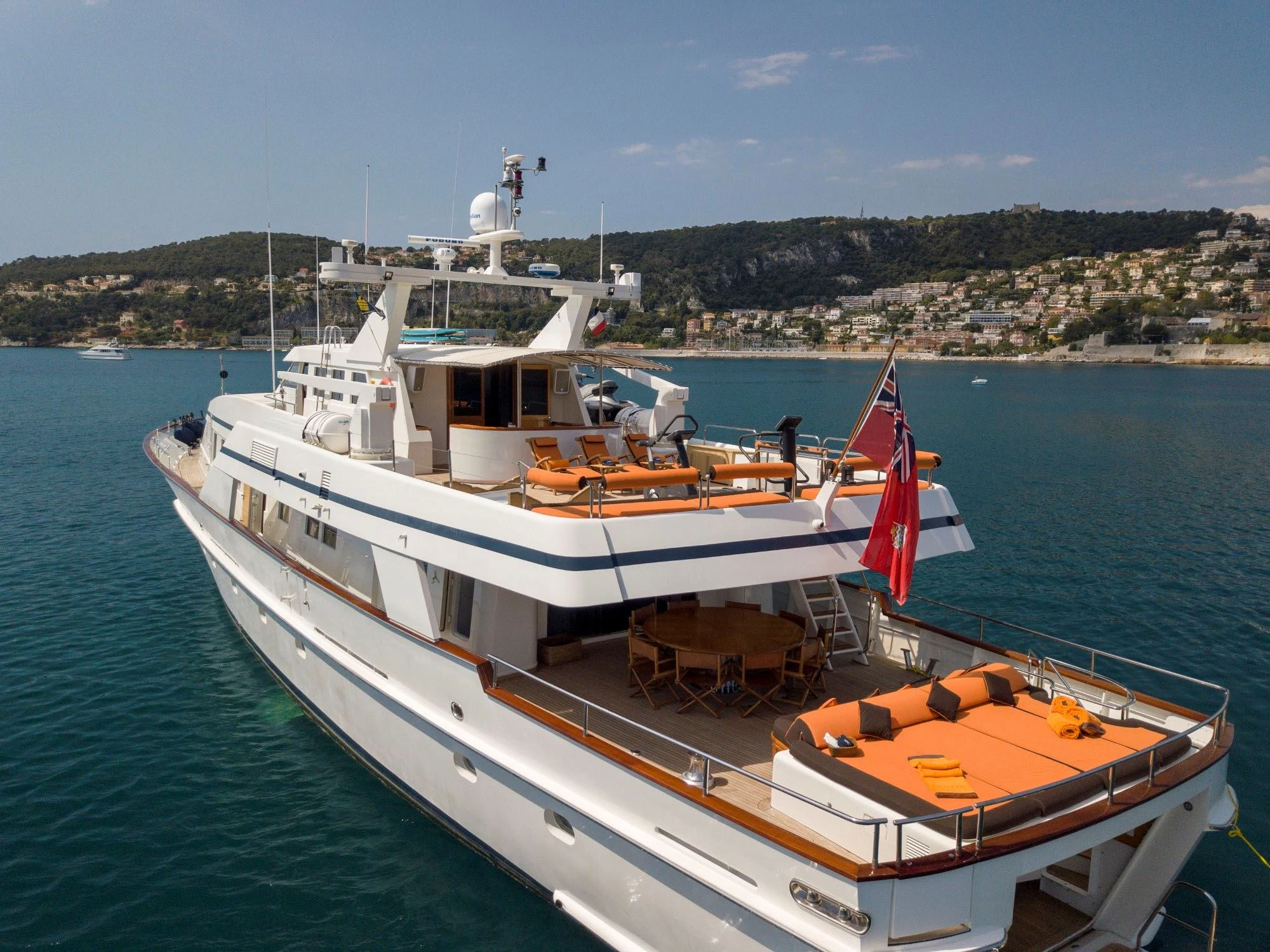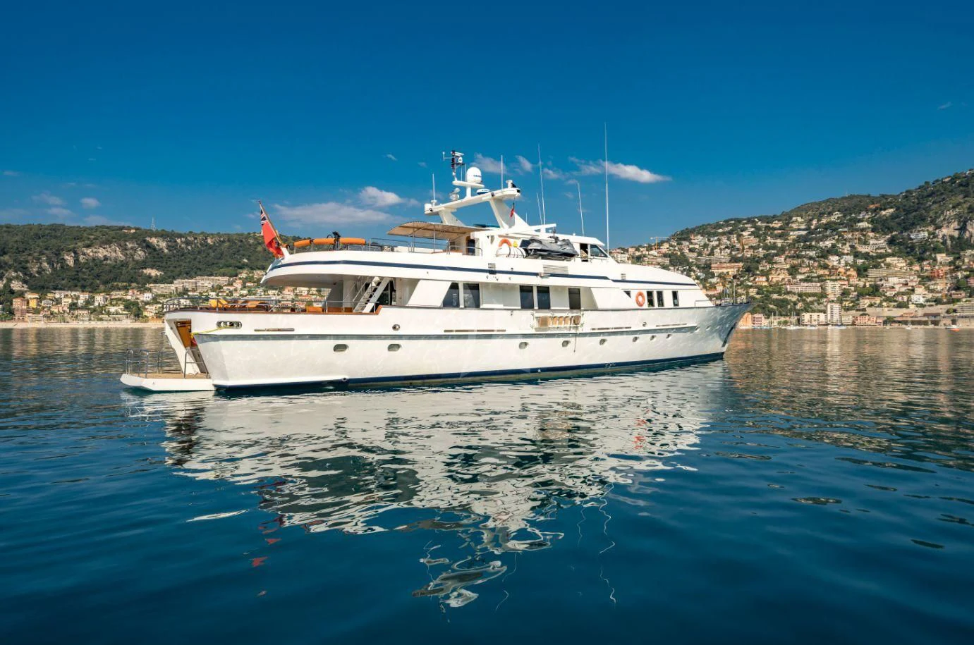 Unveiling the exquisitely crafted FIORENTE, a testament to timeless elegance and Italian craftsmanship. Launched by renowned Ferronavale shipyard in 1990 and meticulously refitted in 2018, this magnificent vessel of 36.95 meters (121 feet) in length is a marvel of maritime engineering. FIORENTE's exterior design is a harmonious blend of classic lines and modern aesthetics, showcasing the brilliance of displacement motor yachts.