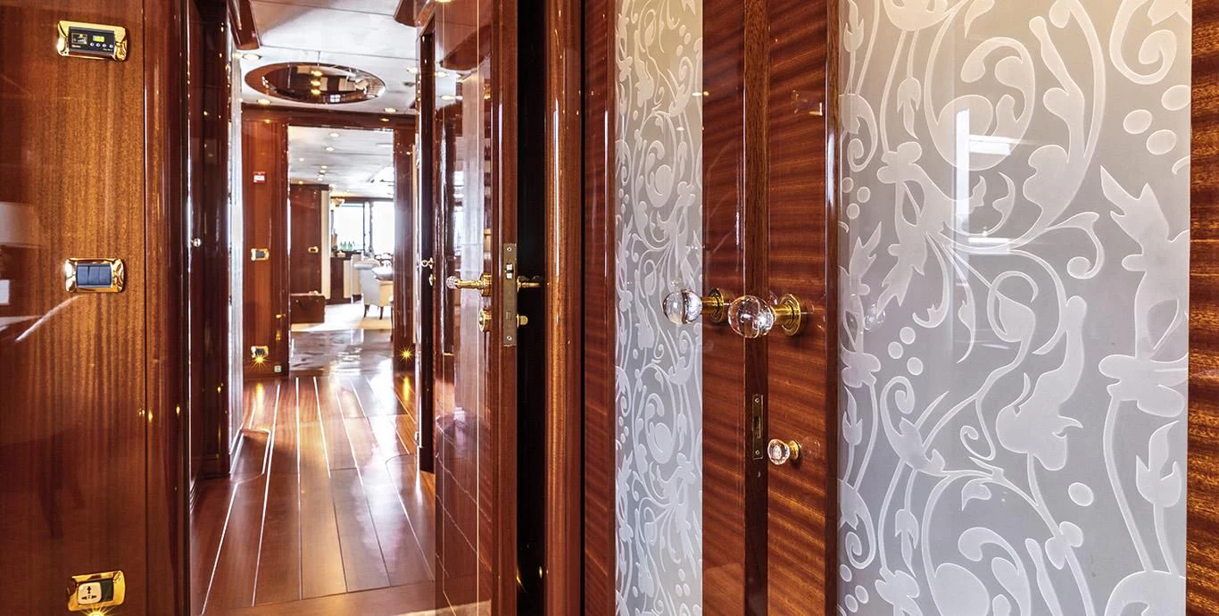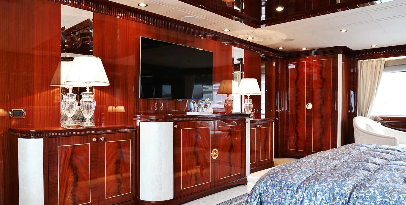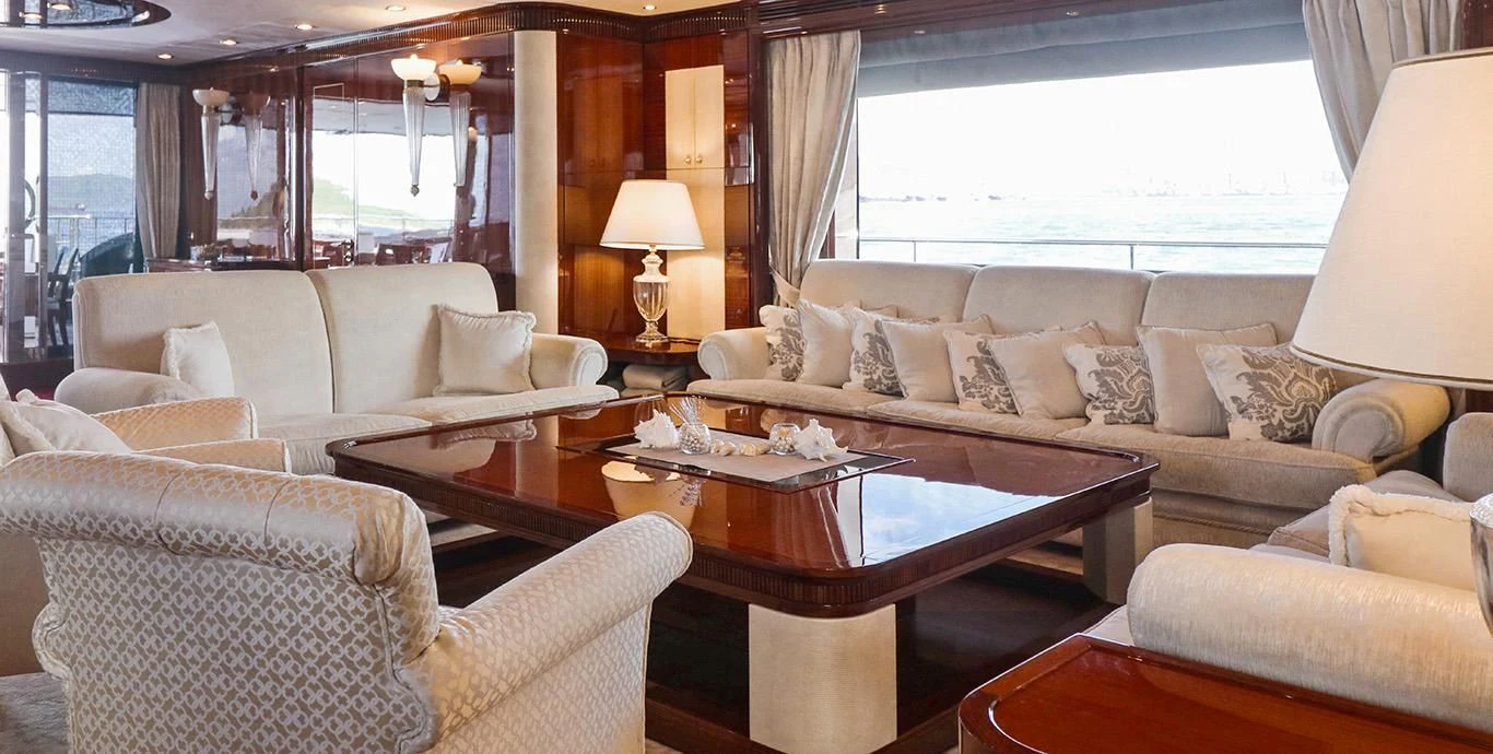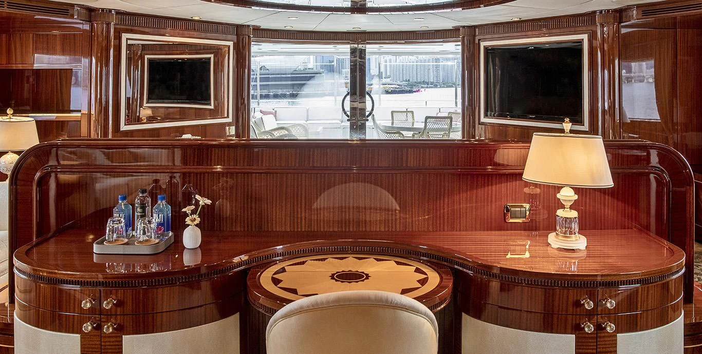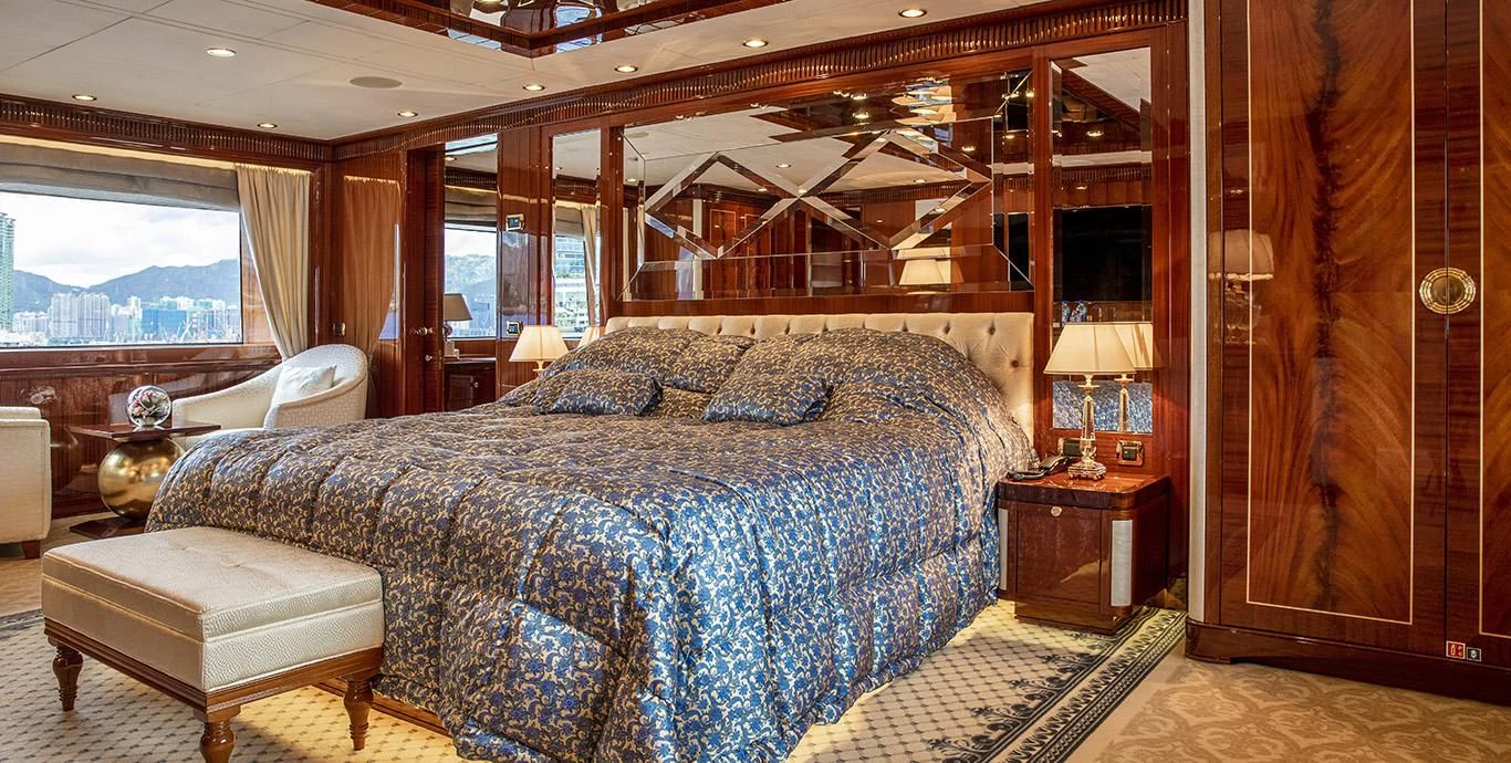 Step inside FORWIN, and you'll be greeted by interiors that are nothing short of breathtaking. Six opulent cabins accommodate up to ten guests in unrivaled luxury while nine dedicated crew members ensure every need is met with exceptional service standards. Each stateroom boasts plush furnishings complemented by a sophisticated color palette that exudes warmth and comfort.