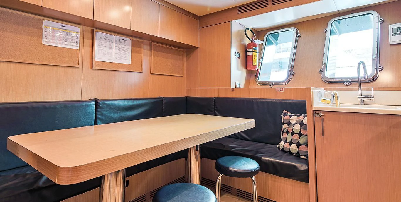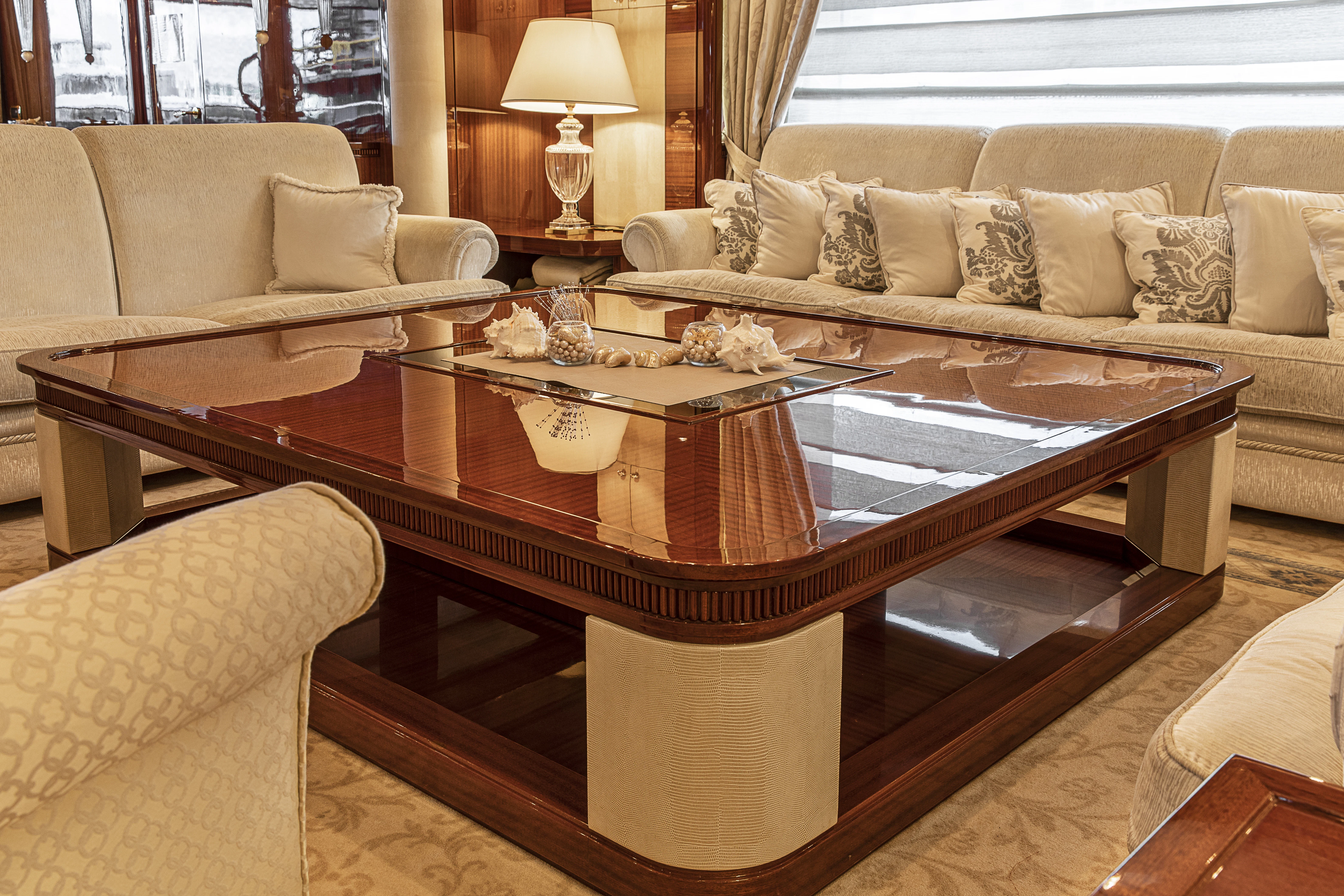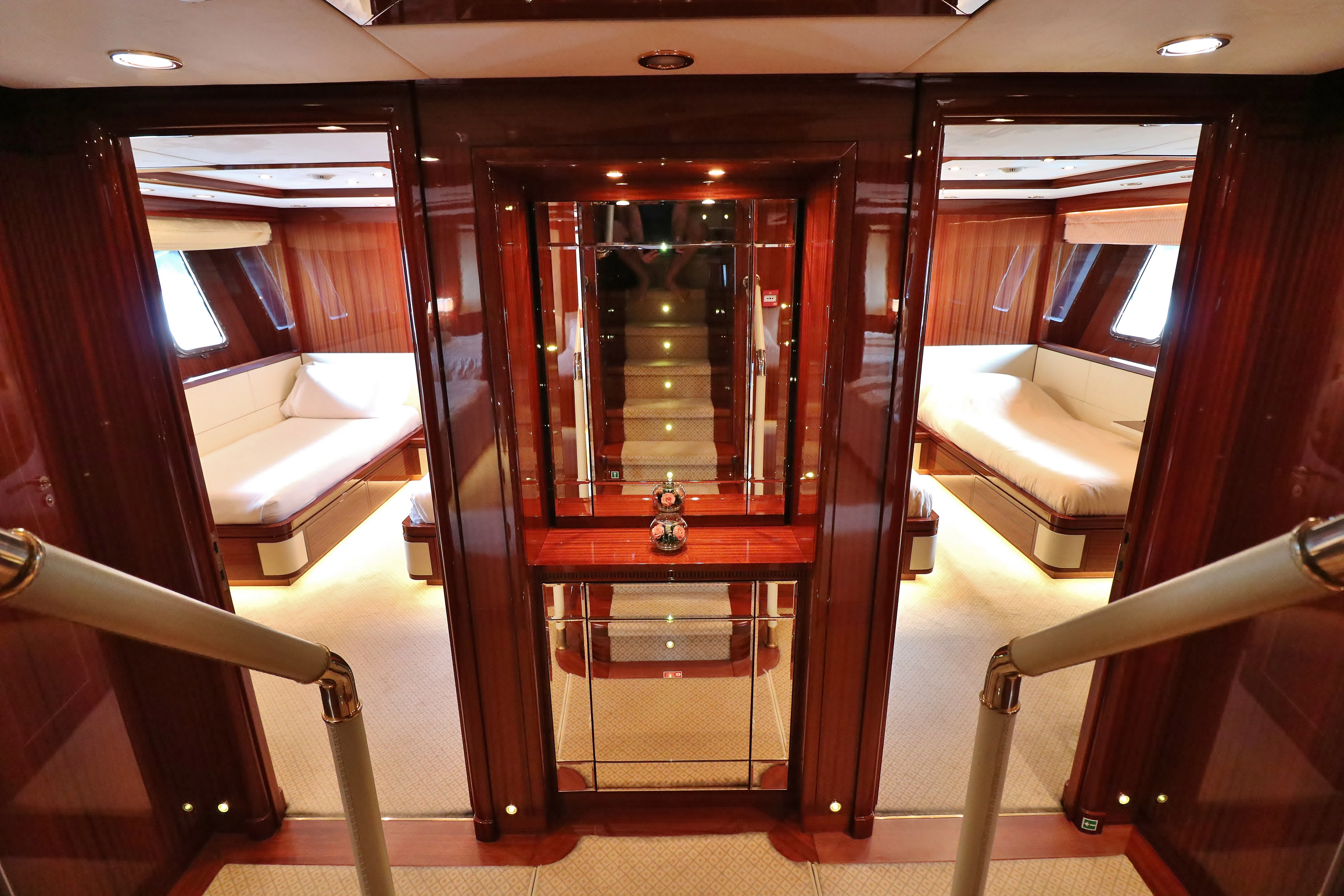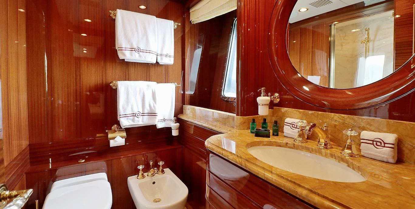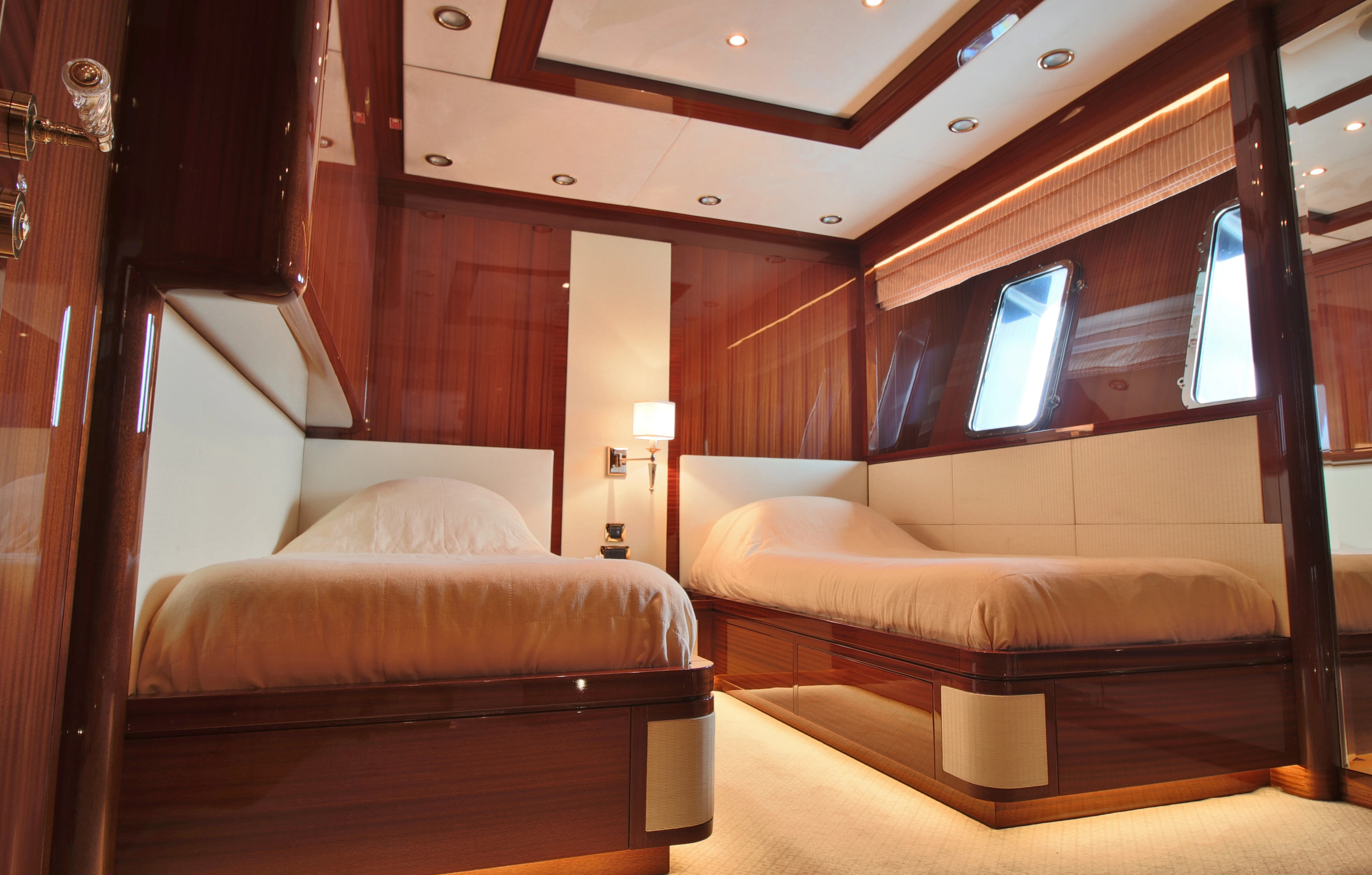 Step inside FORWIN, and you'll be greeted by interiors that are nothing short of breathtaking. Six opulent cabins accommodate up to ten guests in unrivaled luxury while nine dedicated crew members ensure every need is met with exceptional service standards. Each stateroom boasts plush furnishings complemented by a sophisticated color palette that exudes warmth and comfort.