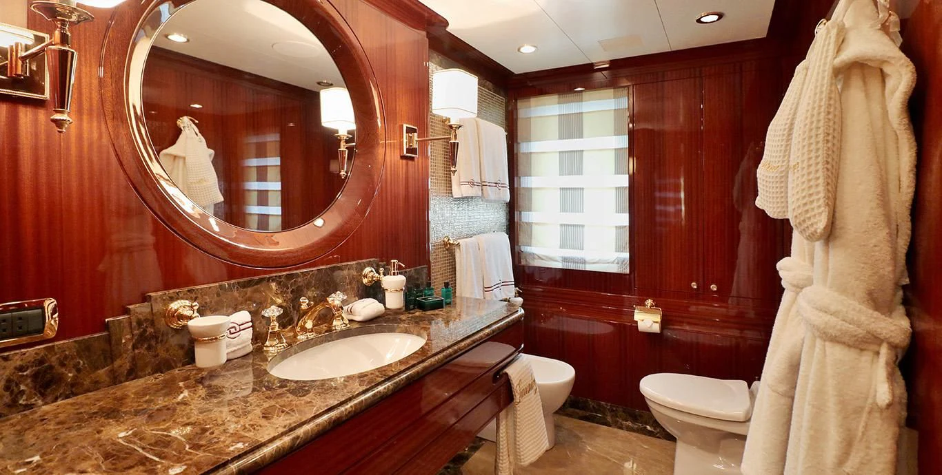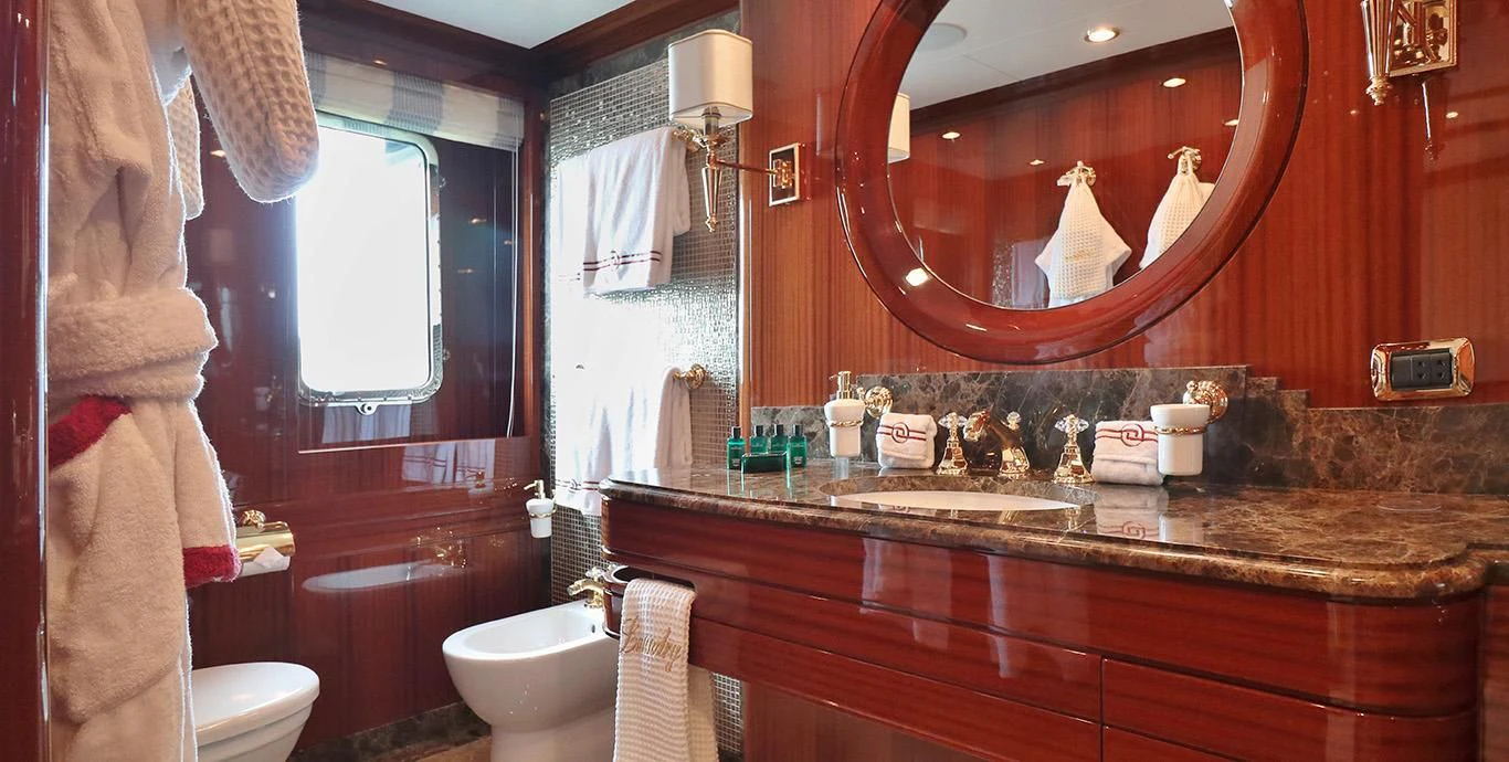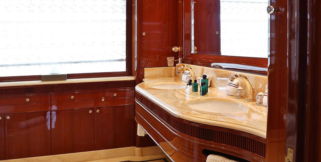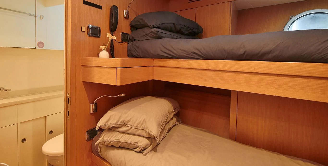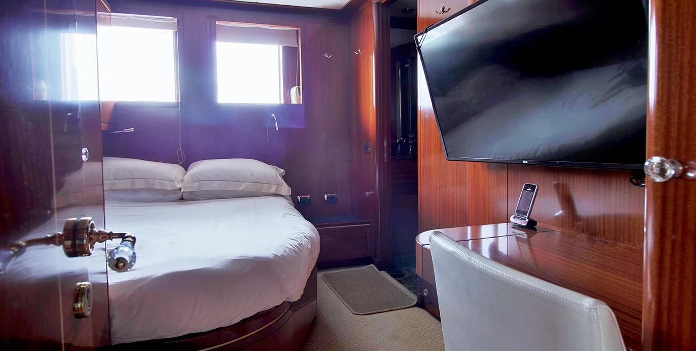 Step inside FORWIN, and you'll be greeted by interiors that are nothing short of breathtaking. Six opulent cabins accommodate up to ten guests in unrivaled luxury while nine dedicated crew members ensure every need is met with exceptional service standards. Each stateroom boasts plush furnishings complemented by a sophisticated color palette that exudes warmth and comfort.