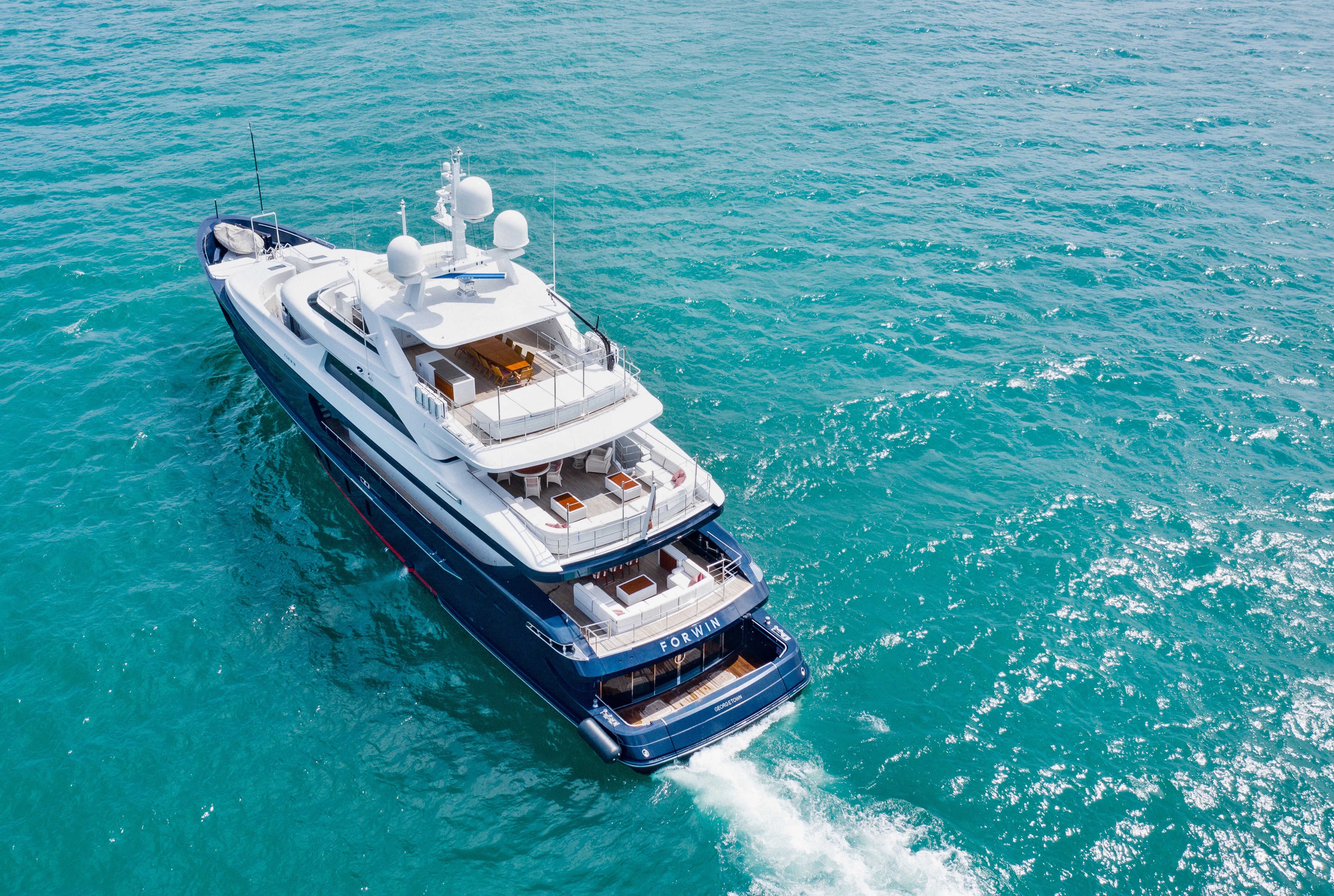 FORWIN, a magnificent and majestic vision of maritime excellence, is a distinctive creation from the esteemed Italian shipyard Sanlorenzo. Launched in 2013 and refurbished in 2016, this displacement motor yacht showcases an exquisite balance of form and function. With its impressive length overall of 150 feet (46 meters) and an expansive beam of 29 feet (9.3 meters), FORWIN commands attention on any horizon.