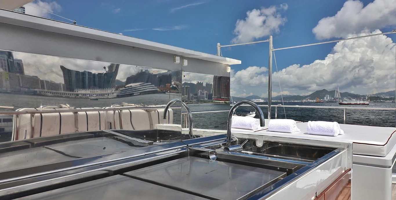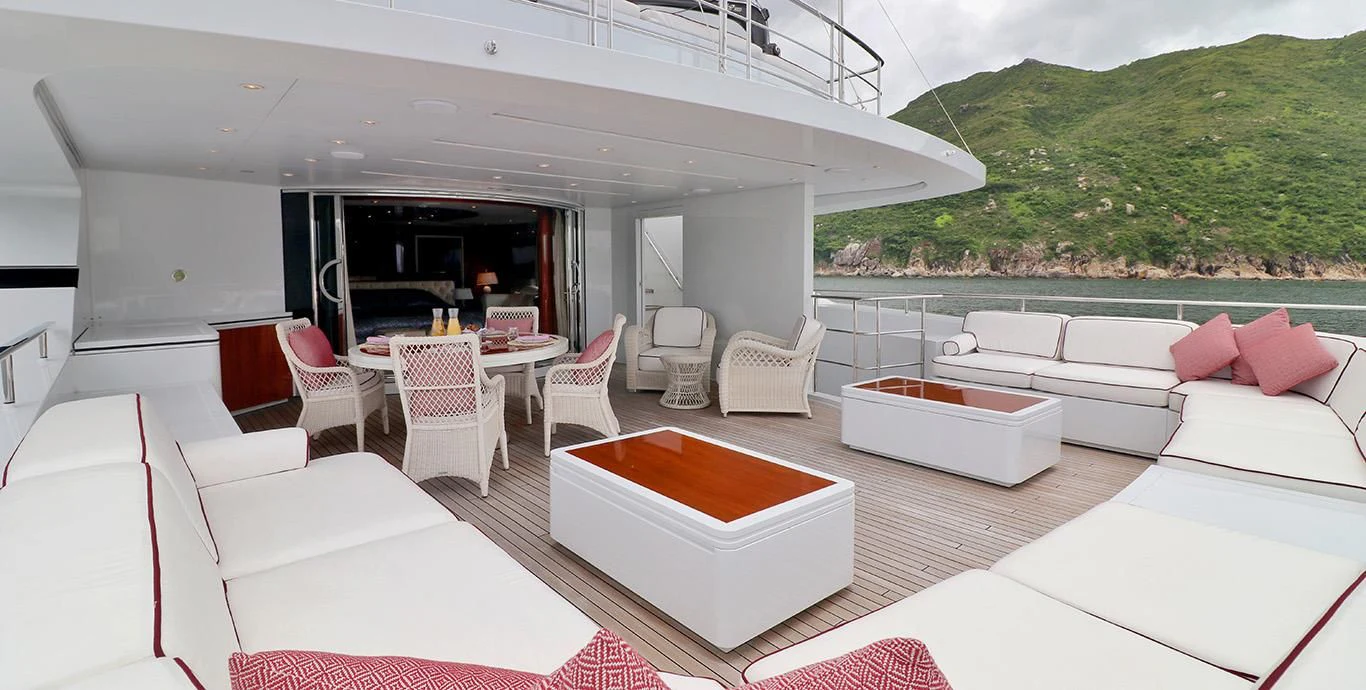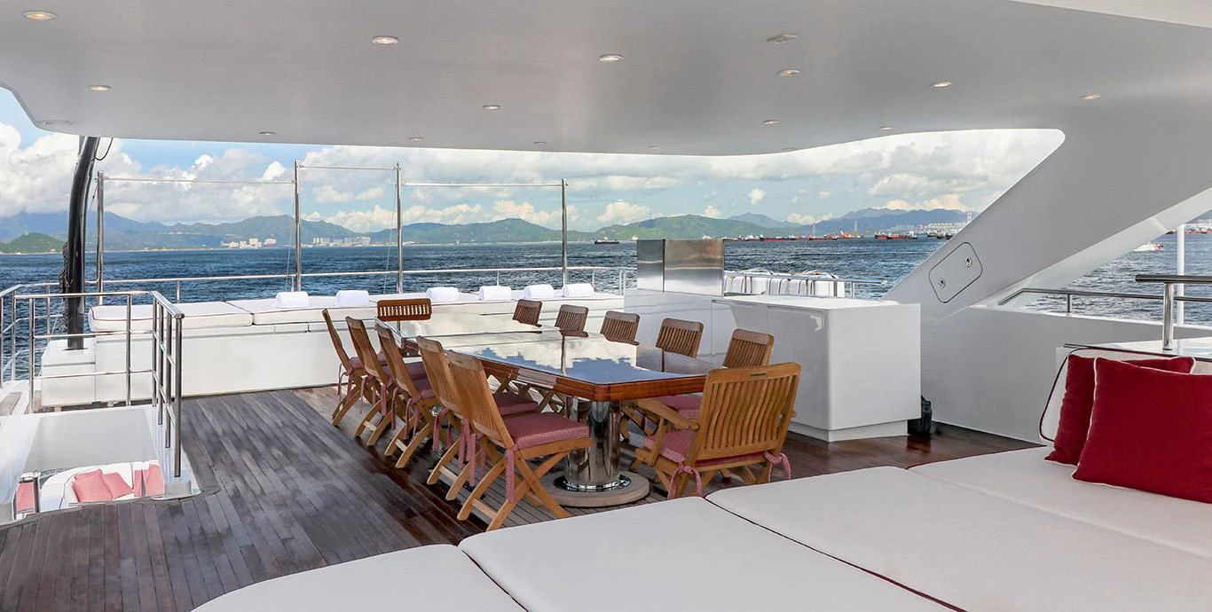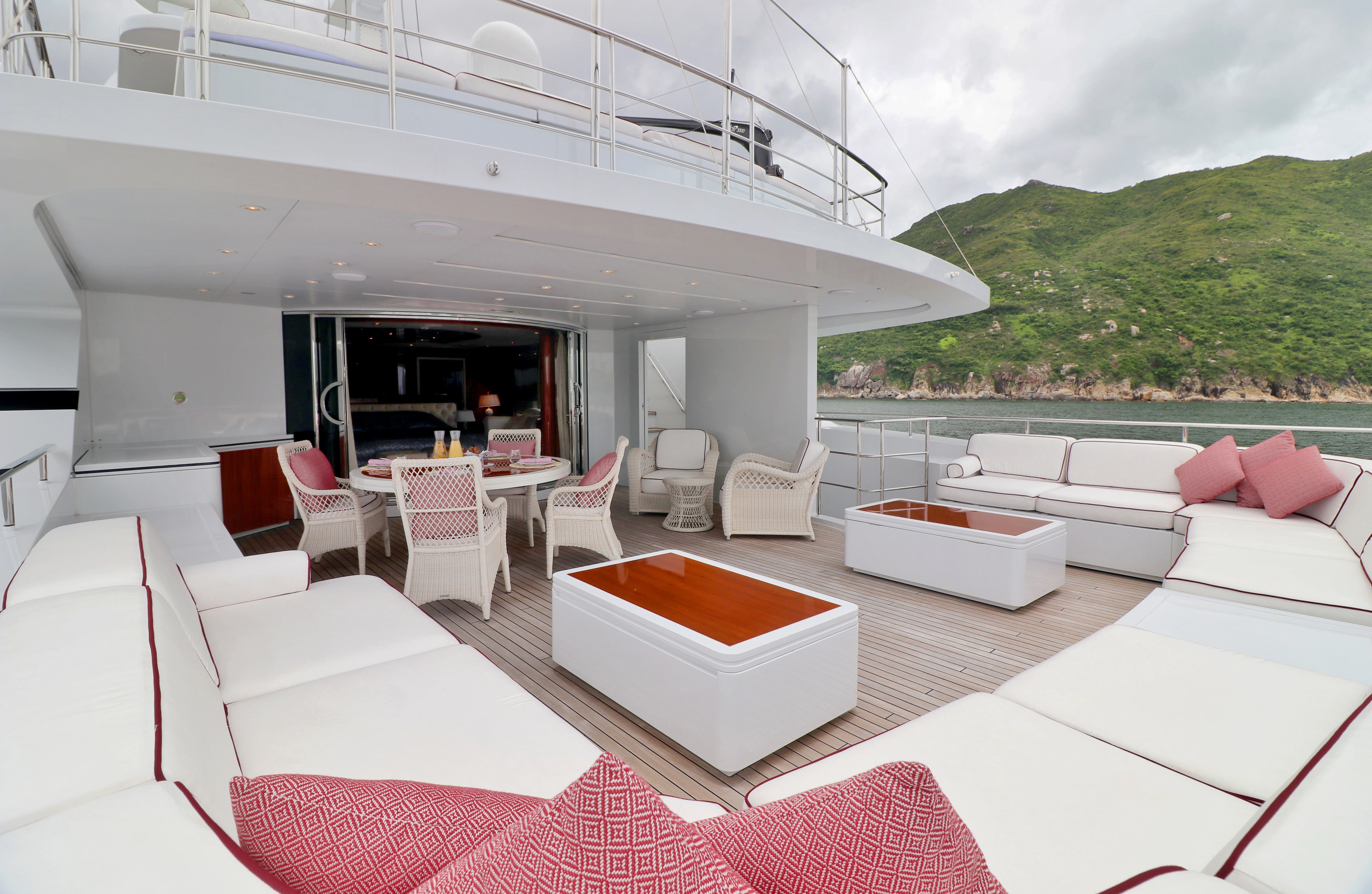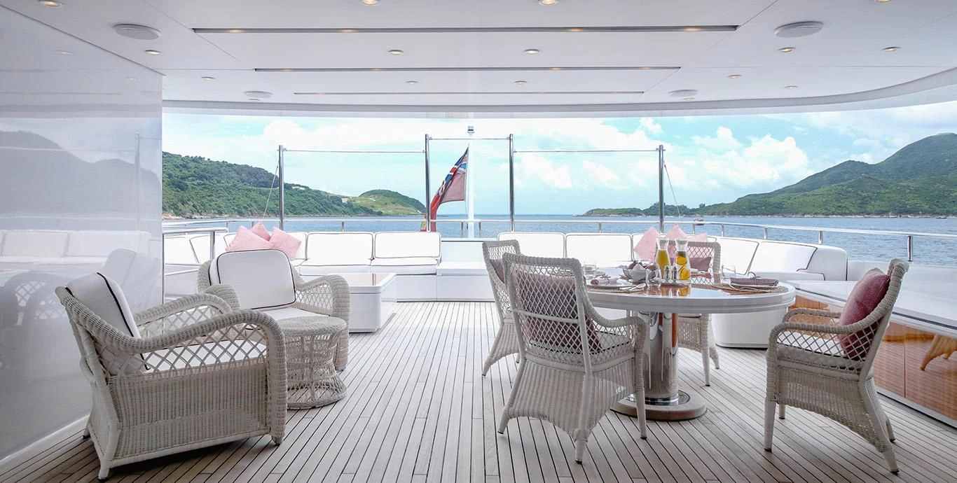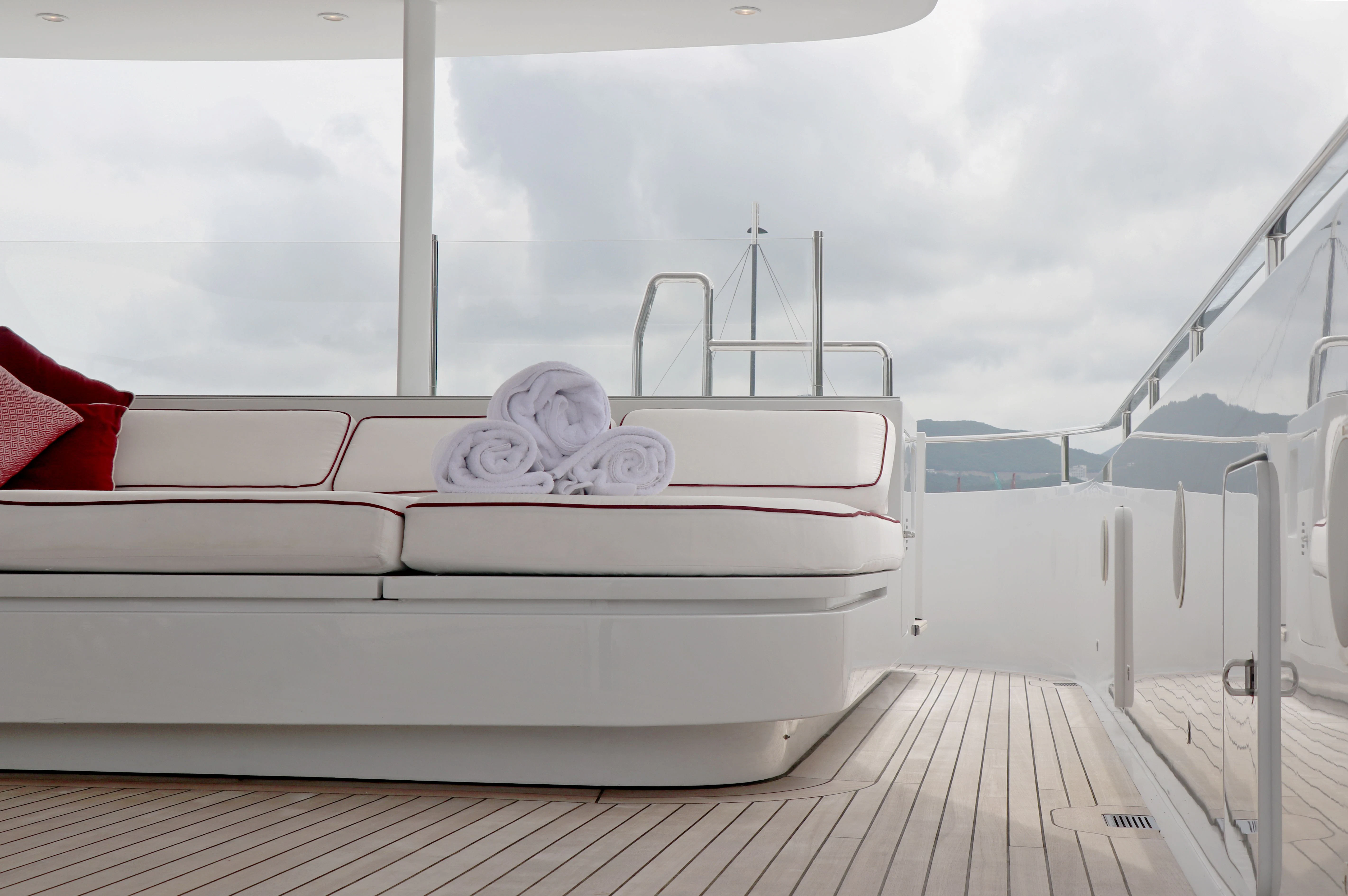 The outdoor spaces are just as impressive as her performance capabilities. Expansive sundecks invite sun-worshippers to bask under the sky while alfresco dining areas set the scene for memorable meals against stunning seascapes. Lounging areas provide comfortable retreats for relaxation or socializing under the stars or beneath ample shade.