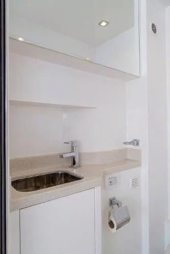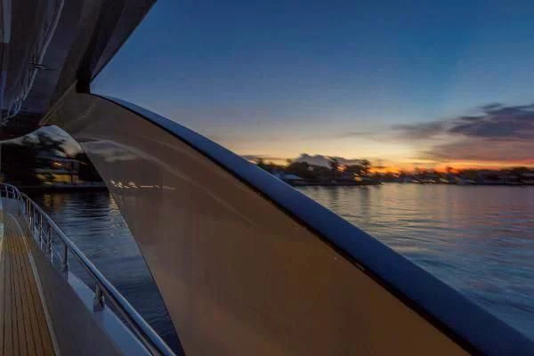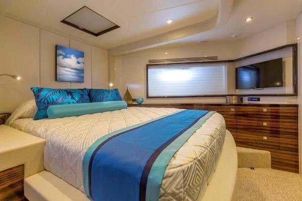 Hampton Yachts are known for superior performance by way of quality construction, fuel-efficient cruising, redundant systems and luxurious interior spaces. The Hampton 830 Euro was designed by world renowned J.C. Espinosa. J.C Espinosa is well-known in the yacht industry and has won awards for his work on boats from Horizon, Feadship, Delta Marine, and many others pedigree builders. The 2014 Hampton Euro 830 Skylounge is nothing like you have ever seen from the traditional Hampton motor yacht lines, rather a very sleek and European look. Some of the most desirable and liked features are the open aft area of the flybridge and the addition of the skylounge. Built for formal entertaining and family cruising, the Euro 830 offers gracious interior and exterior entertaining areas. The air conditioned skylounge gives owners and guests spectacular views and offers amenities like a wet bar (sink, refrigerator, and ice maker), 40" flip-down television, teak table, a Fusion stereo, and plenty of seating. The large area aft of the skylounge offers an Aritex 1,600lbs davit, BBQ grill, area for the dinghy and lounging when the dinghy is launched. There is both an interior staircase leading to the main deck and a staircase aft that leads to the lower aft deck.