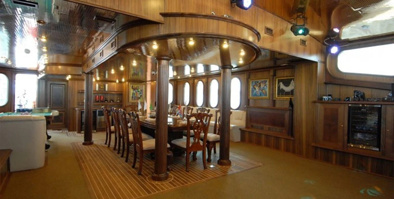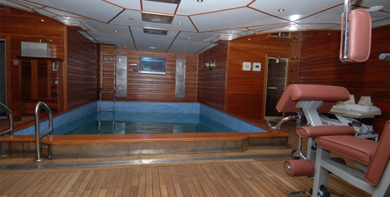The main salon exudes warmth through its tasteful color palette and plush furnishings - it's an ideal place for socializing or simply unwinding after a day full of adventures on water! The dining area resonates with elegance where fine dining becomes an unforgettable experience every single time! For fitness enthusiasts onboard, there’s also a well-equipped gym offering state-of-the-art facilities.