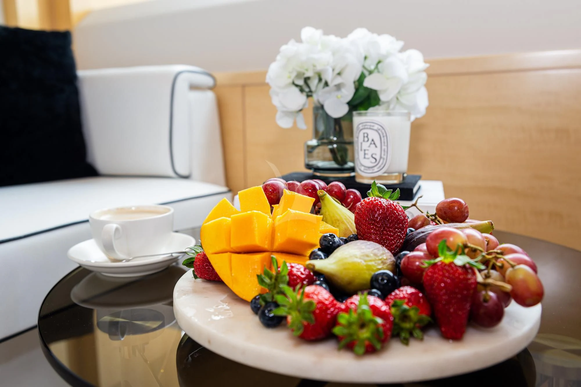 GHOST II's exterior design is strikingly imposing with a beam stretching to about 24 feet, or roughly 7.6 meters wide. The flybridge subcategory adds another layer of sophistication to her silhouette while providing additional outdoor space for guests to enjoy panoramic sea views. Her cruising speed is set at a comfortable pace of around 21 knots, but she can ramp up the excitement to reach maximum speeds of up to an exhilarating 24 knots.