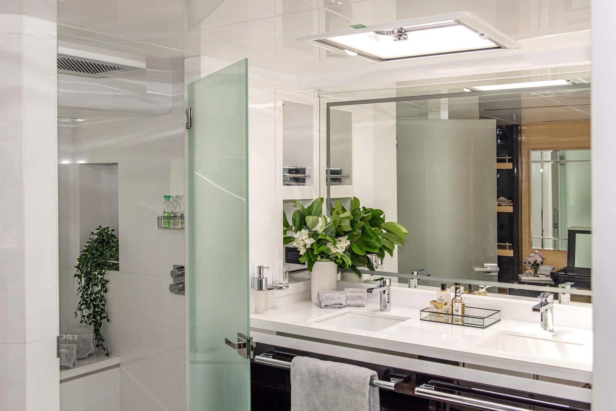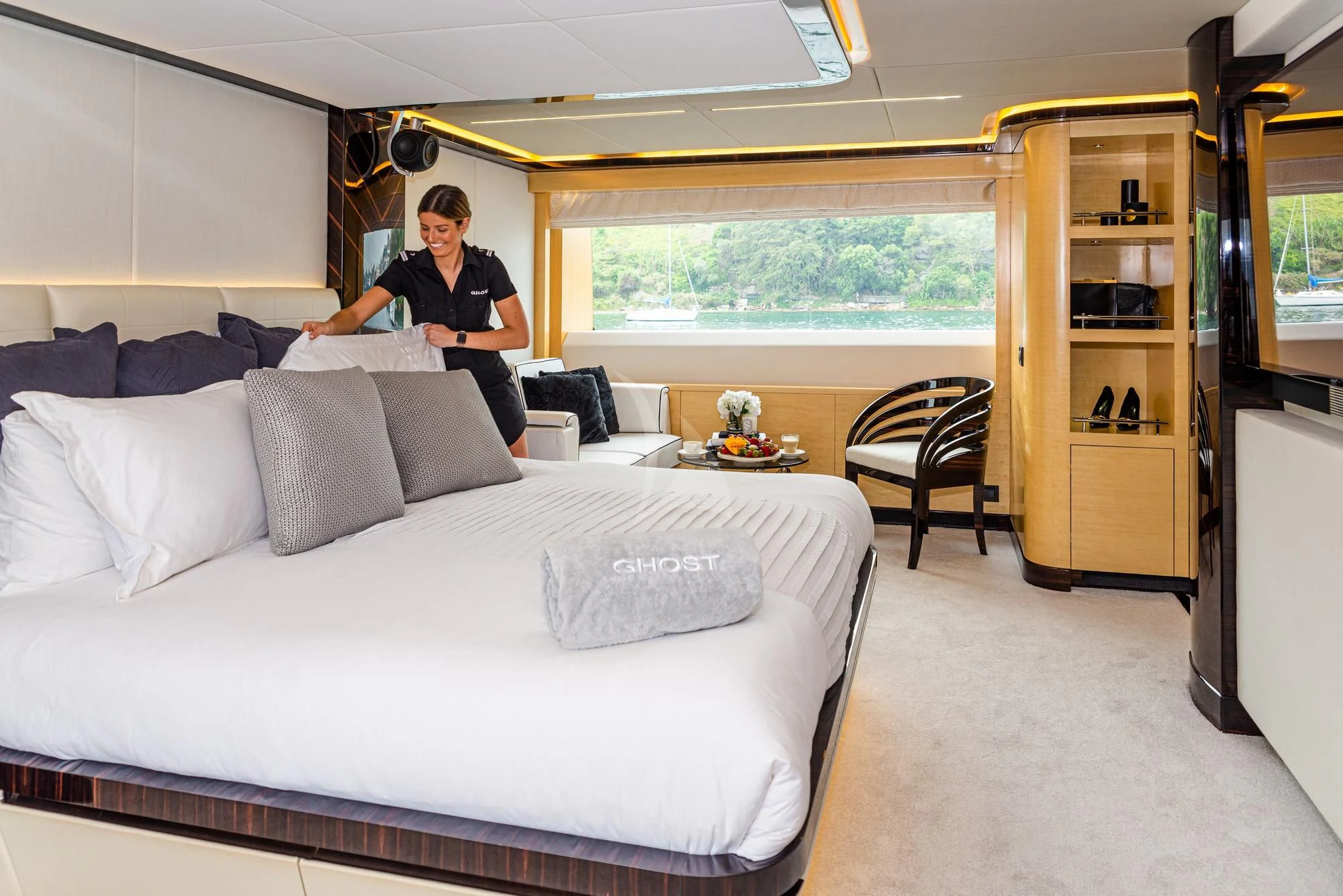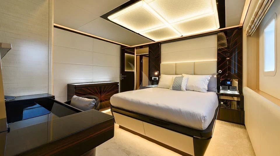 The luxurious accommodations onboard GHOST II cater perfectly for ten esteemed guests within five lavishly appointed cabins. Each cabin resonates with opulence and comfort, ensuring every voyage becomes an unforgettable experience for those aboard this majestic vessel. A dedicated crew of five ensures that every need is met promptly and discreetly, allowing guests to relax and enjoy their journey fully.