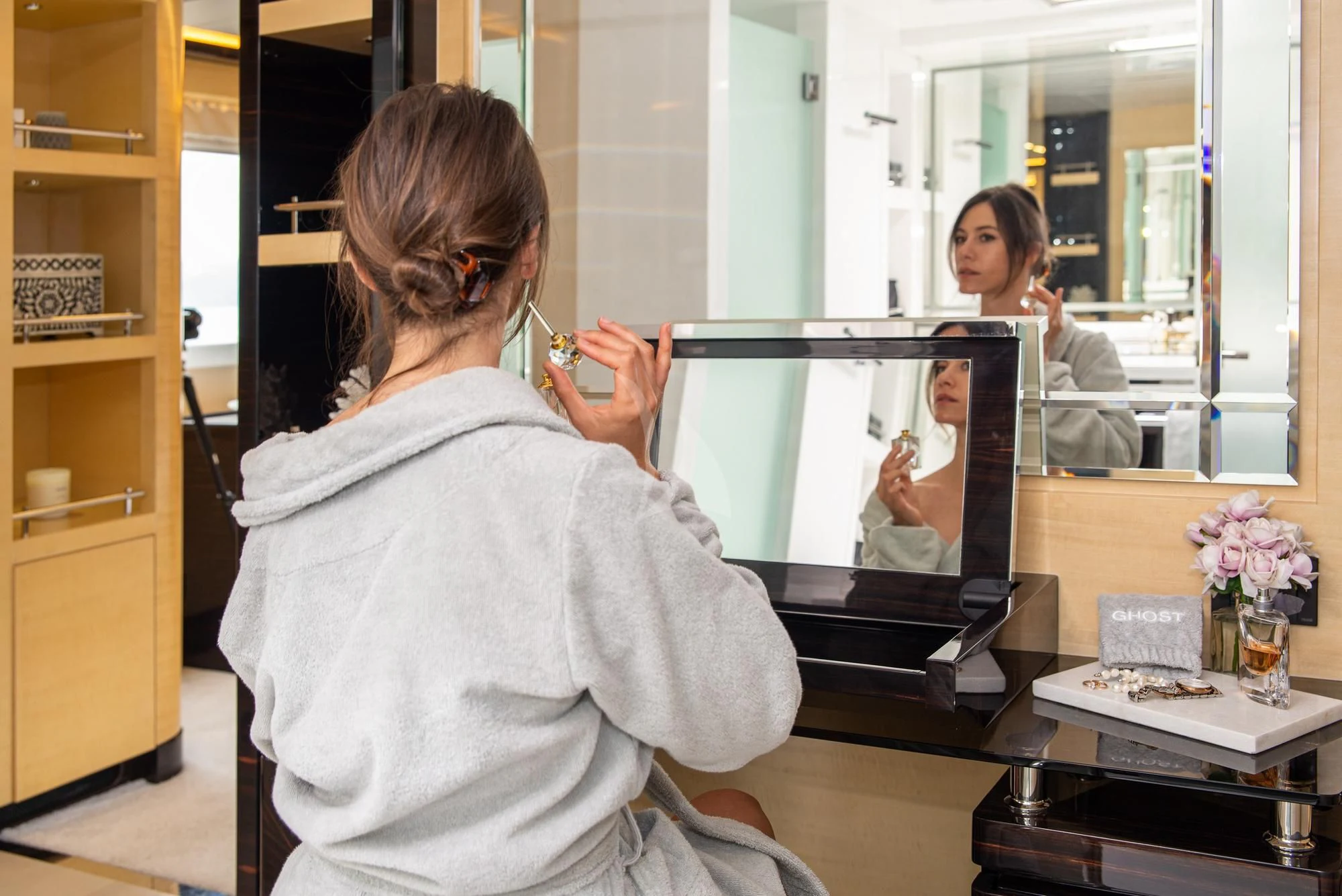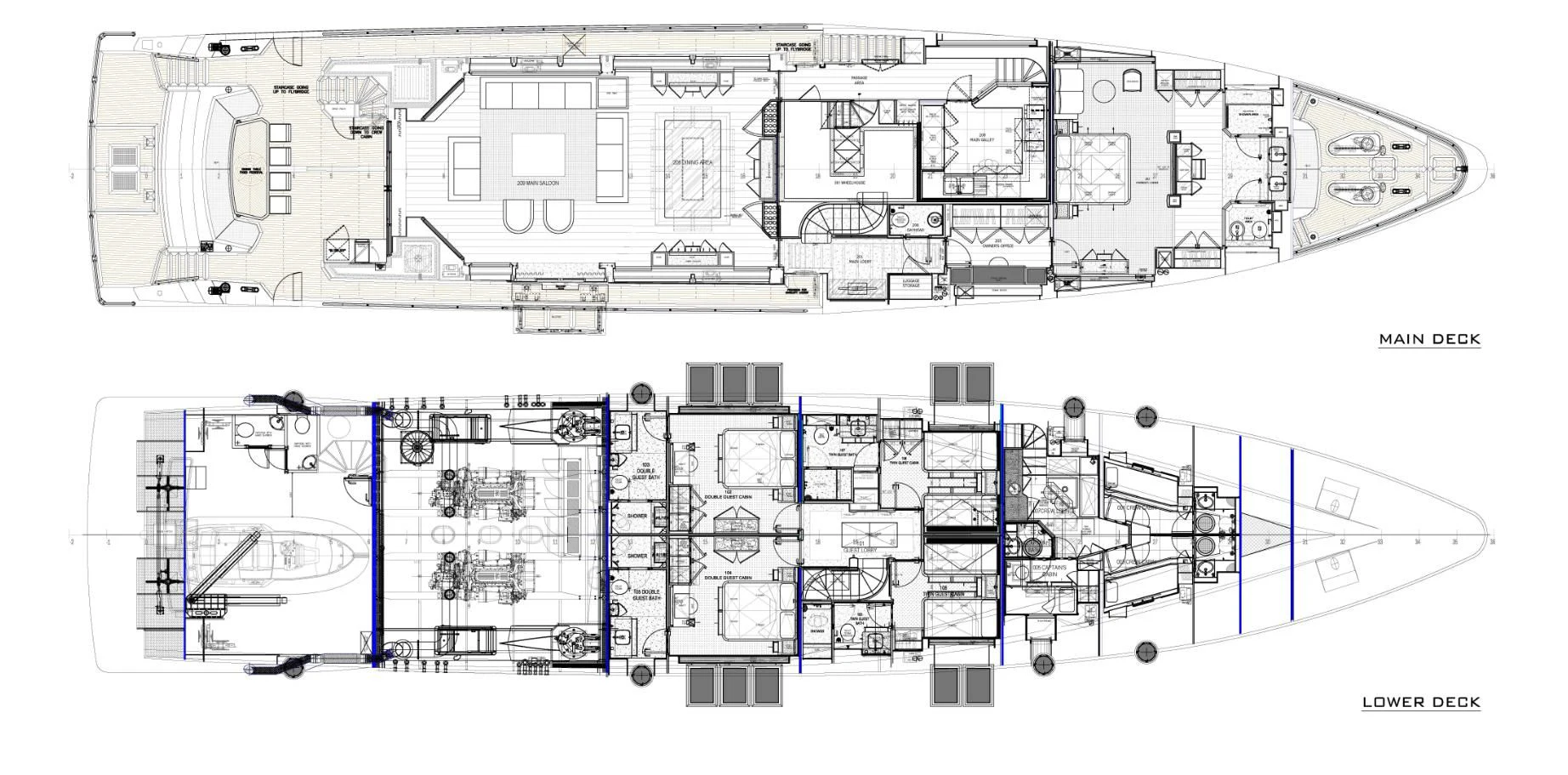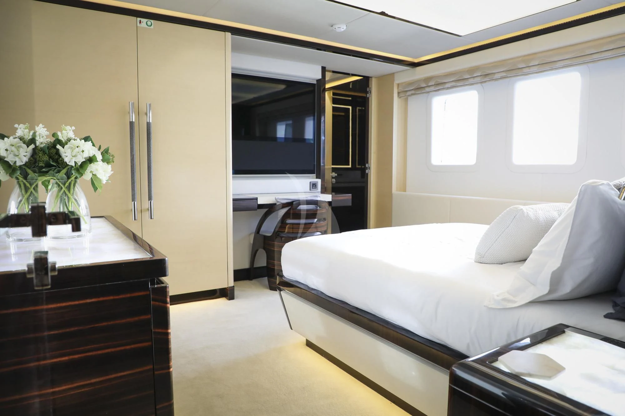 The luxurious accommodations onboard GHOST II cater perfectly for ten esteemed guests within five lavishly appointed cabins. Each cabin resonates with opulence and comfort, ensuring every voyage becomes an unforgettable experience for those aboard this majestic vessel. A dedicated crew of five ensures that every need is met promptly and discreetly, allowing guests to relax and enjoy their journey fully.