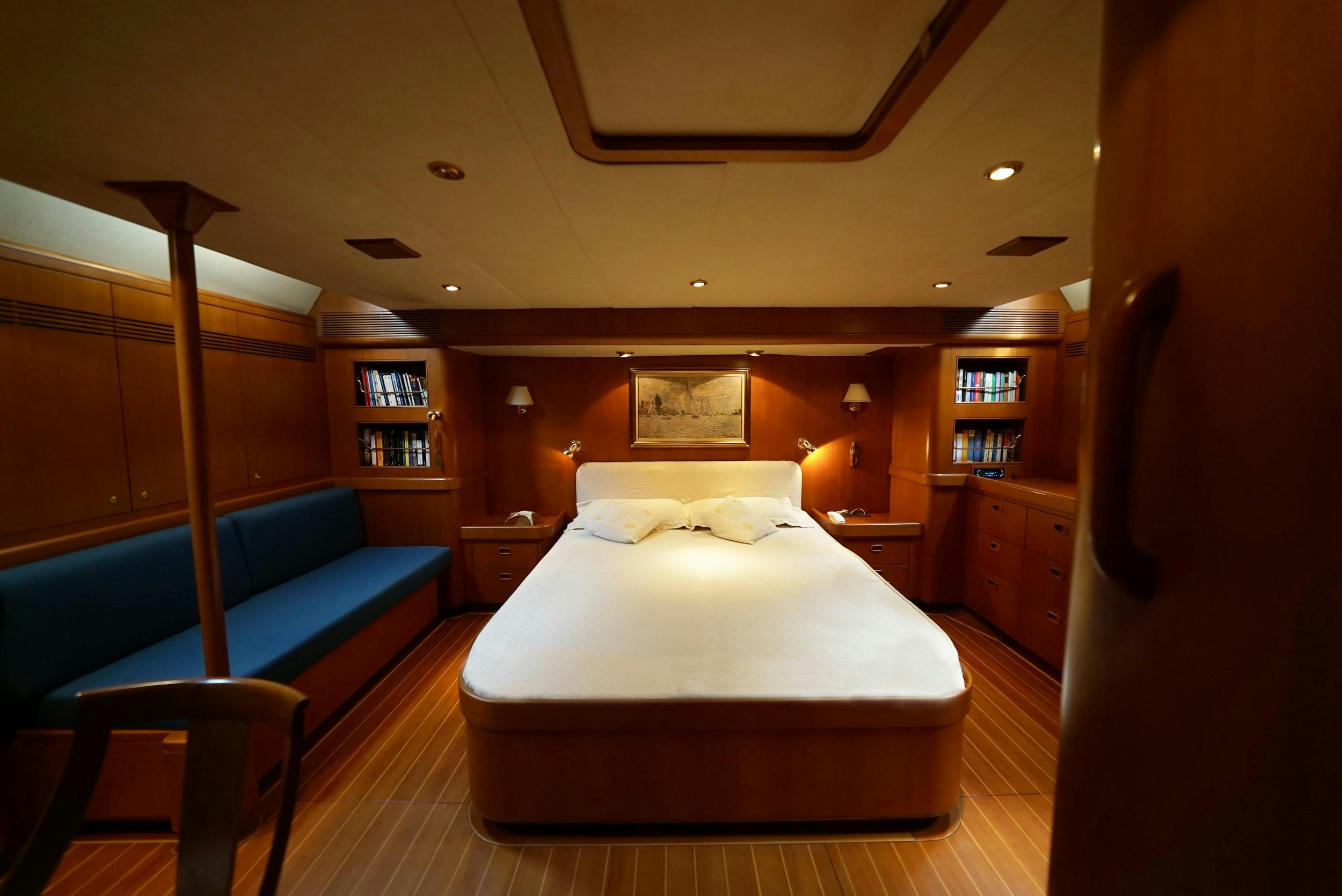 The result is a 30-meter sailing yacht built for fast, efficient passage making and equally comfortable coastal cruising. GIBIAN has been consistently maintained since launch by the same captain and engineer, with low hours on her Caterpillar engine and new generator added to a strong technical record that keeps her in excellent operational condition.