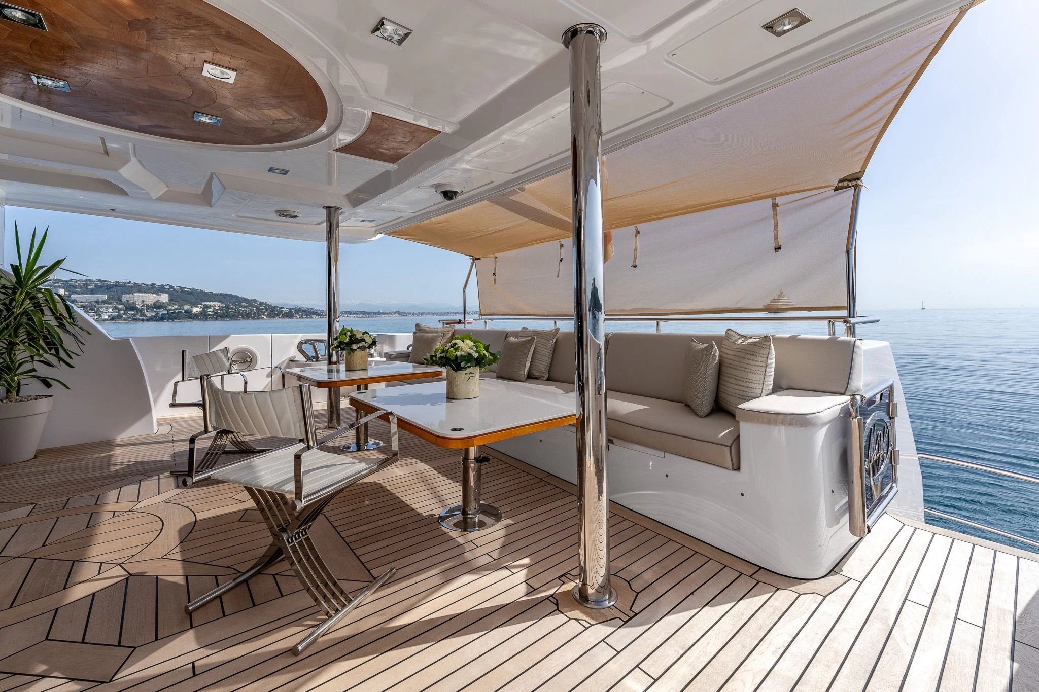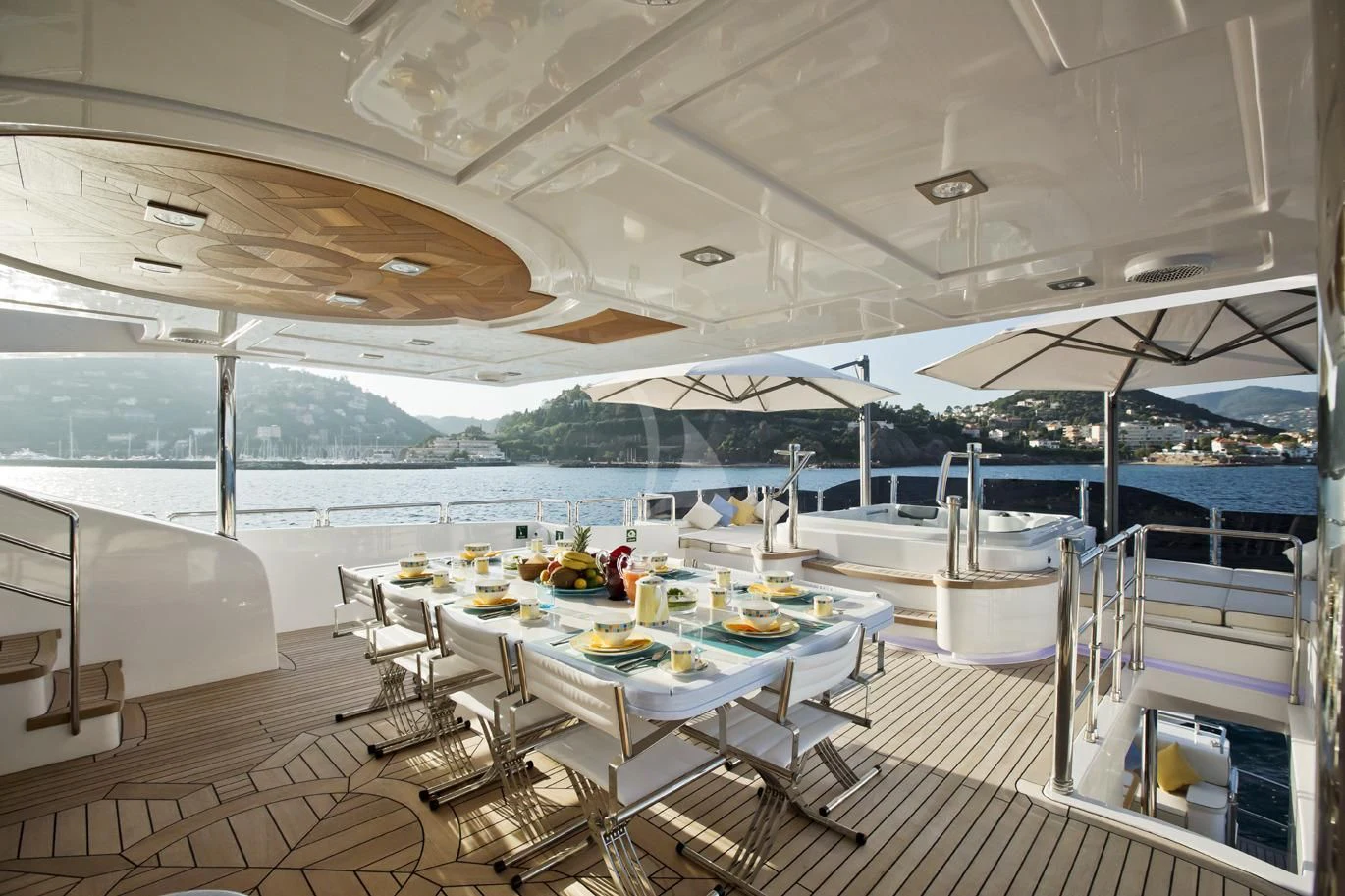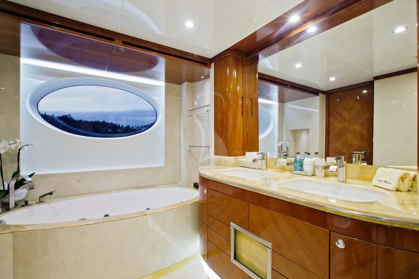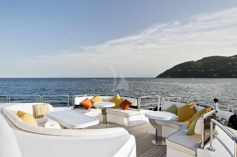 The exterior design of GRAND CRU is nothing short of spectacular - she exudes elegance and sophistication at every turn. The sundecks beckon guests to bask under the sun while sipping on their favorite cocktails. Alfresco dining areas serve as perfect spots for enjoying meals amidst breathtaking views, while lounging areas provide cozy corners for intimate conversations or solitary contemplation. A notable feature is the yacht’s top speed of an exhilarating 17 knots – ideal for those who crave adventure on the high seas.
