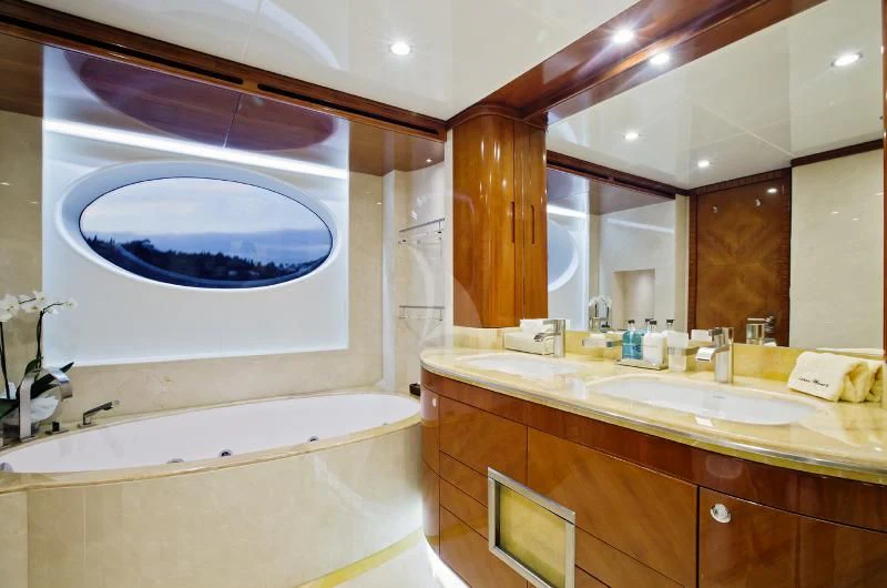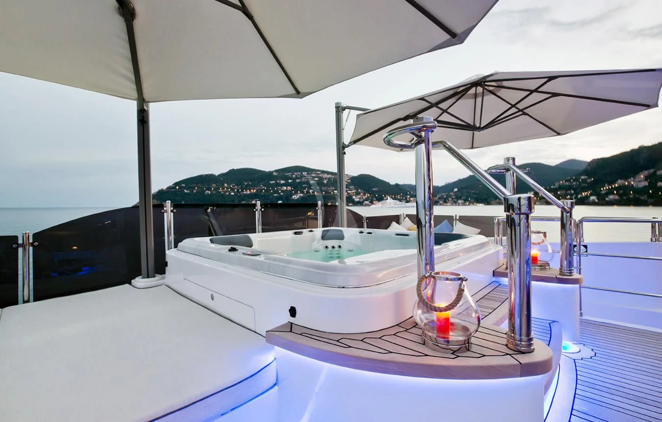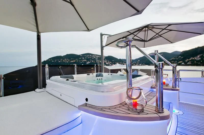 But what truly sets GRAND CRU apart are her onboard amenities which include a state-of-the-art gym for fitness enthusiasts, a Jacuzzi promising rejuvenating dips under open skies, personal watercrafts for thrill-seekers, and at-anchor stabilizers ensuring smooth sailing even during rough weather conditions.