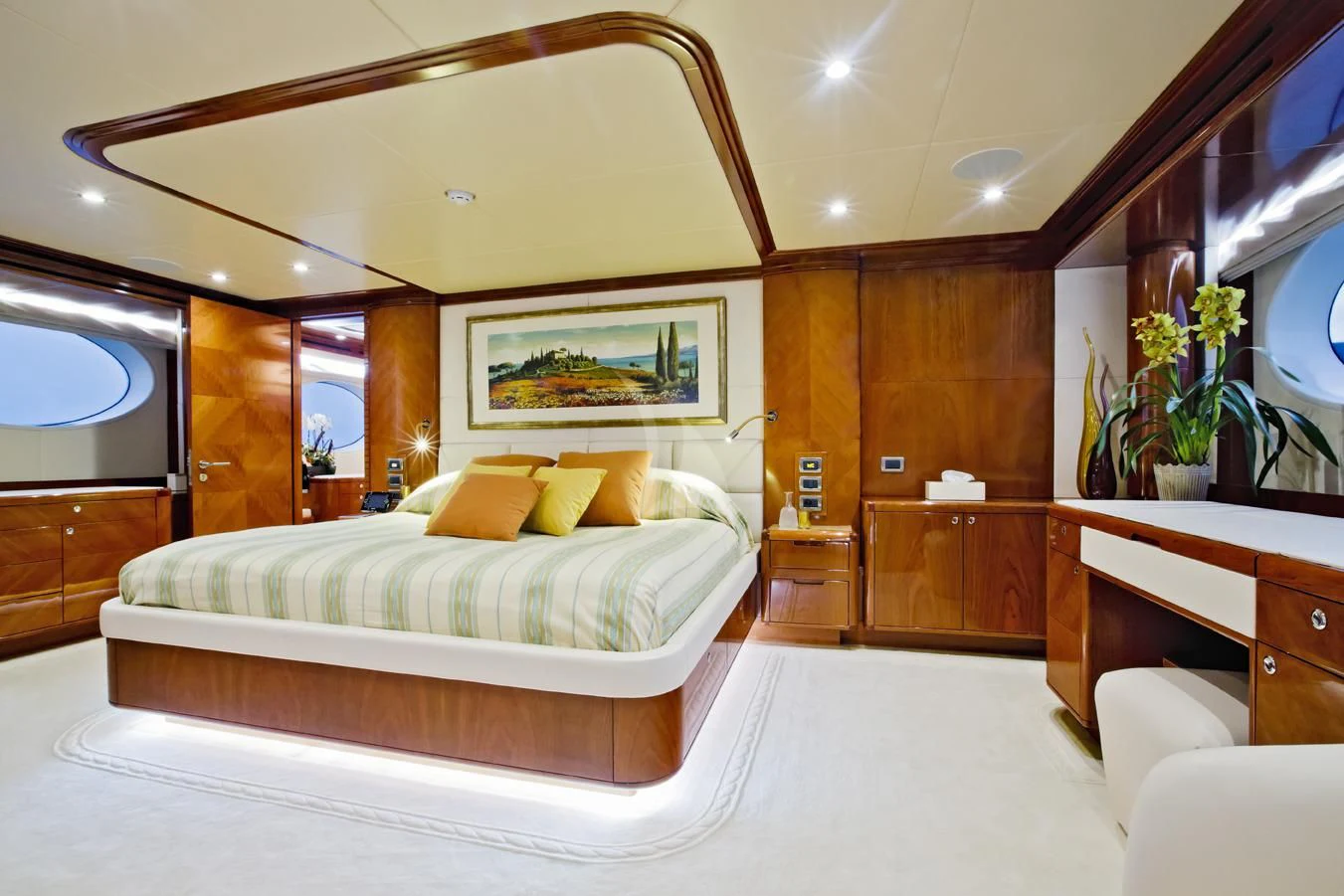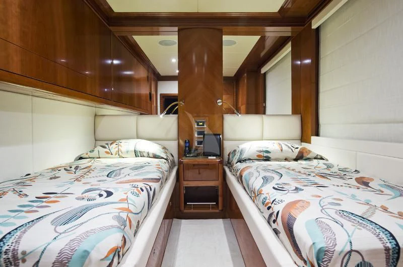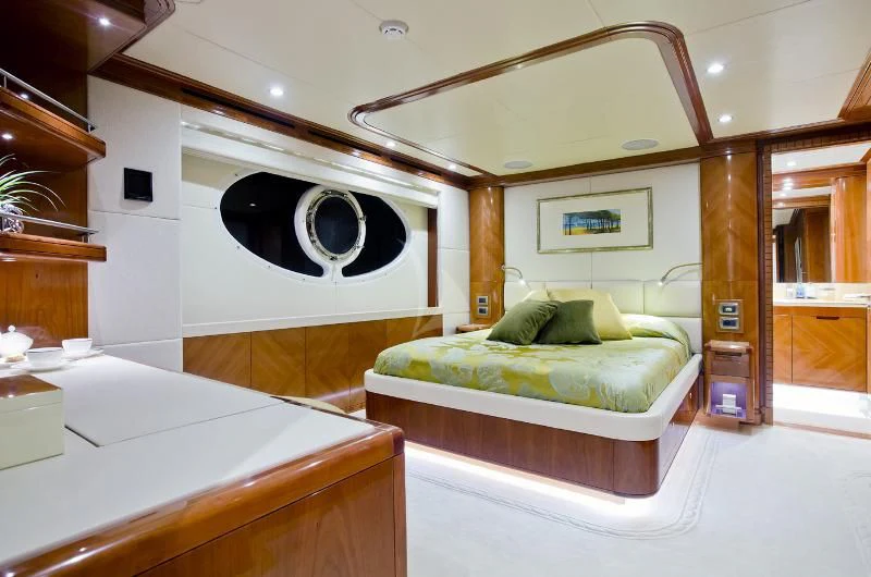 Step inside GRAND CRU and you'll be greeted by an ambiance that perfectly blends luxury with comfort. The interior styling reflects tasteful opulence without compromising on functionality or comfort. Each cabin has been thoughtfully designed to offer ultimate privacy and relaxation - accommodating up to eleven guests across five staterooms, including a full-beam main deck master cabin that promises unparalleled luxury.