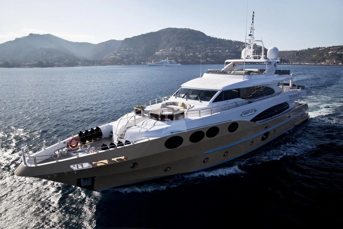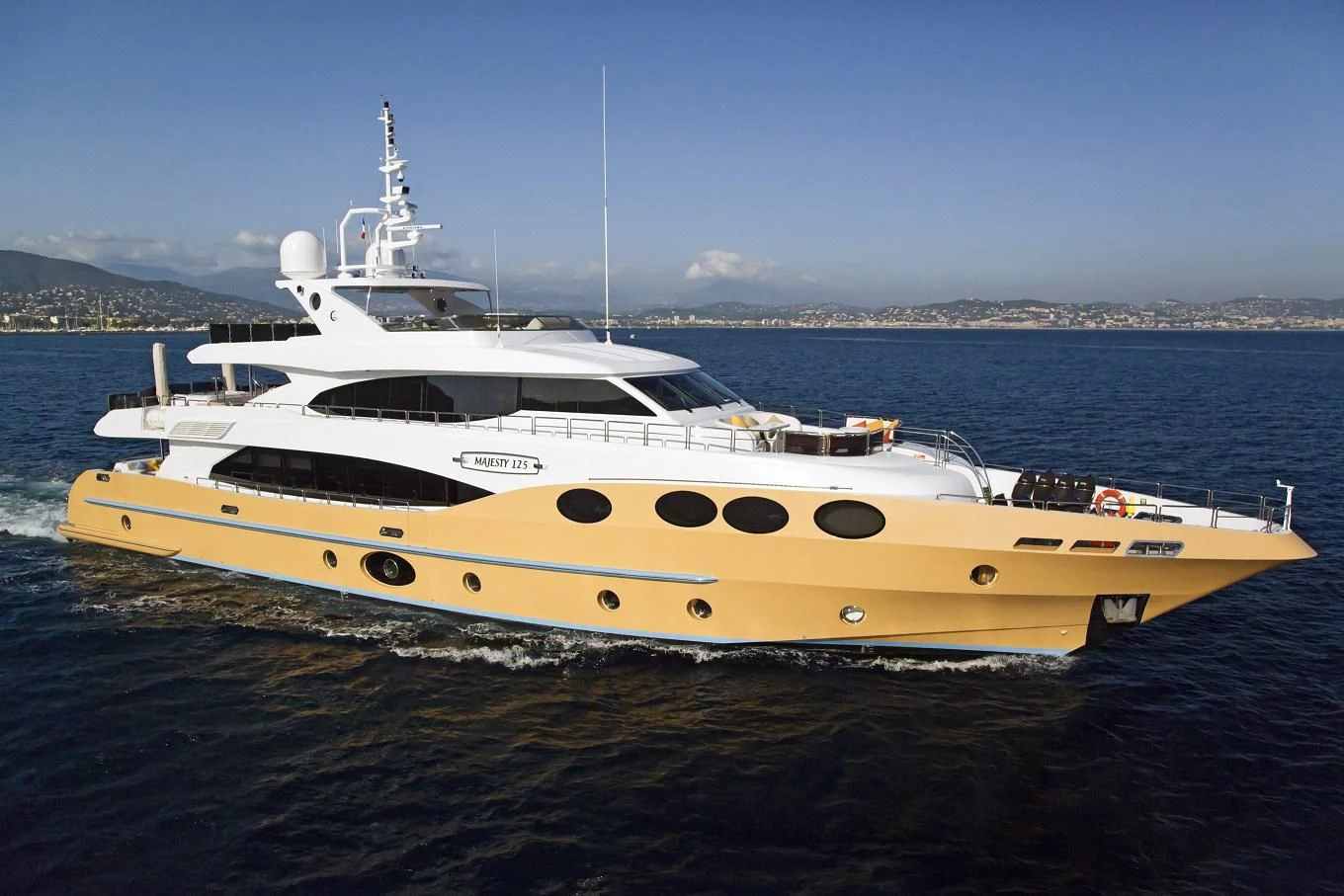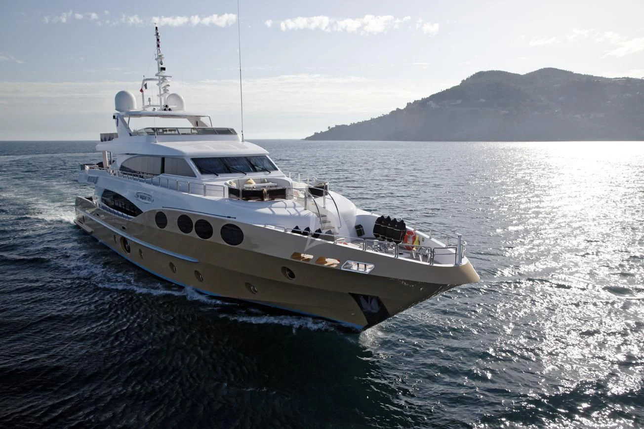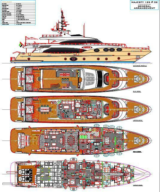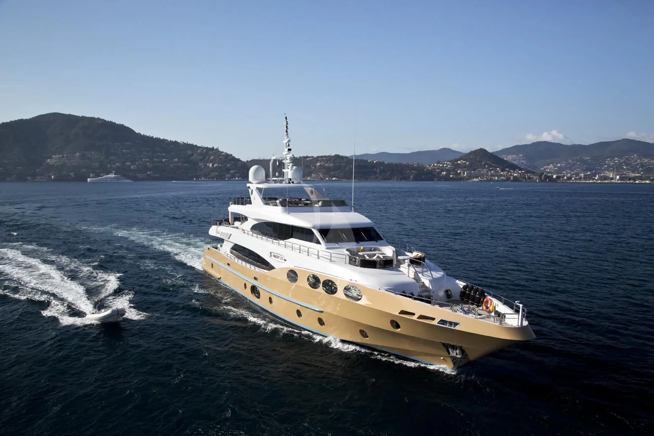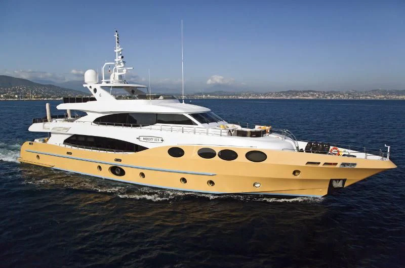 GRAND CRU is a stunning example of the Majesty 125 model, meticulously crafted by the renowned shipbuilder Gulf Craft in 2012. With an impressive length of 124 feet (38.4 meters), this superyacht displays a grandeur that's hard to ignore. Her exterior, beautifully sculpted with GRP, sets her apart from other yachts in her class. She boasts a beam width of 25 feet and 9 inches (7.54 meters), offering generous volumes throughout, thus creating expansive spaces for outdoor activities and relaxation.