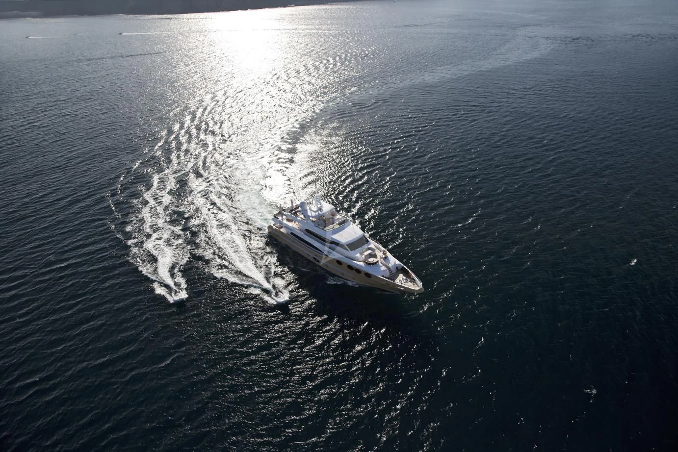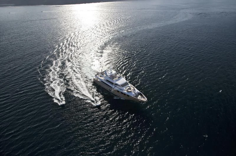 The yacht's machinery features two powerful Caterpillar C32 Acert engines each delivering an impressive power output of 1902 hp /1418 kW; ensuring reliable performance across all sea conditions.