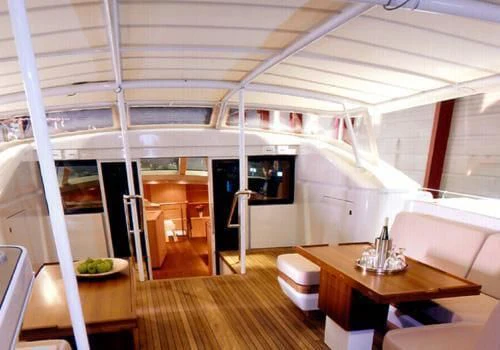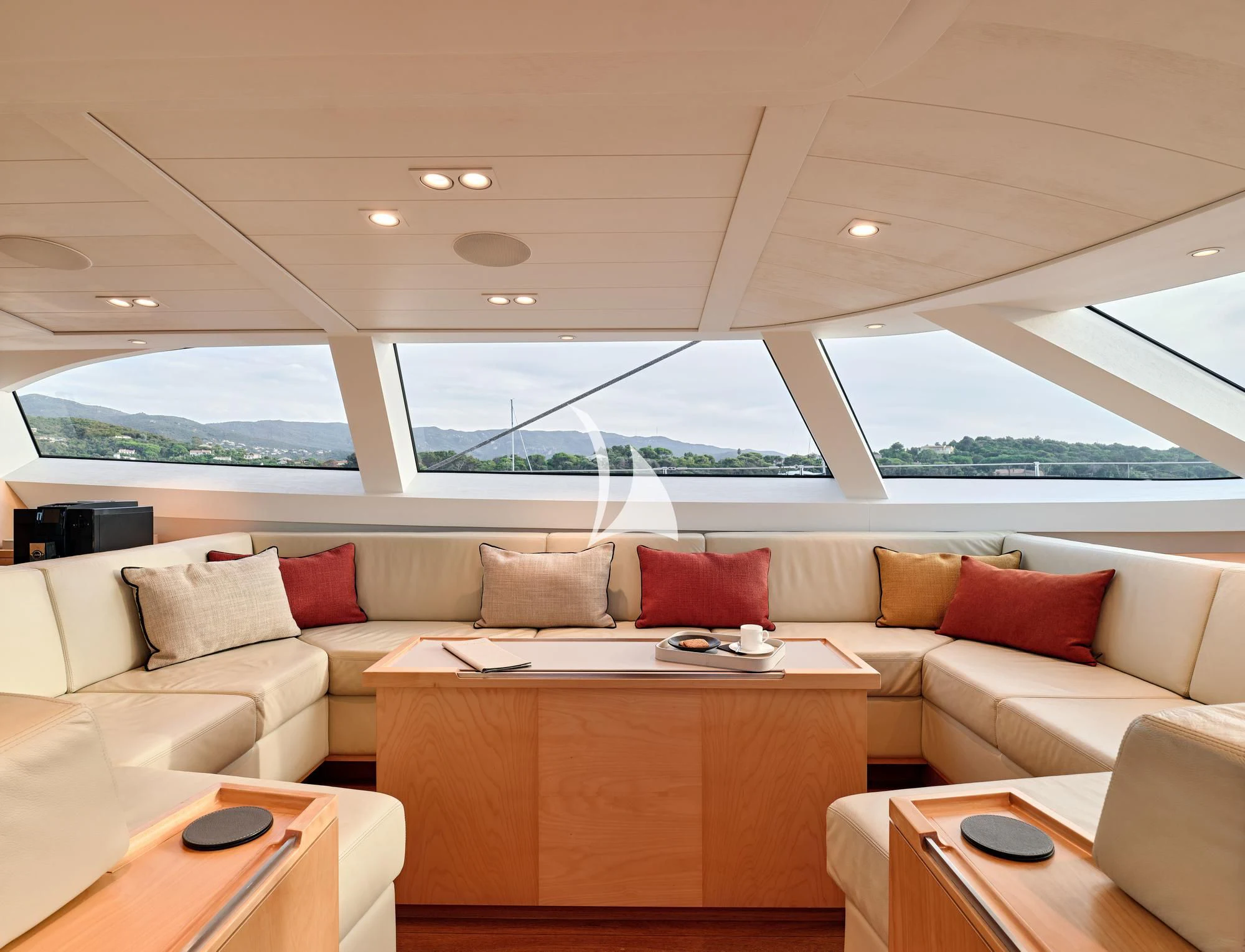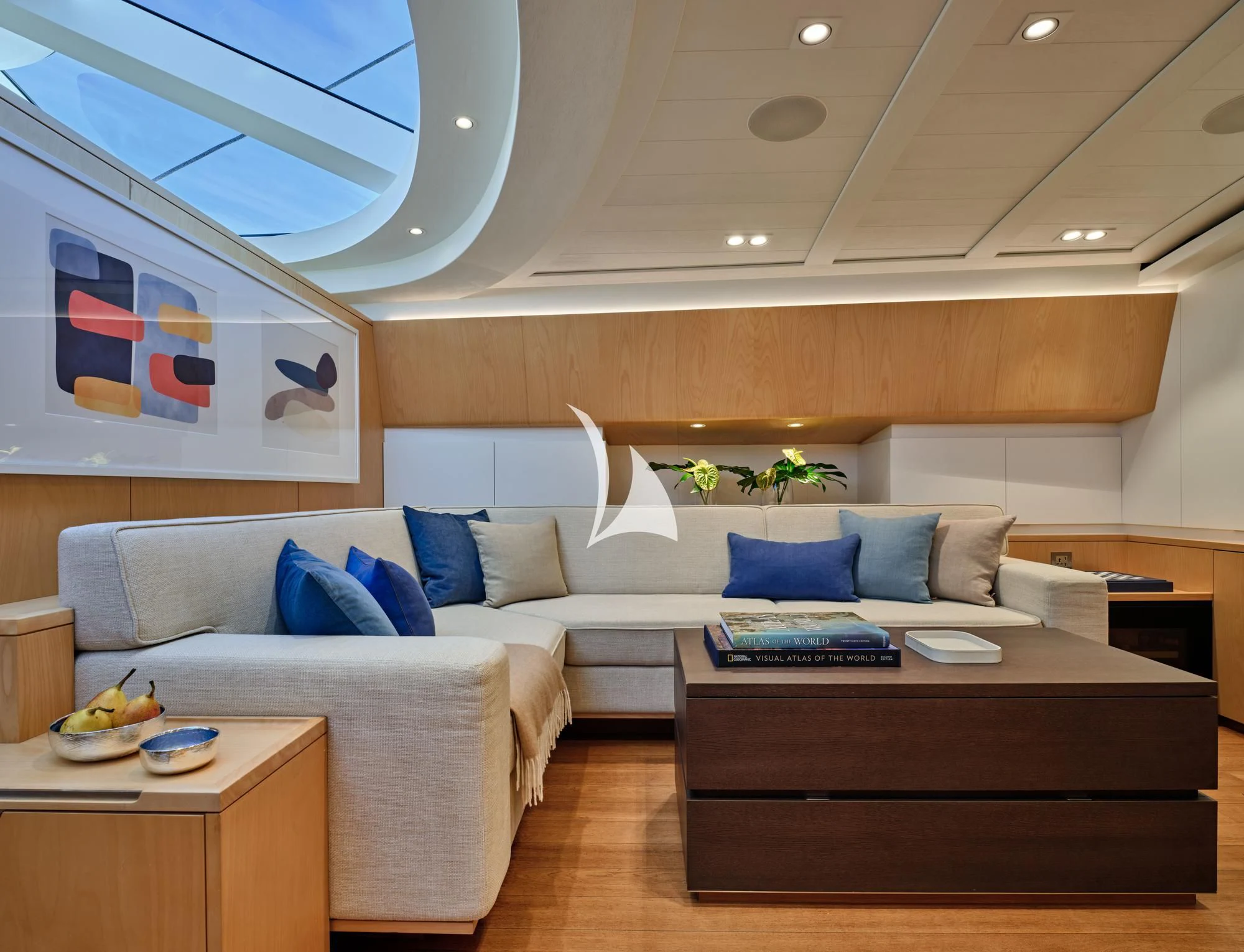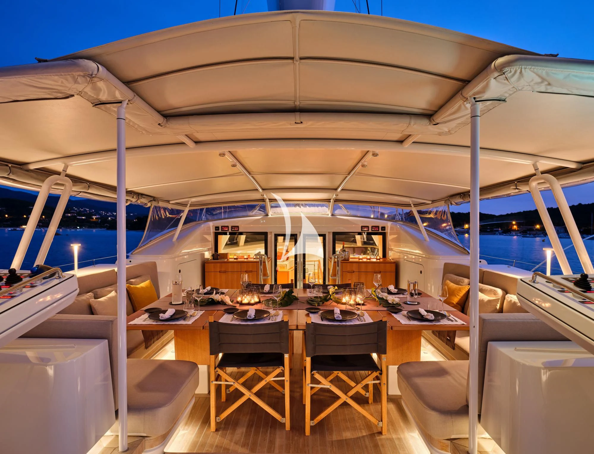 The main salon of GUILLEMOT is where contemporary design meets functionality – it's a perfect place for socializing or unwinding after an adventurous day at sea. Adjacent lies the formal dining area that sets the stage for gourmet experiences curated by our skilled chef aboard this floating paradise.