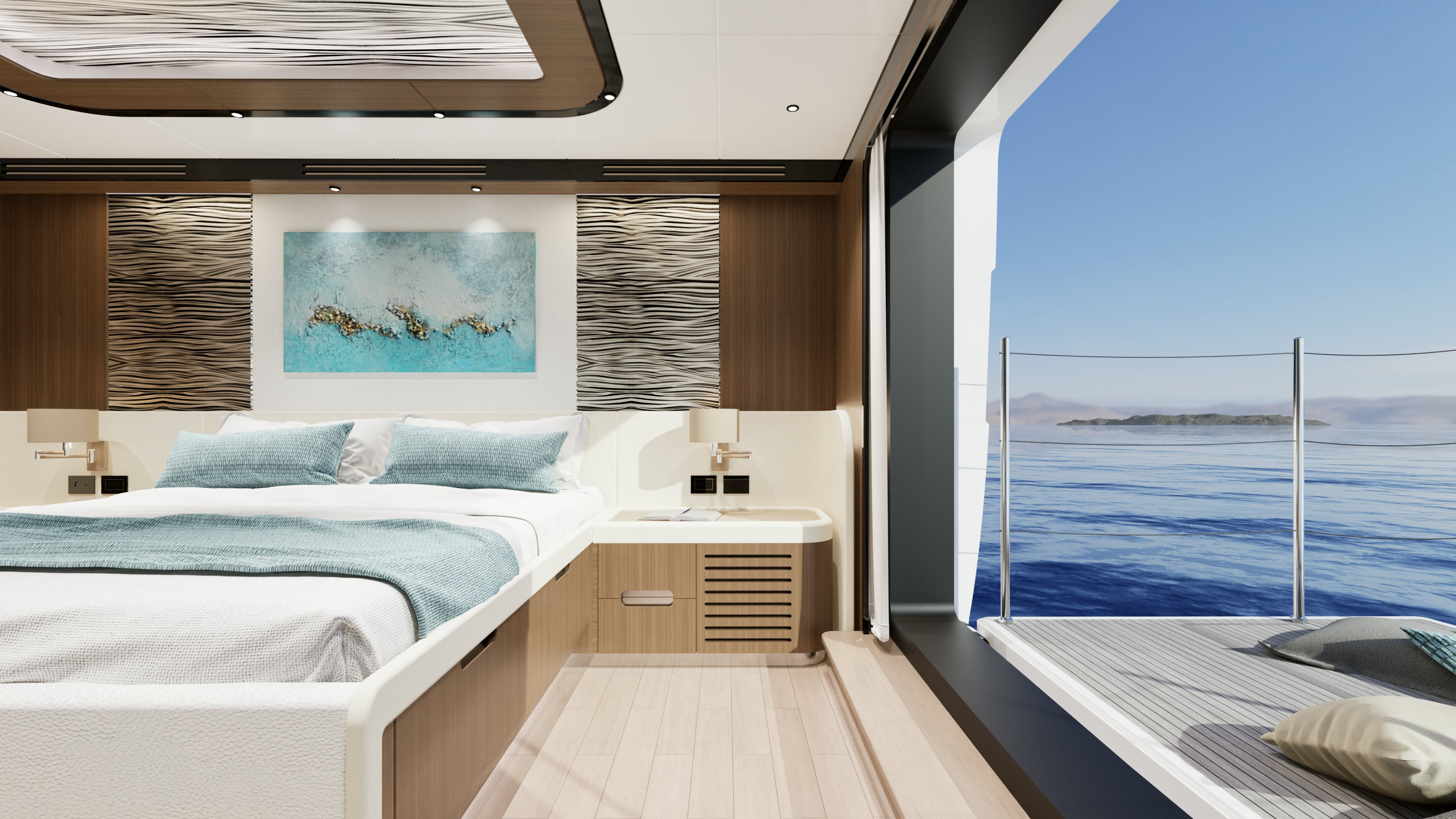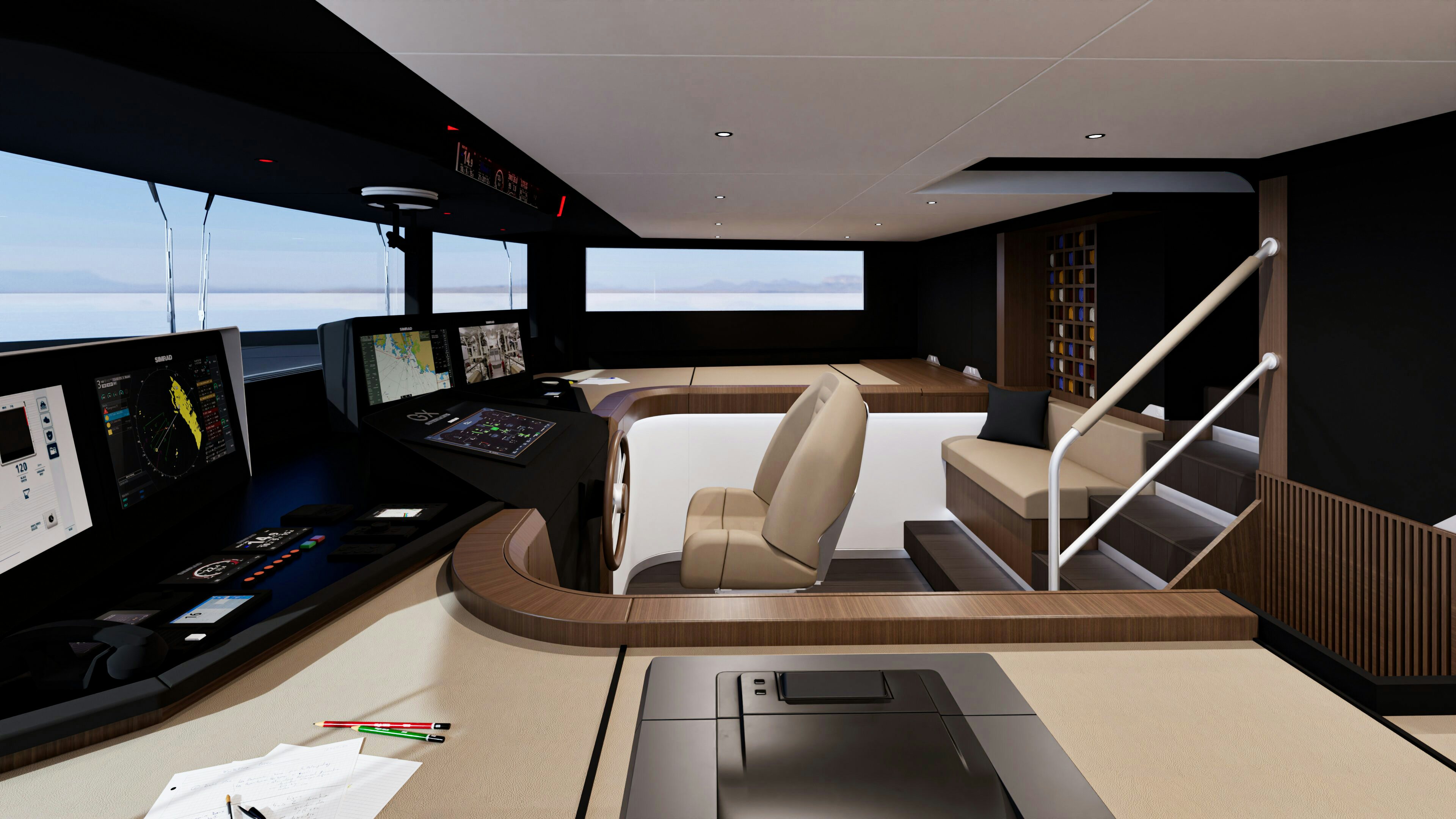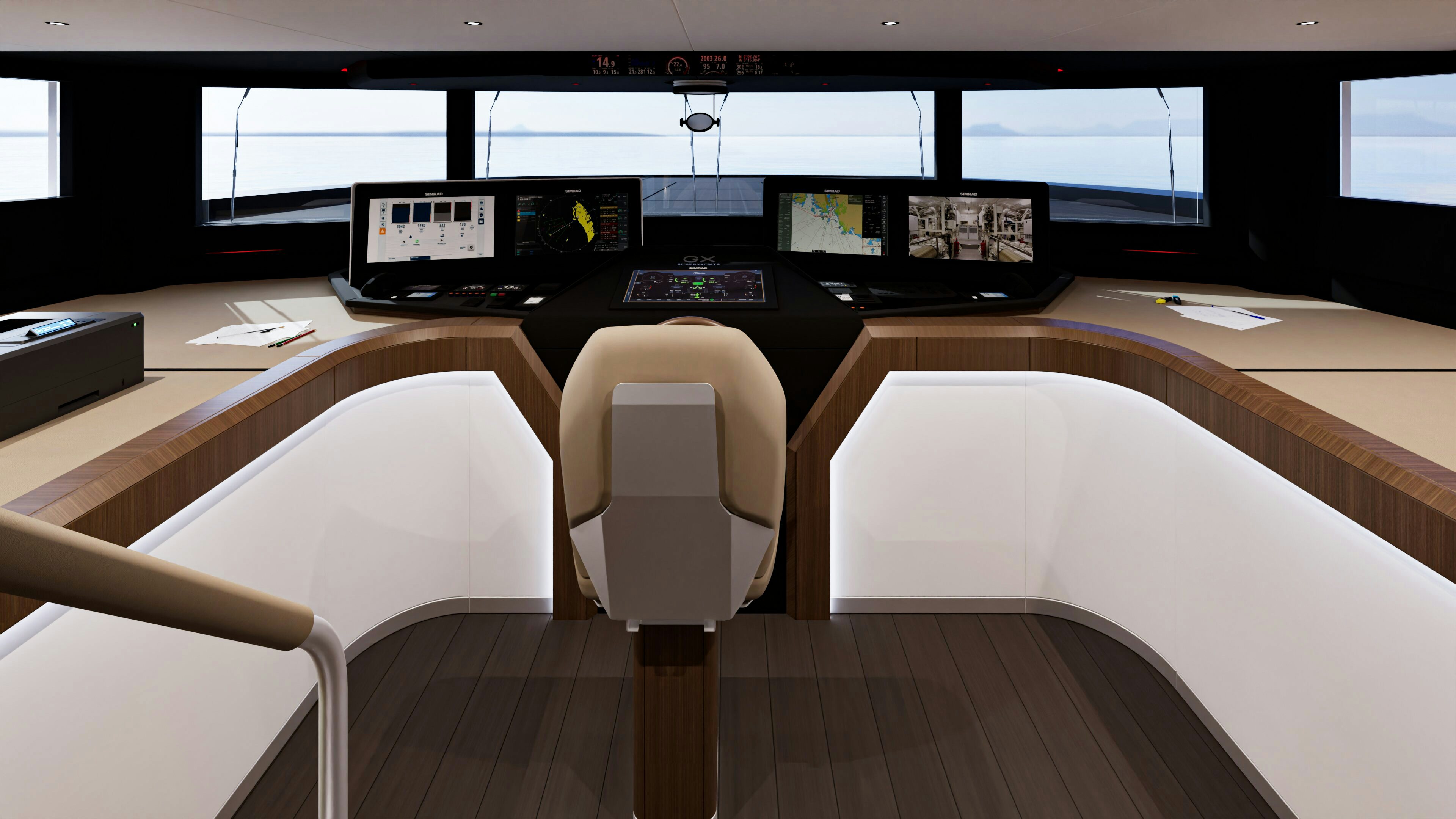 At her core is a cutting-edge hybrid propulsion system that allows for zero-emission cruising, enabling silent navigation at 6 knots with a range of up to 100 nautical miles under electric power alone. For longer passages, she seamlessly transitions to diesel propulsion and delivers a transatlantic range at 12 knots, while maintaining a top speed of 15 knots. Integrated solar panels support up to 27kW on this Raised Pilothouse (RPH) version, storing clean energy in a high-capacity lithium battery system that enables completely silent, fossil fuel–free anchoring for up to 48 hours. This setup results in a 55% overall energy saving through optimized air conditioning and other systems, along with a significant 40% reduction in emissions compared to conventional yachts.