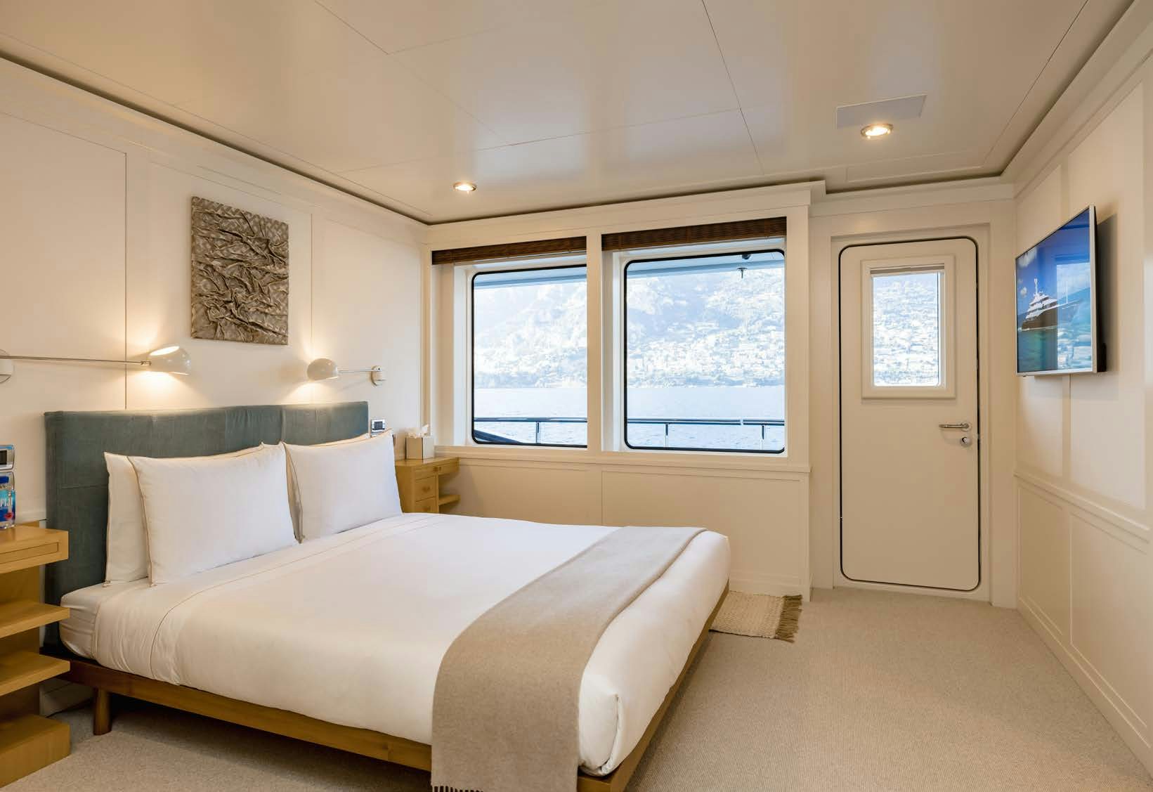 HBC's onboard amenities are nothing short of extraordinary: A fully equipped gym allows guests to maintain their fitness routines while at sea; a Jacuzzi provides ultimate relaxation under the open sky; Wi-Fi connectivity ensures seamless communication with the outside world; an elevator facilitates easy movement between decks; deck jacuzzis are perfect spots for unwinding after a day full of activities; last but not least, professional masseuse services add another layer to your wellness experience onboard this luxury yacht.