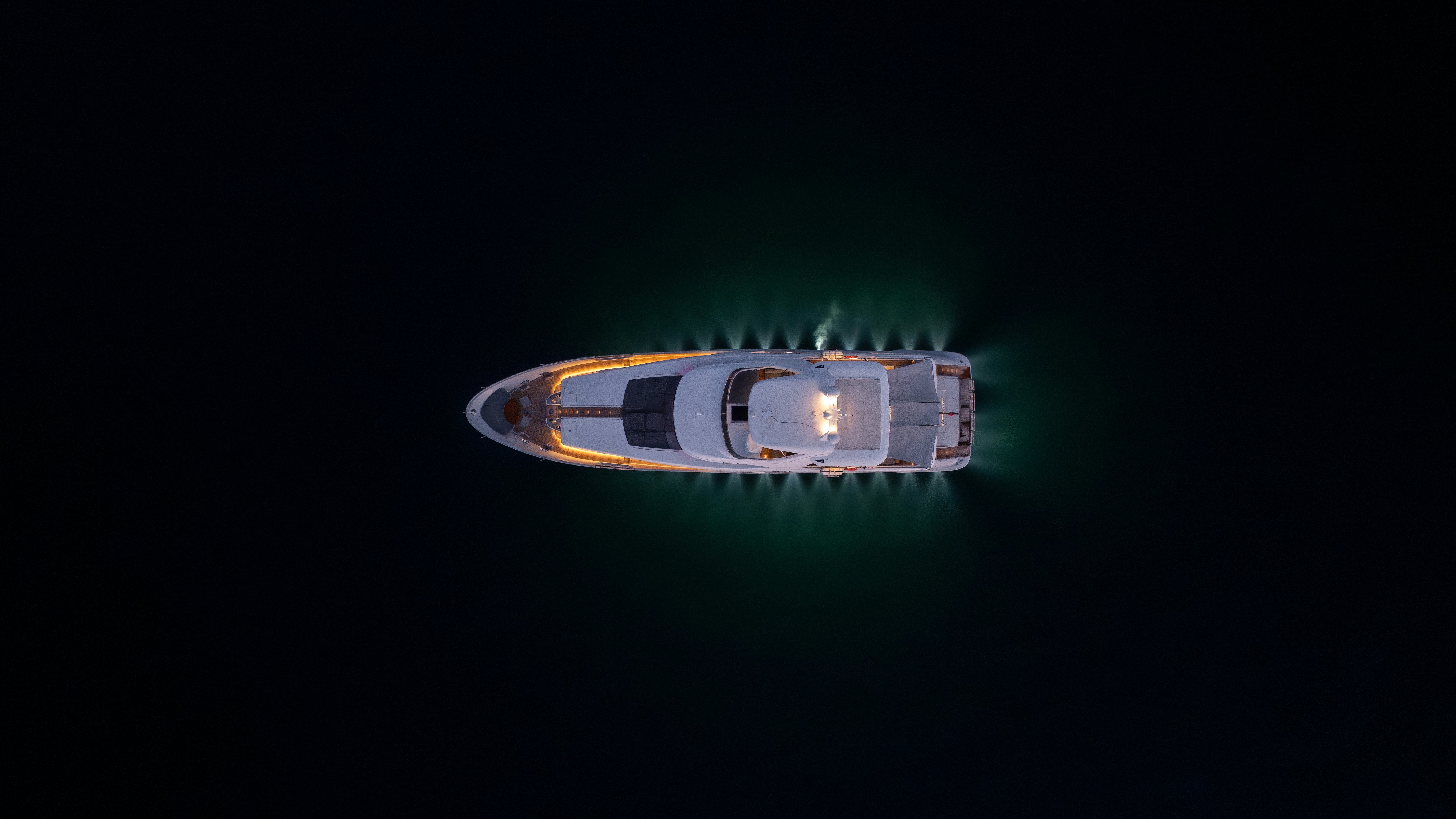 HORIZON is built on a semi-displacement GRP hull and superstructure, delivering both performance and range. At a cruising speed of 12 knots, she offers a range of 1,500 nautical miles, powered by twin 1,000hp MAN diesel engines. Her CMC Marine electric fin stabilizers, active both at anchor and underway, ensure a quiet, stable ride in all conditions.