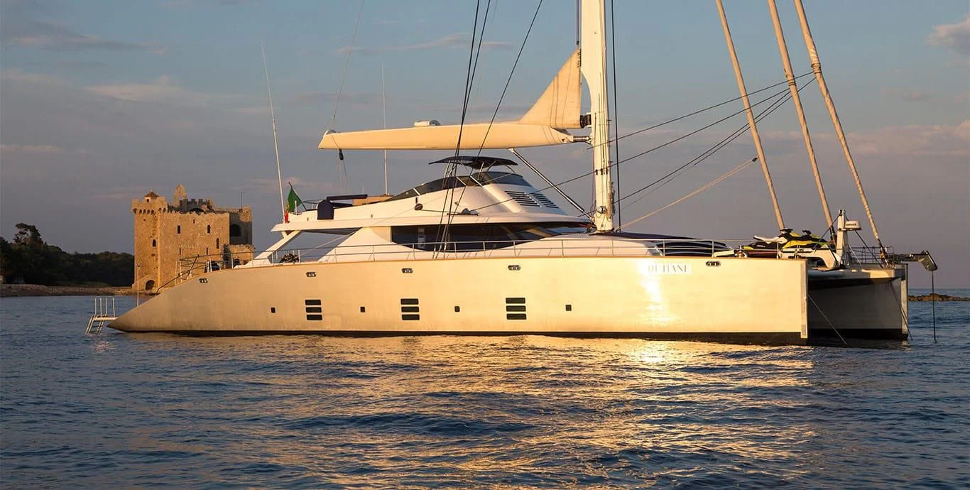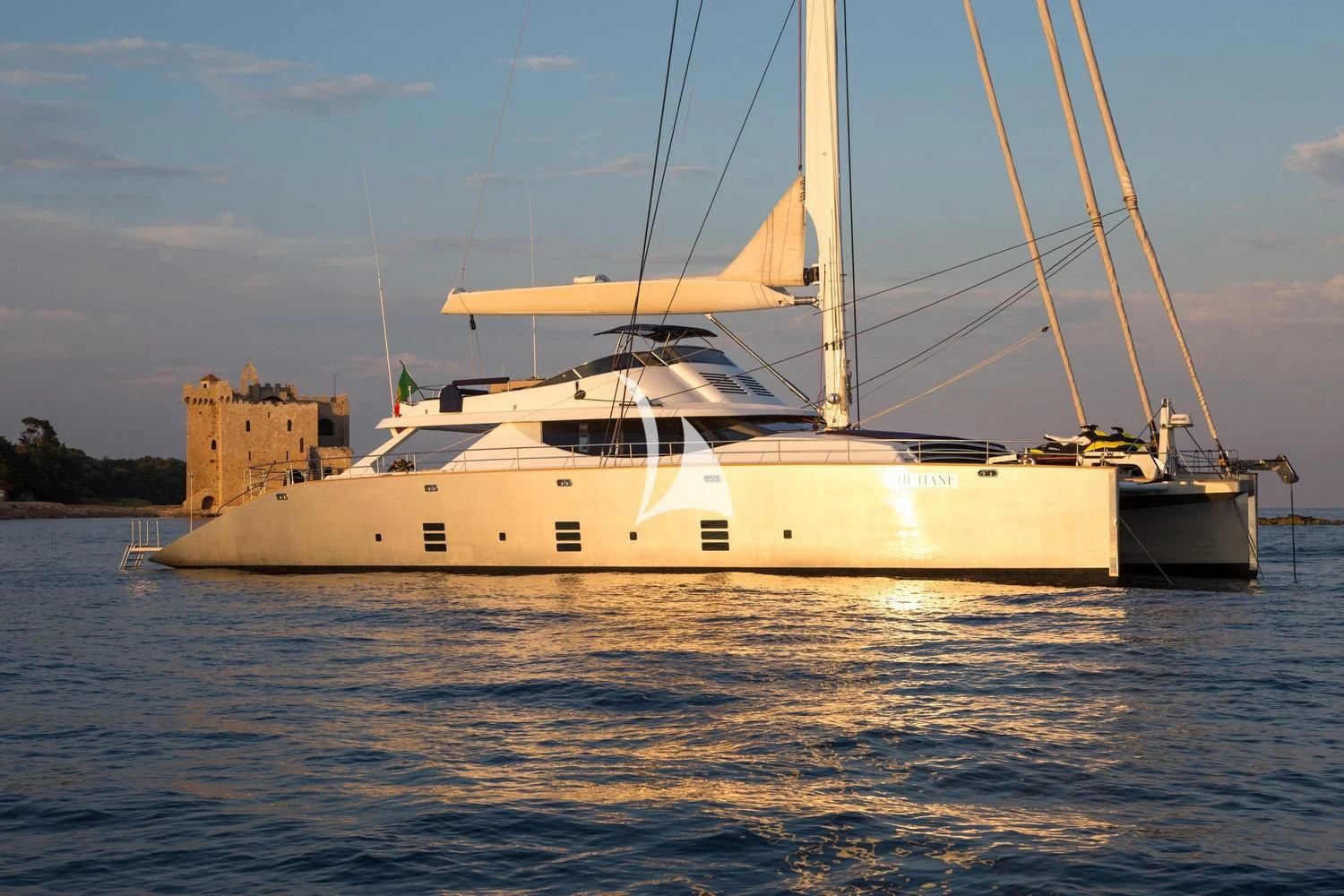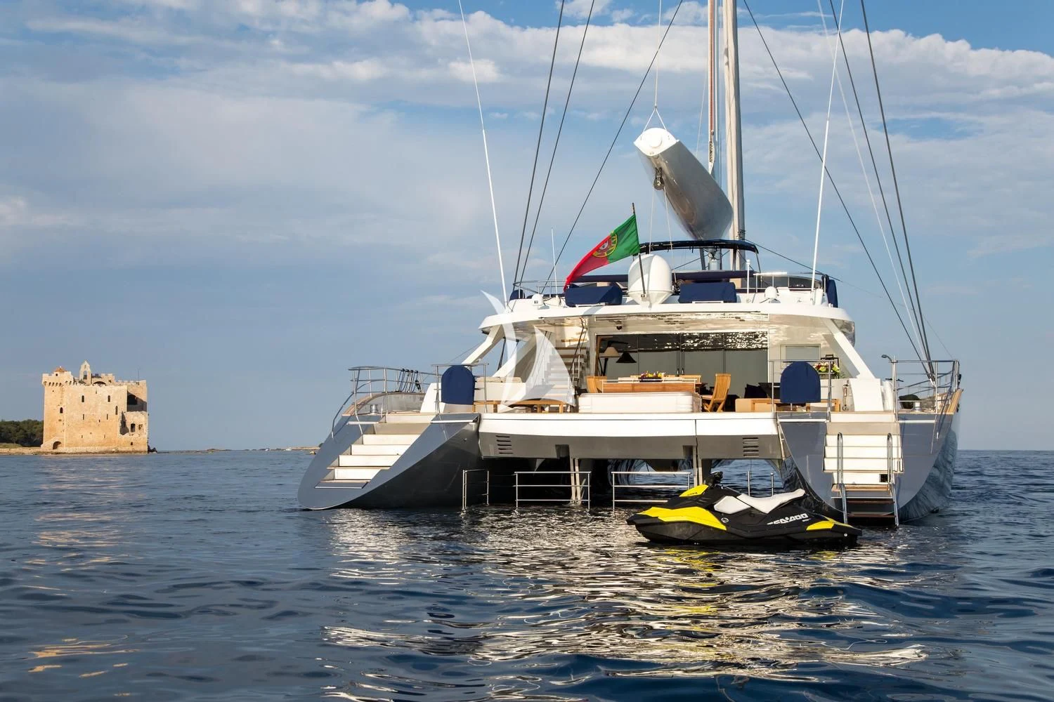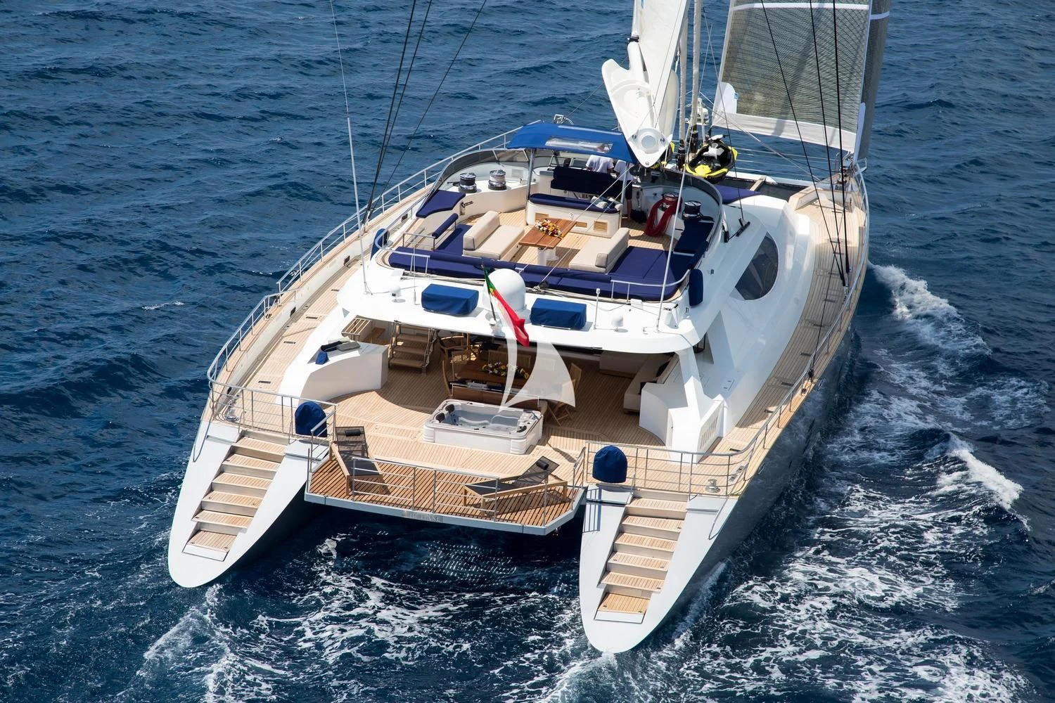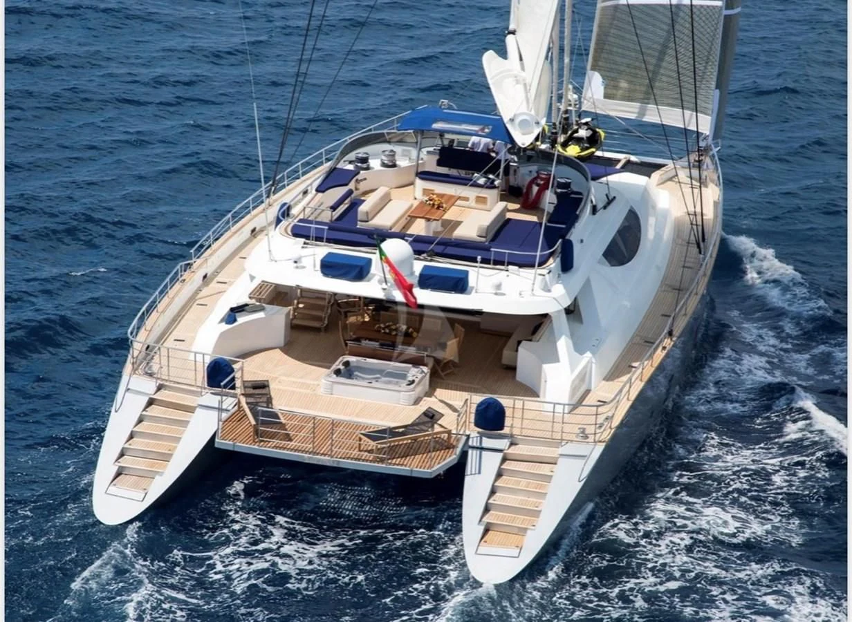 Welcome aboard MANTANI, a marvel of maritime engineering and luxury. This magnificent sailing yacht was brought to life by the master craftsmen at Nuovo Arsenale Cartubi in 2009. With its grandeur spanning an impressive 104 feet in length and a beam of over 39 feet, MANTANI is an imposing presence on the water, boasting a unique multihull design that sets it apart from its contemporaries.
