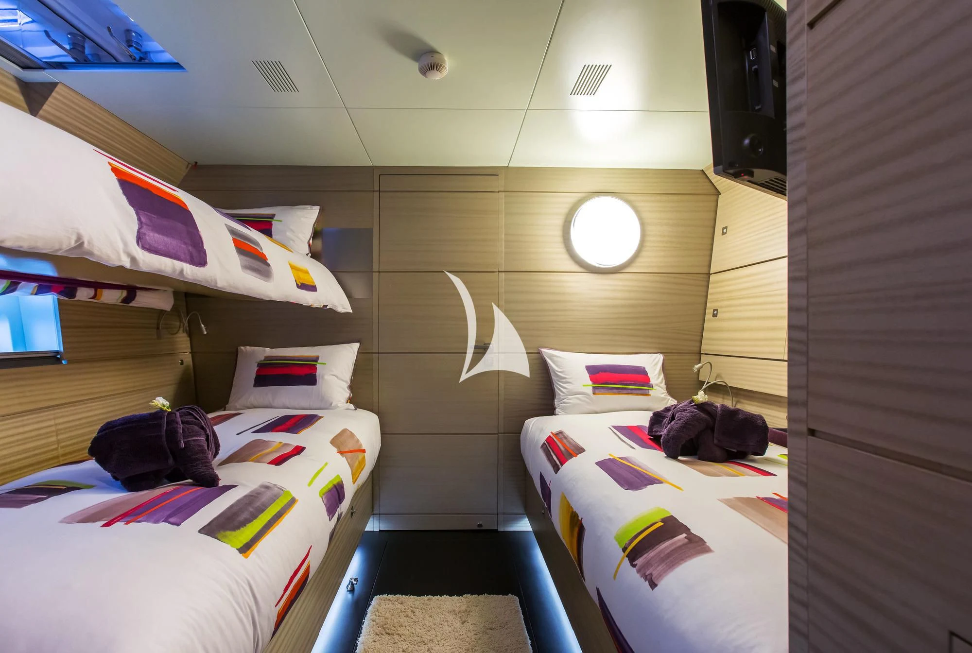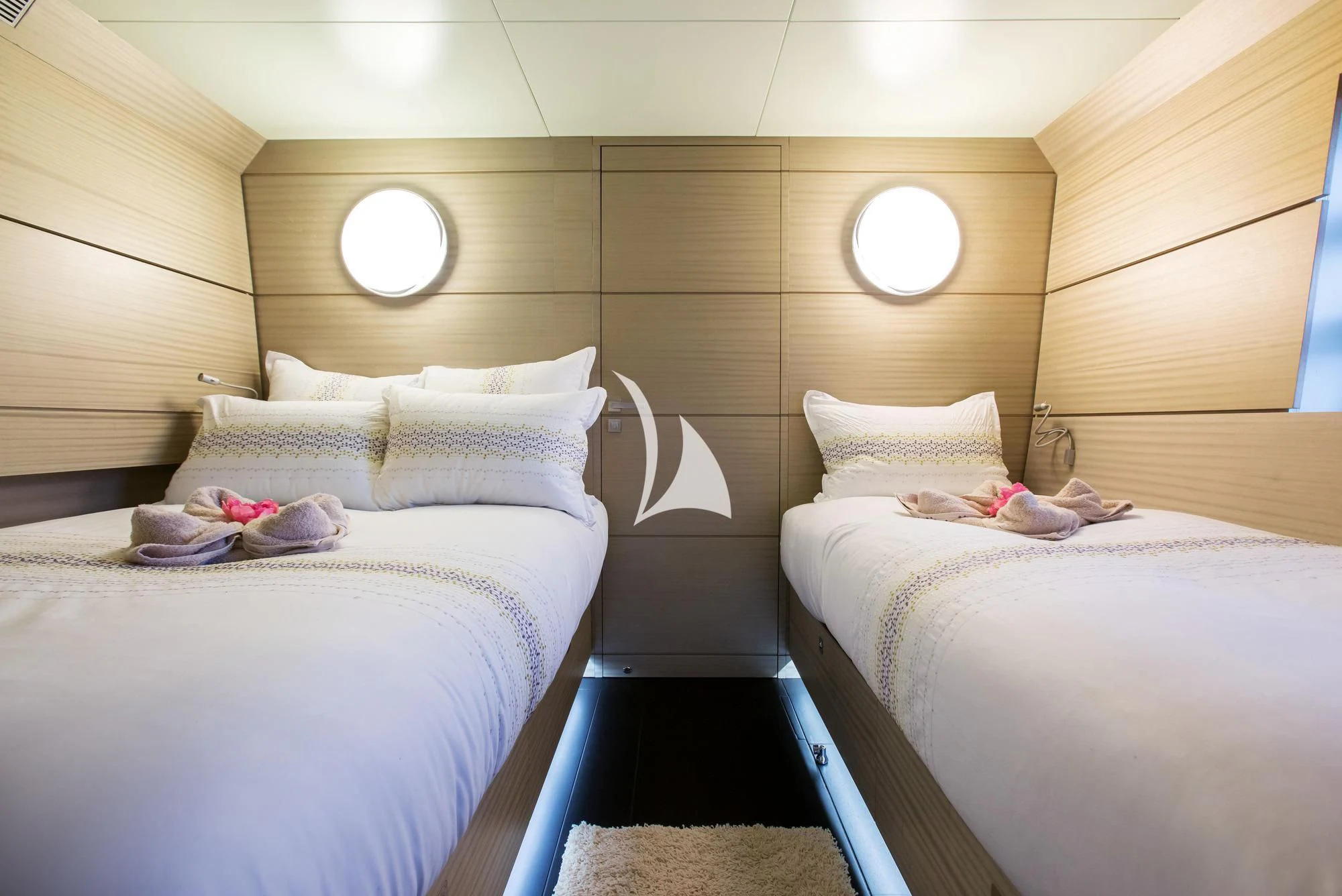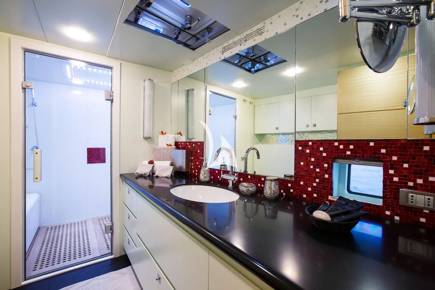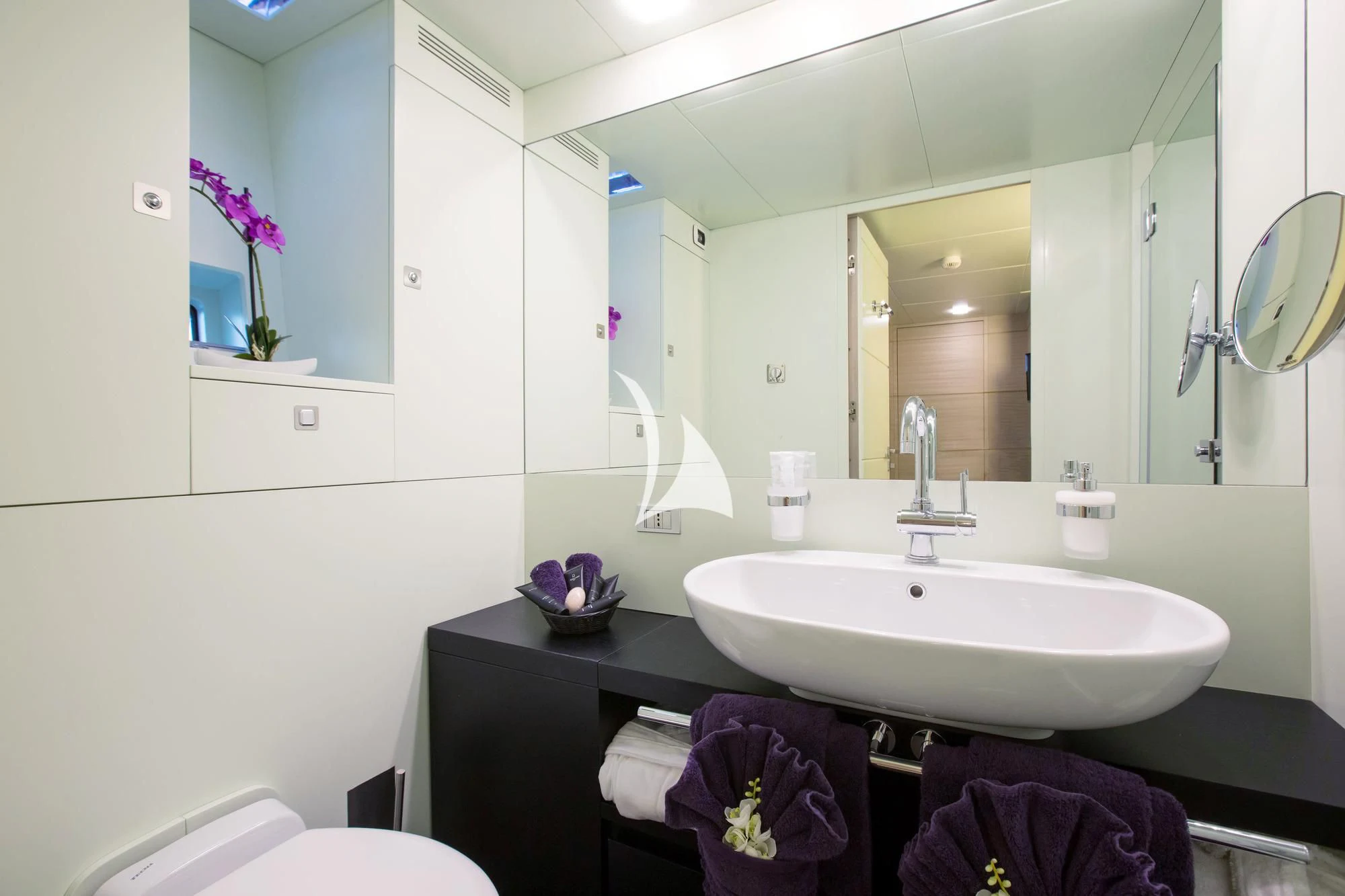Step inside MANTANI and you are introduced to an interior that exudes elegance and sophistication. The color palette is soothing yet luxurious, creating a warm ambiance throughout her living spaces. Three exquisite cabins comfortably accommodate six guests while ensuring privacy and tranquility during your voyage. Each cabin has been meticulously designed to offer ultimate comfort paired with unparalleled luxury. The master stateroom stands out with its lavish décor, spacious layout, and state-of-the-art amenities.