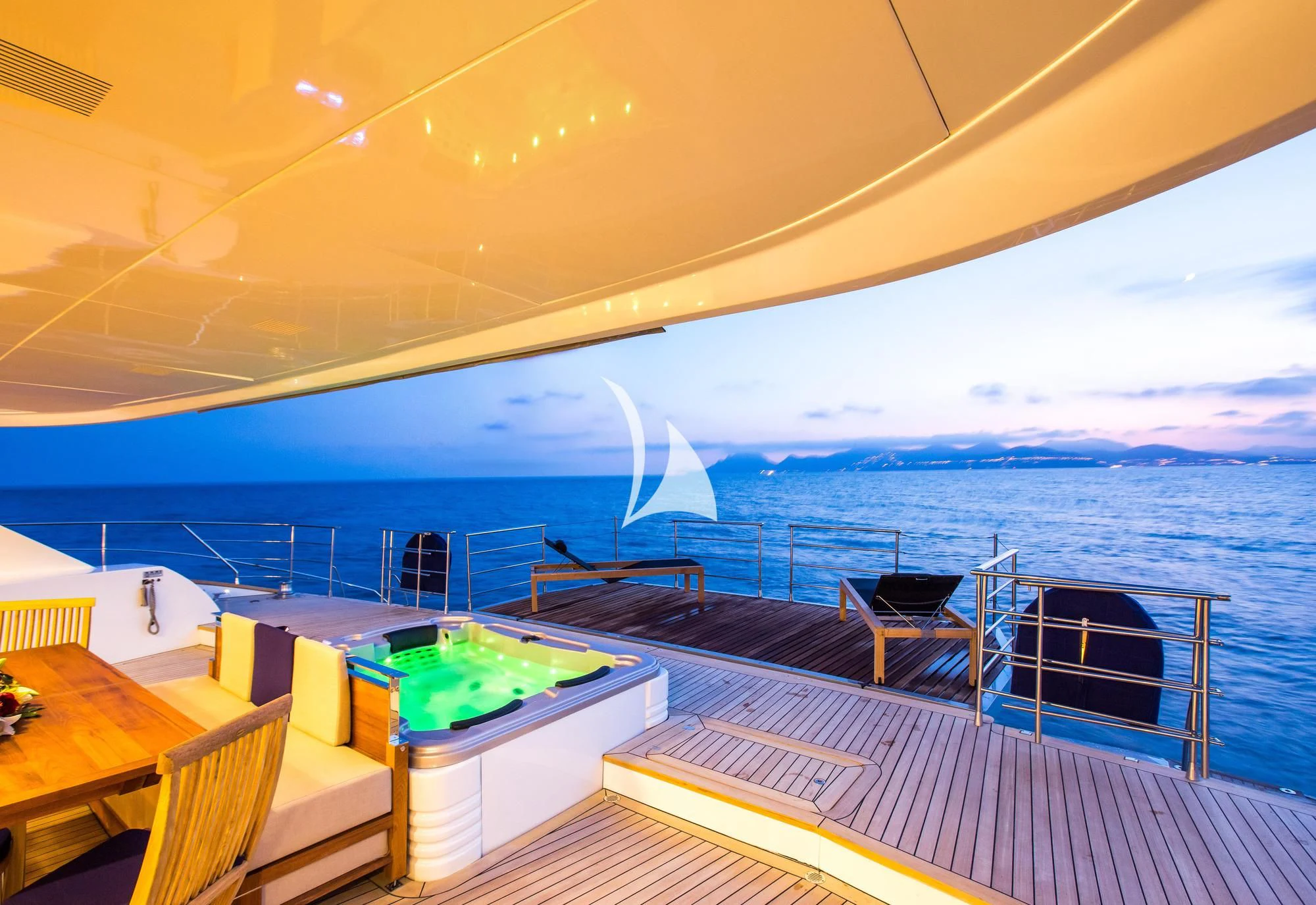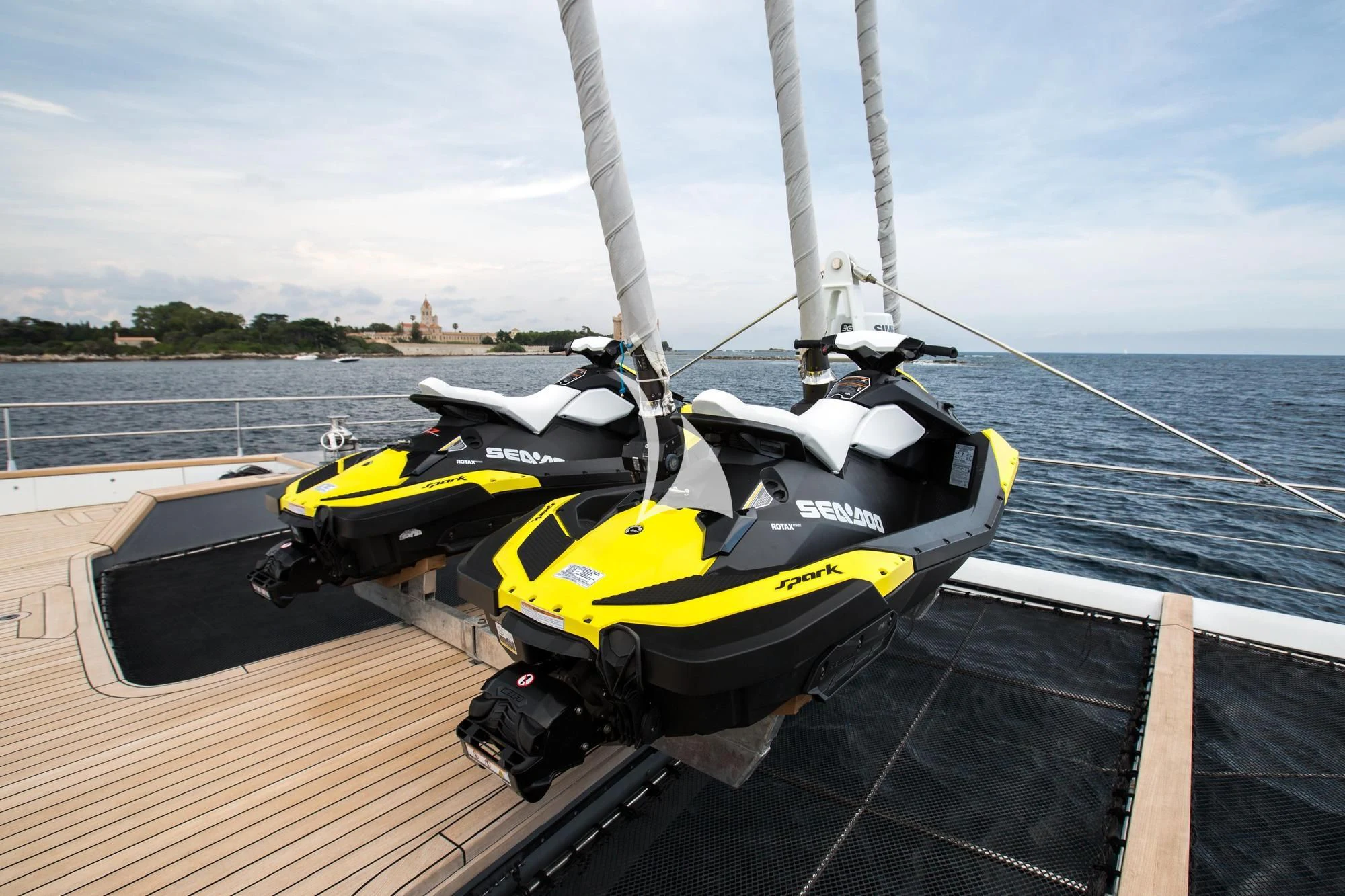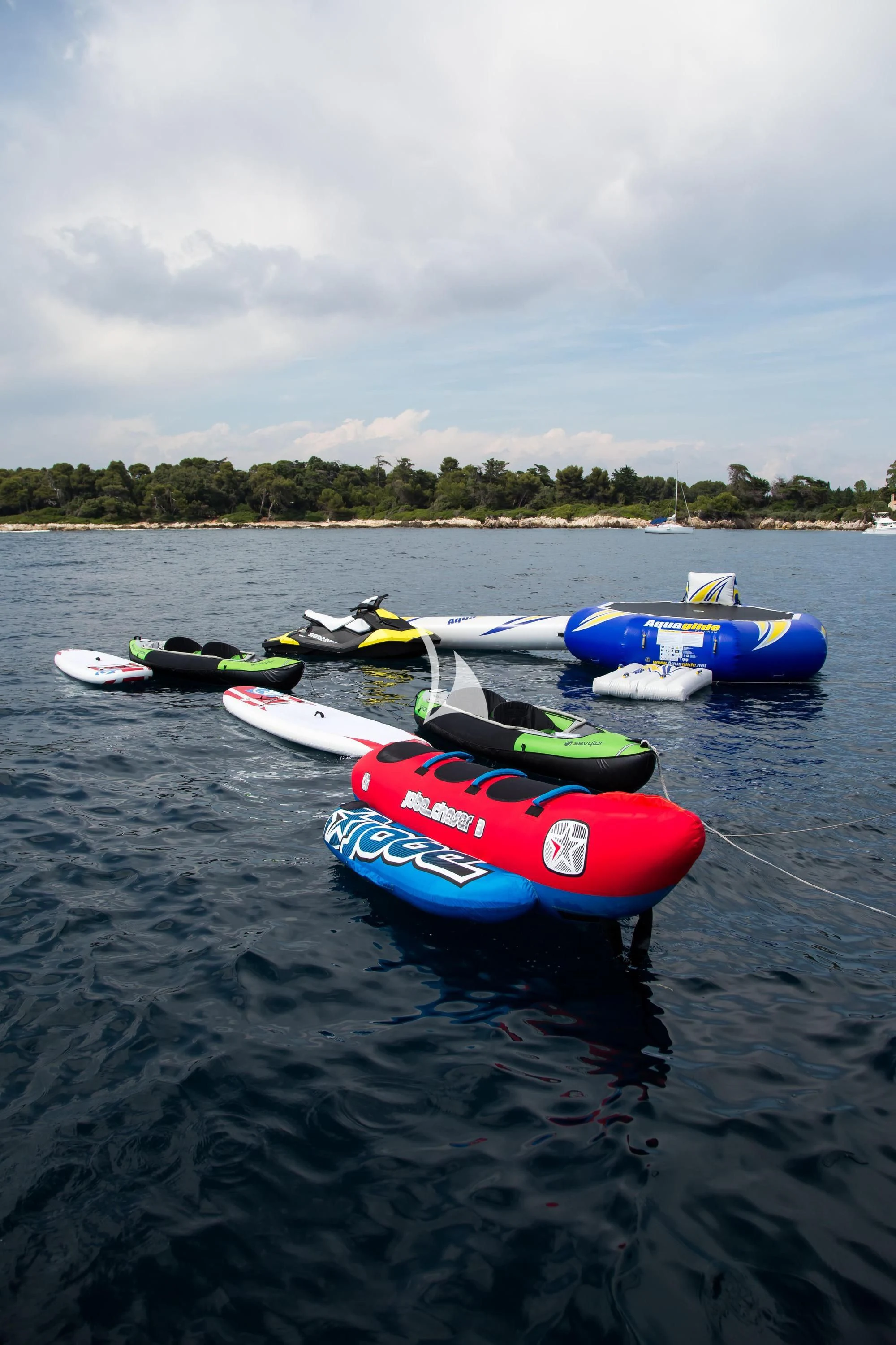But that's not all; this majestic vessel also boasts a beach club offering direct access to azure waters for swimming or indulging in water sports activities using our extensive inventory of water toys.