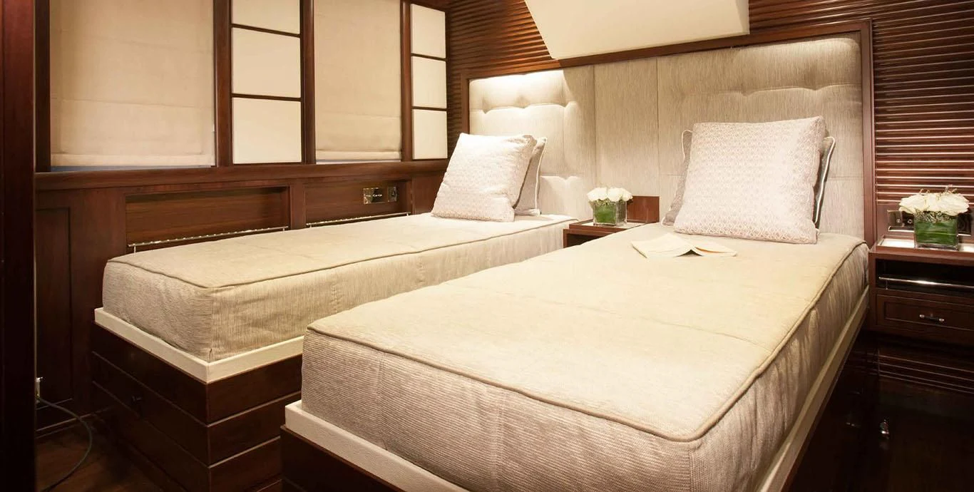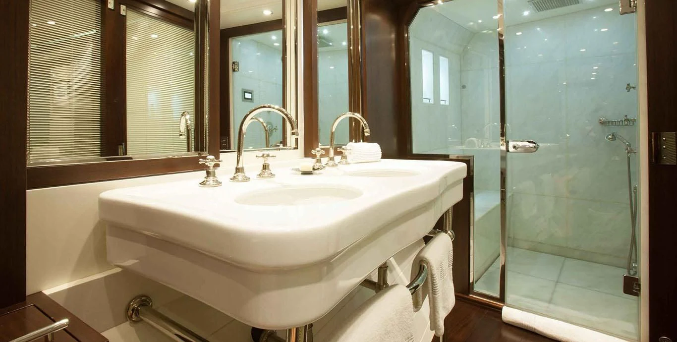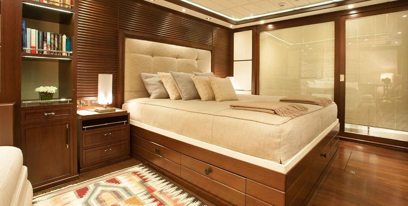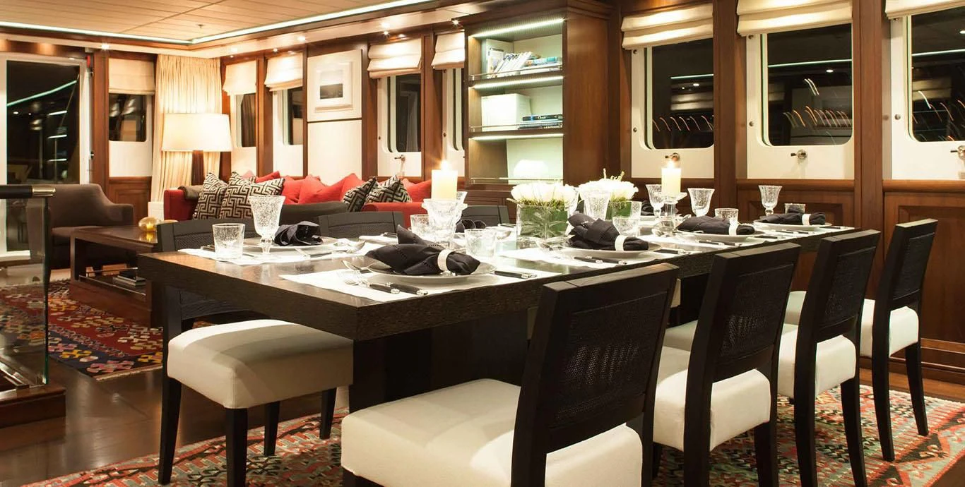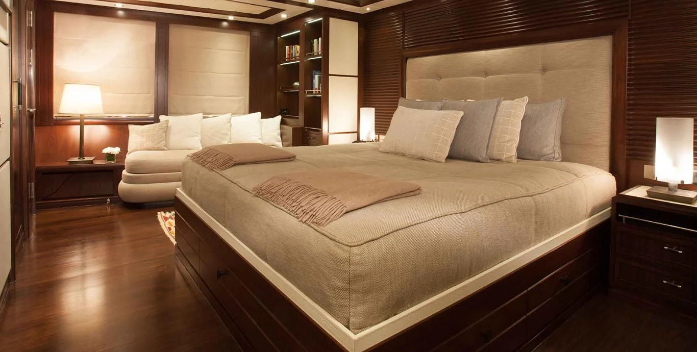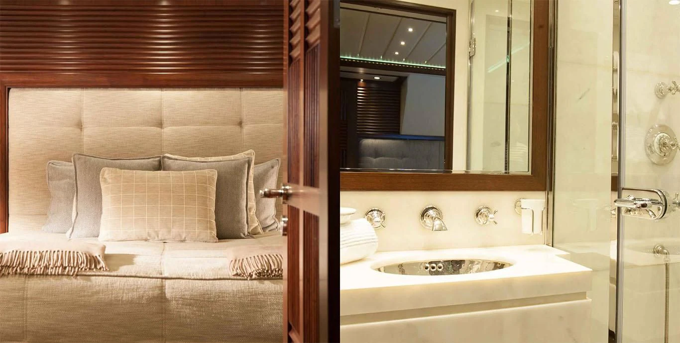 Stepping aboard ICE LADY reveals her stunning interiors designed with meticulous attention to detail. She offers room for up to ten guests across five lavish cabins including a master suite and four additional staterooms - all resplendent in their unique design elements and color palette evoking serenity and warmth. The interior style is tastefully done using high-quality materials that are pleasing both visually and tactilely – creating spaces where comfort meets elegance seamlessly.