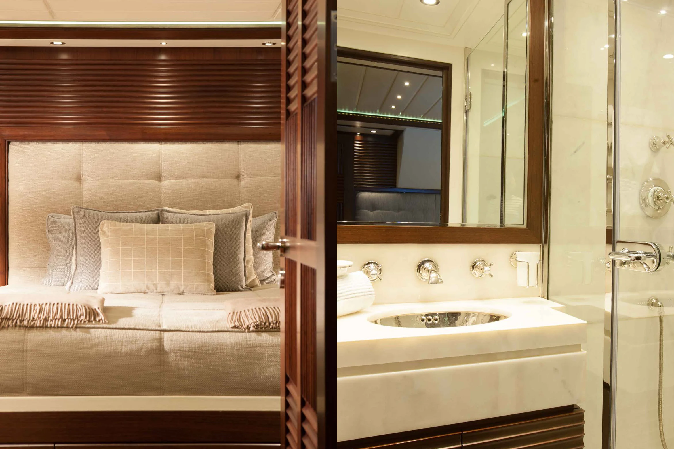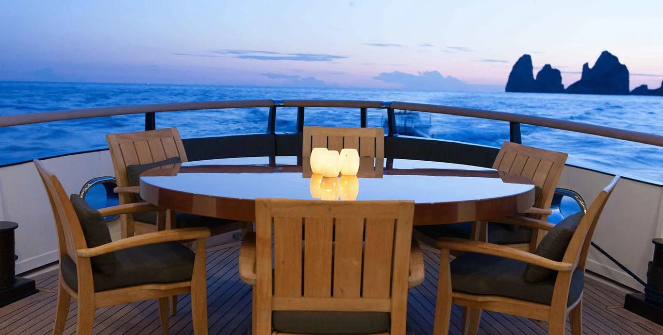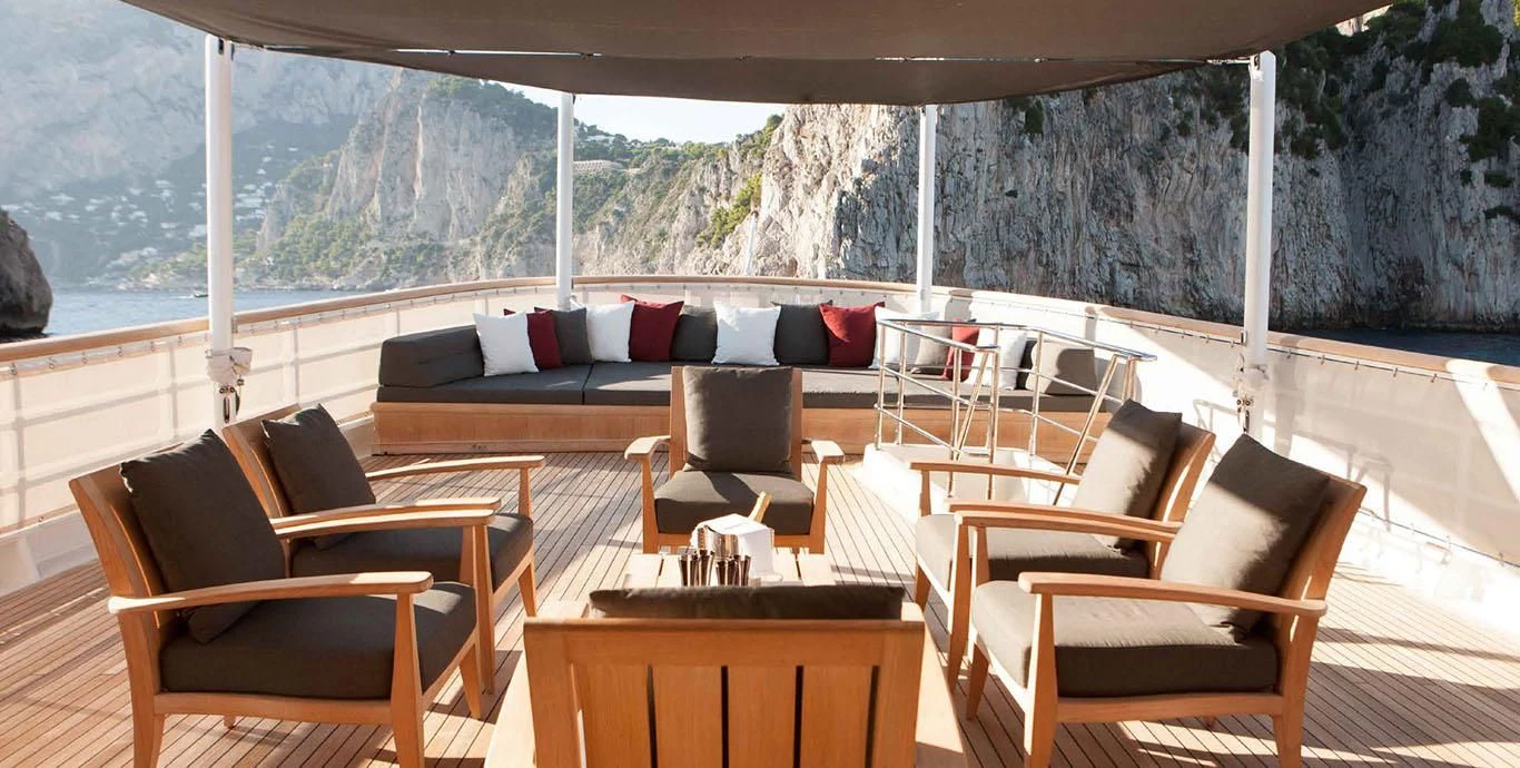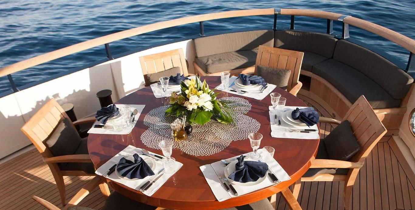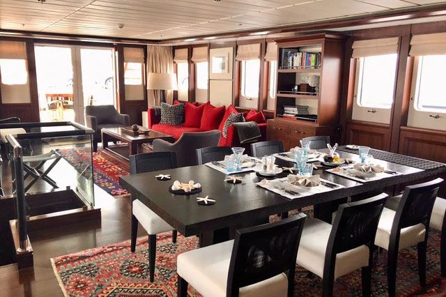 Stepping aboard ICE LADY reveals her stunning interiors designed with meticulous attention to detail. She offers room for up to ten guests across five lavish cabins including a master suite and four additional staterooms - all resplendent in their unique design elements and color palette evoking serenity and warmth. The interior style is tastefully done using high-quality materials that are pleasing both visually and tactilely – creating spaces where comfort meets elegance seamlessly.