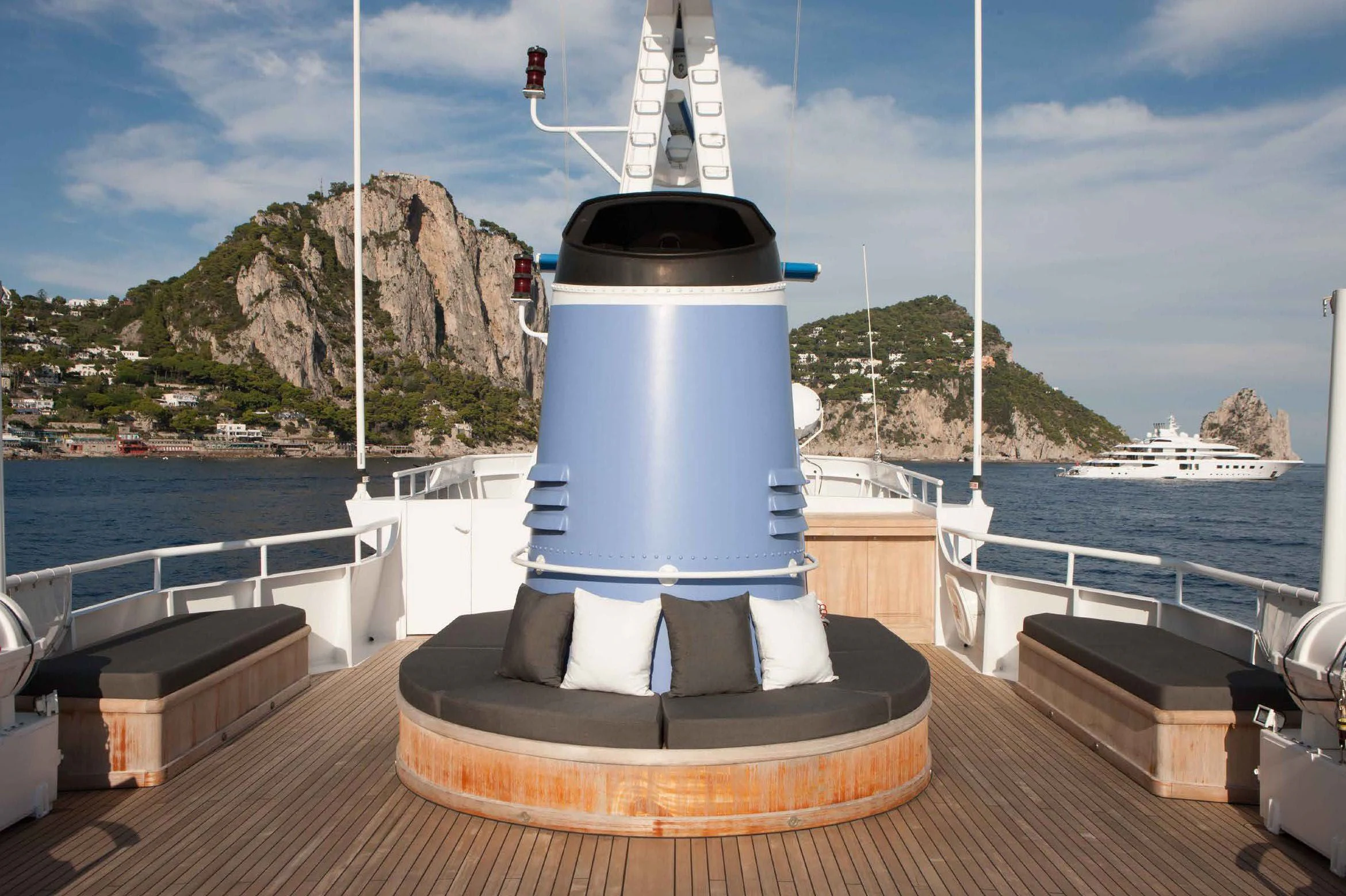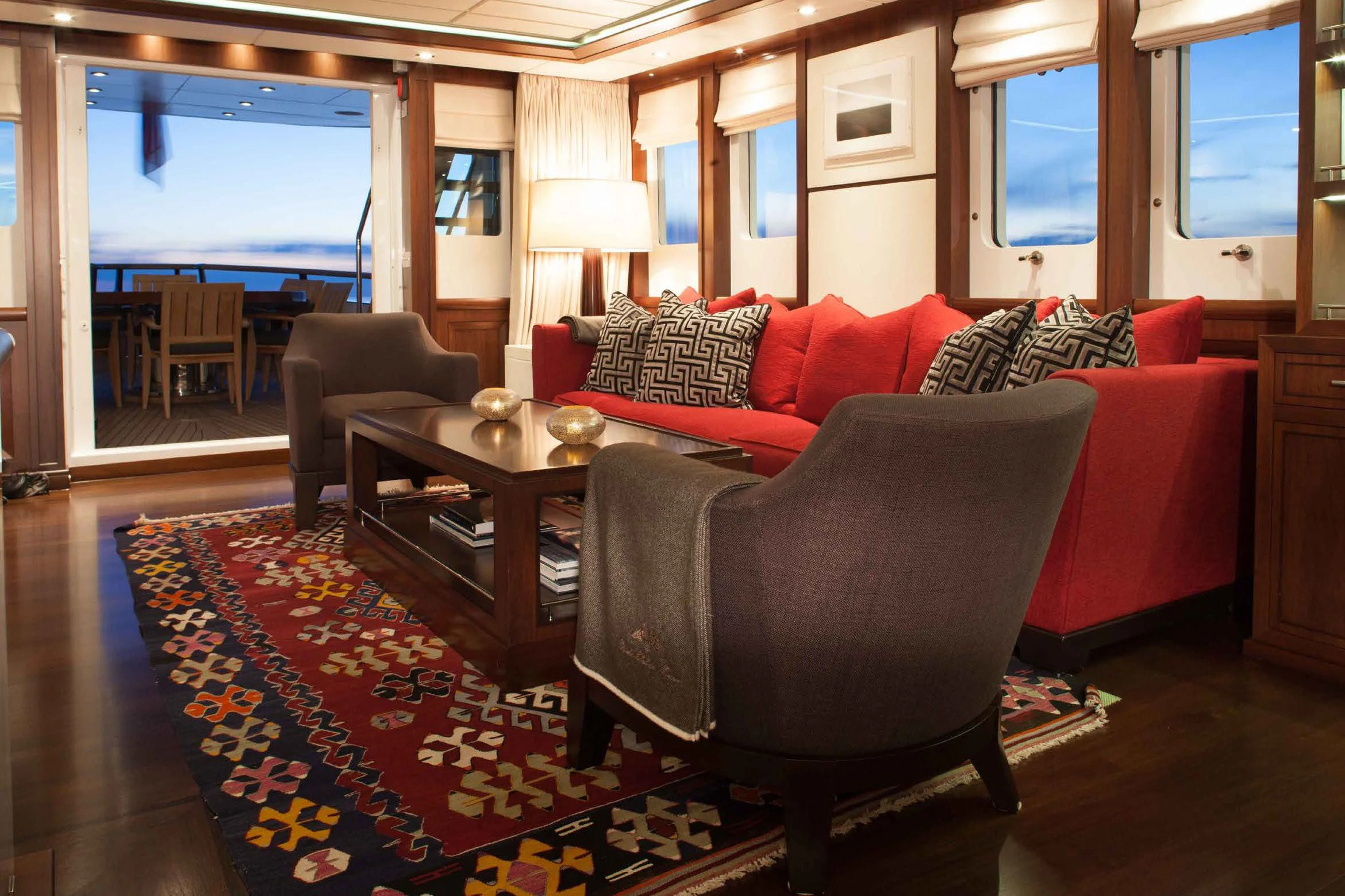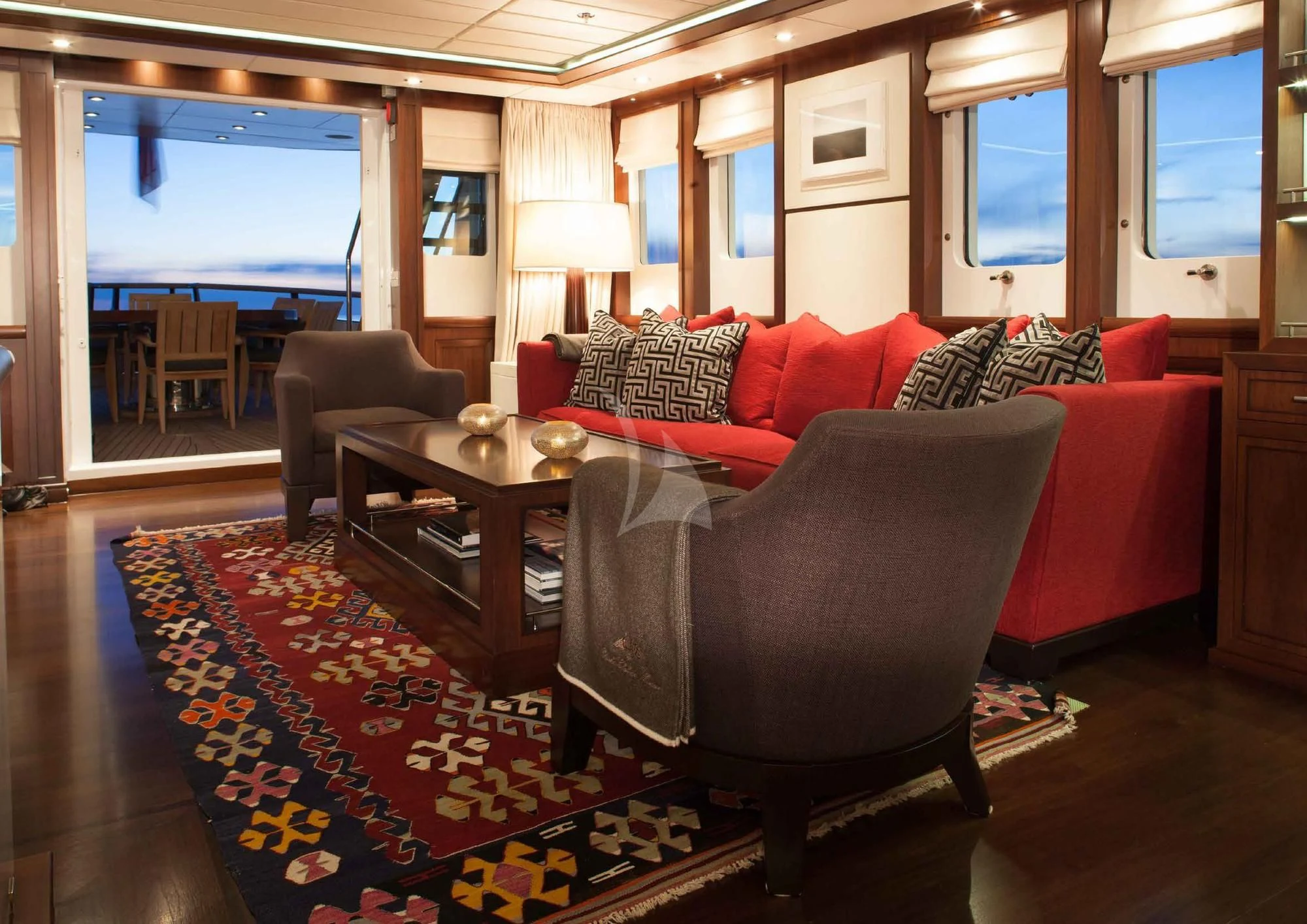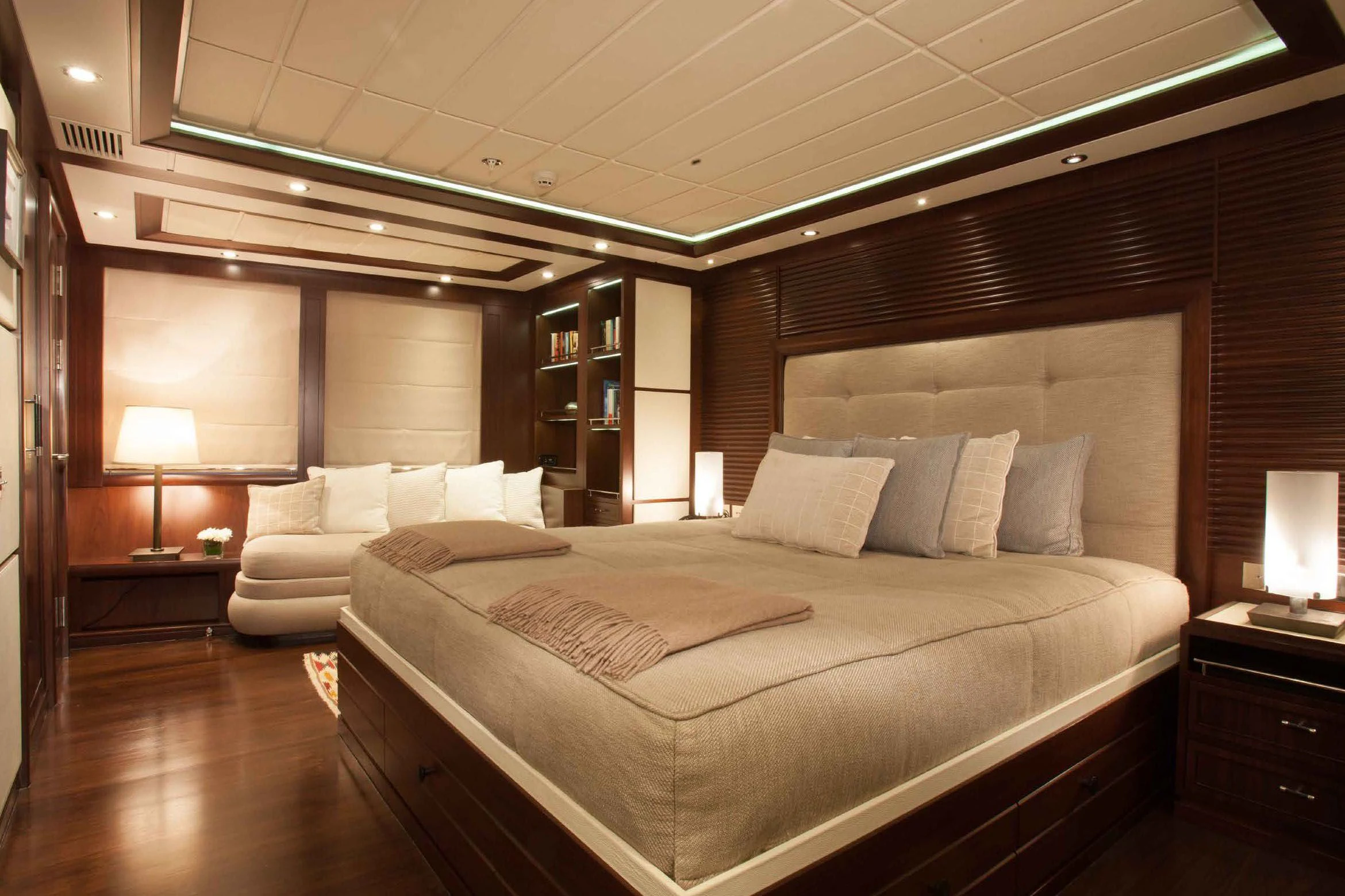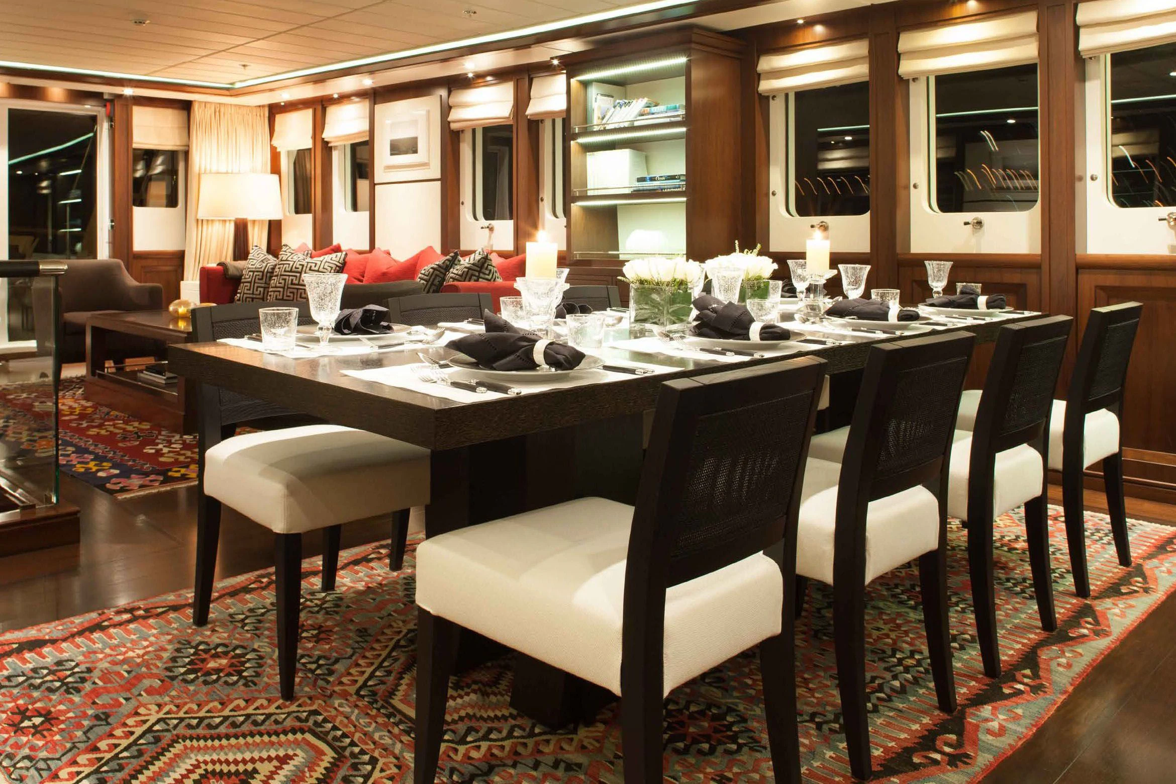 Stepping aboard ICE LADY reveals her stunning interiors designed with meticulous attention to detail. She offers room for up to ten guests across five lavish cabins including a master suite and four additional staterooms - all resplendent in their unique design elements and color palette evoking serenity and warmth. The interior style is tastefully done using high-quality materials that are pleasing both visually and tactilely – creating spaces where comfort meets elegance seamlessly.