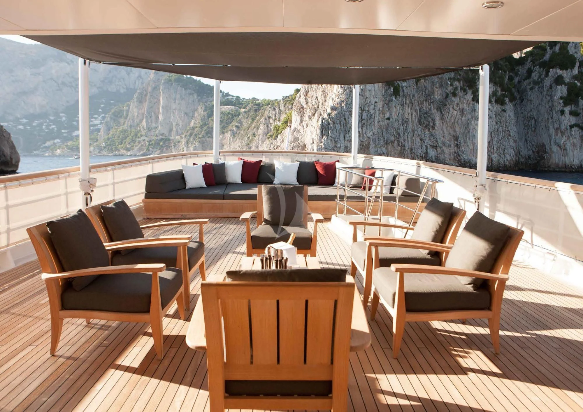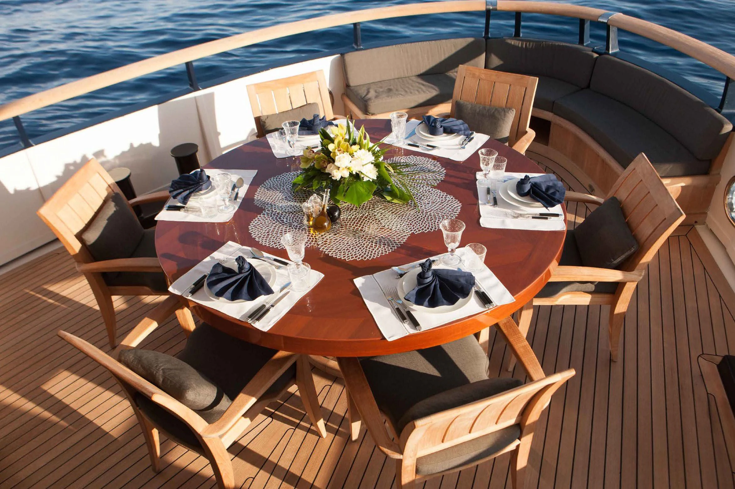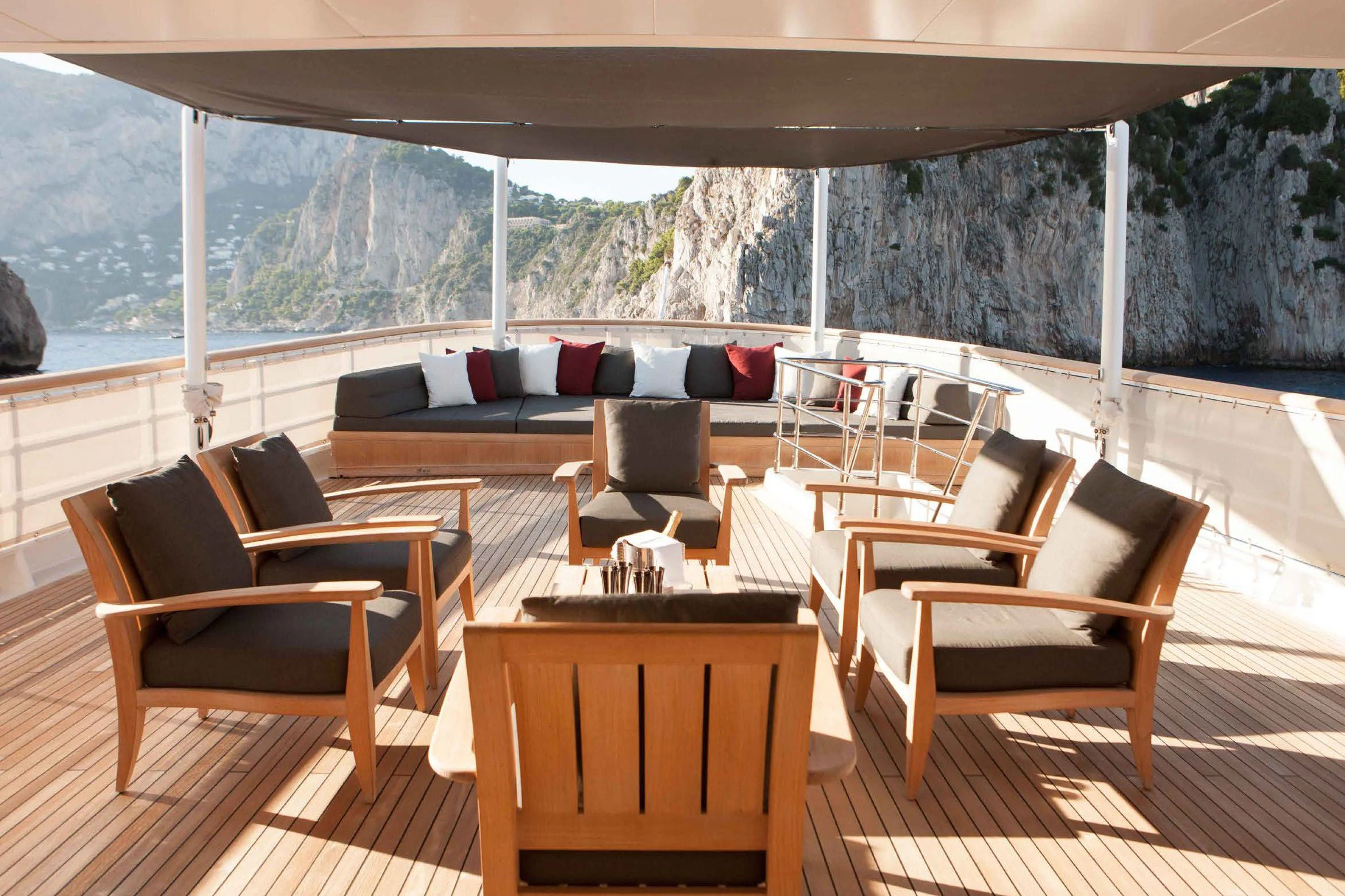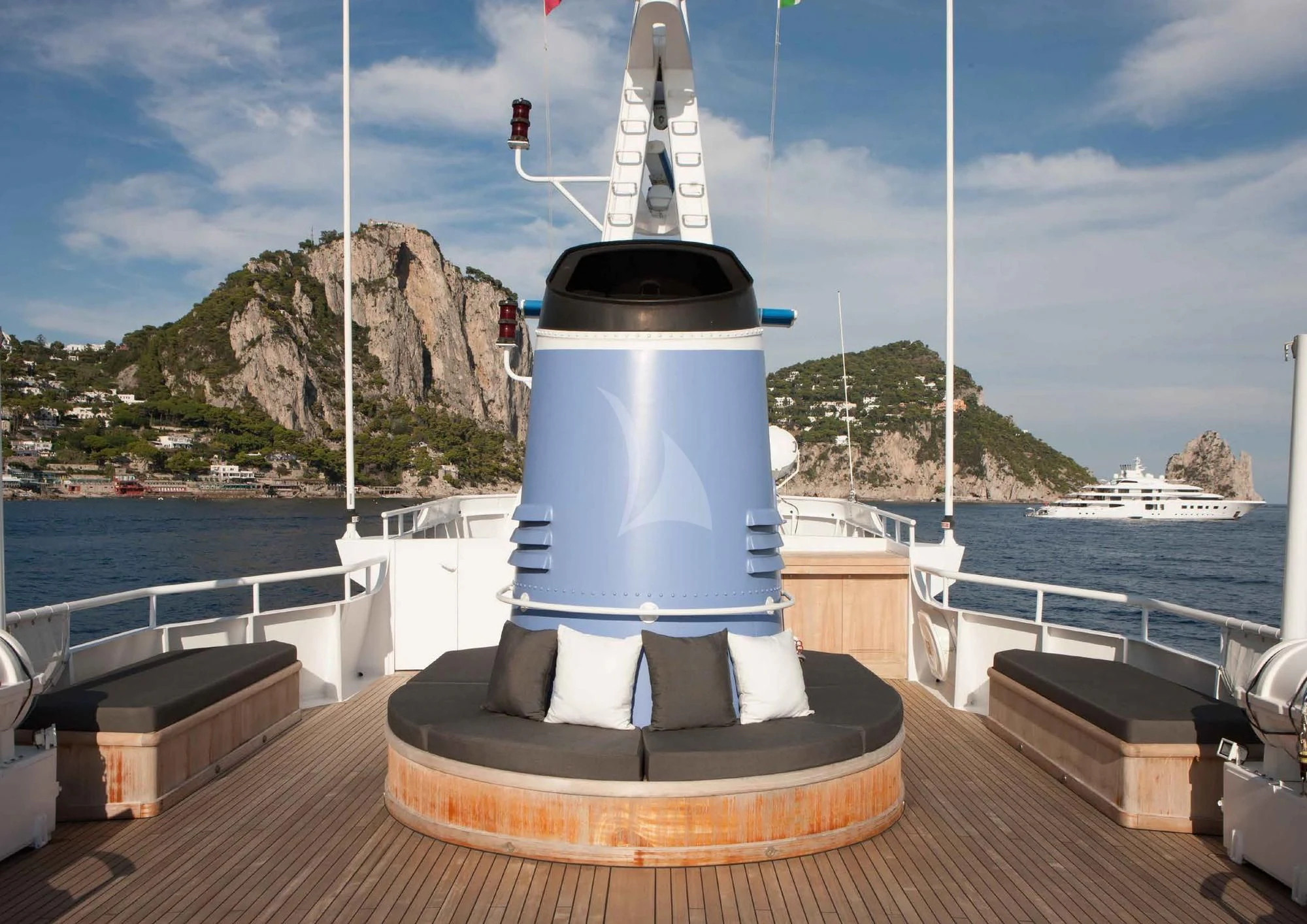 Stepping aboard ICE LADY reveals her stunning interiors designed with meticulous attention to detail. She offers room for up to ten guests across five lavish cabins including a master suite and four additional staterooms - all resplendent in their unique design elements and color palette evoking serenity and warmth. The interior style is tastefully done using high-quality materials that are pleasing both visually and tactilely – creating spaces where comfort meets elegance seamlessly.