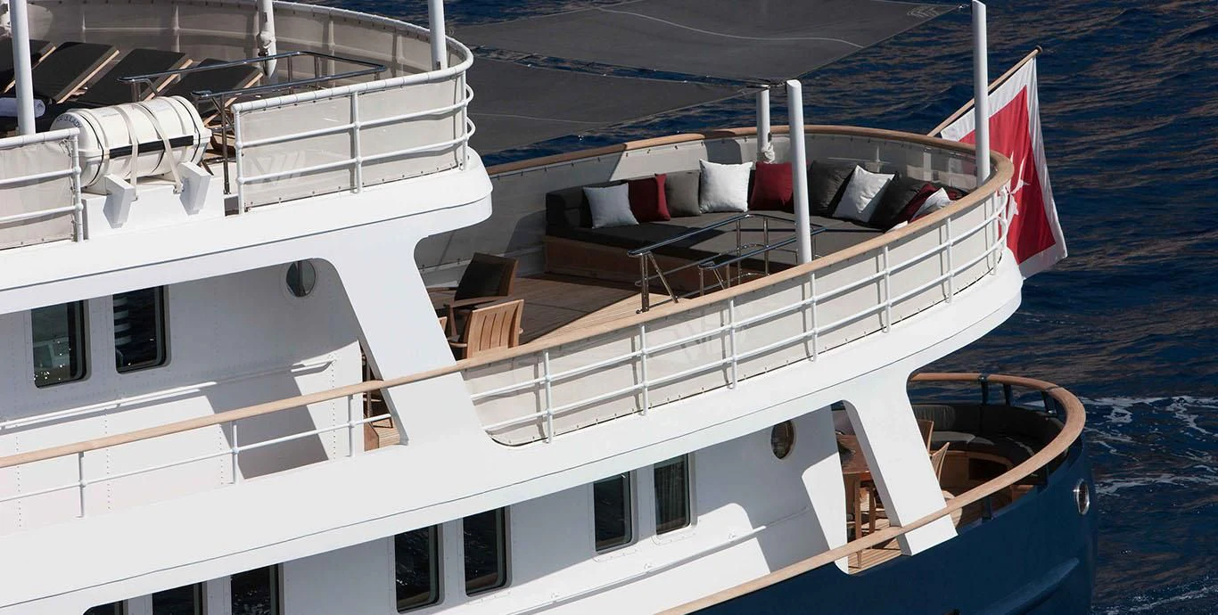 Constructed with robust steel material, ICE LADY boasts an imposing silhouette that commands attention on any seascape. Her beam stretches to an expansive 24 feet and 11 inches or approximately 7.3 meters, ensuring ample space for leisurely pursuits onboard. The exterior design is characterized by sleek lines and balanced proportions, exuding an air of sophistication that's hard to match. Her cruising speed stands at a comfortable ten knots while she can surge forward at a maximum speed of twelve knots when called upon.