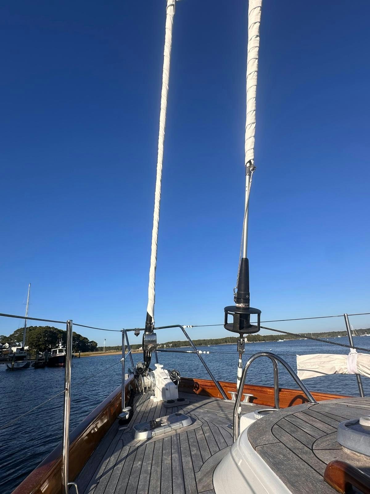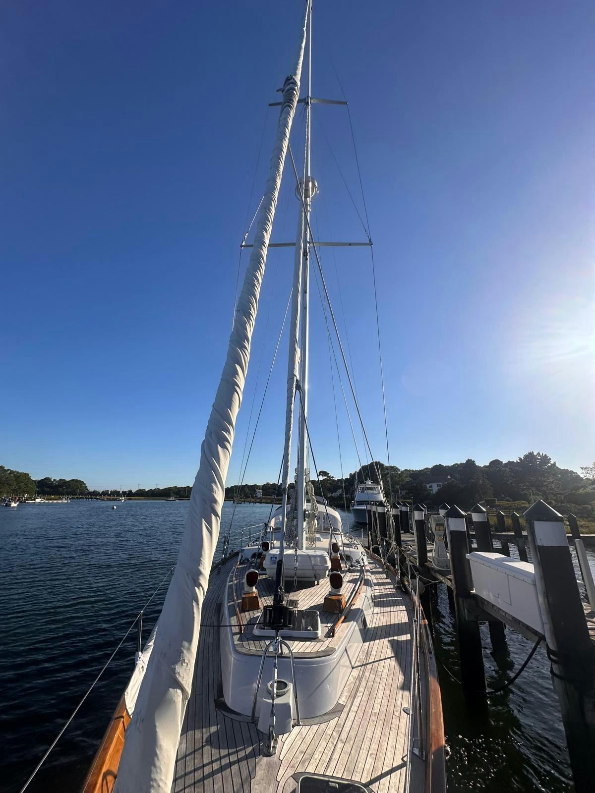 She’s had just two owners, with the same captain and current owner for over 20 years, and it shows. II has been kept indoors nearly every winter, except for two seasons when she was in The Bahamas, and the care taken over the years is evident throughout. Back in 2001, she underwent a million-dollar refit that touched nearly every part of the yacht–– systems, cosmetics, and structural details — bringing her up to a modern standard while retaining her classic charm. More recently, in 2021–2022, she had her mast and standing rigging replaced, along with updates to her sails and winches to keep her easy and enjoyable to handle.