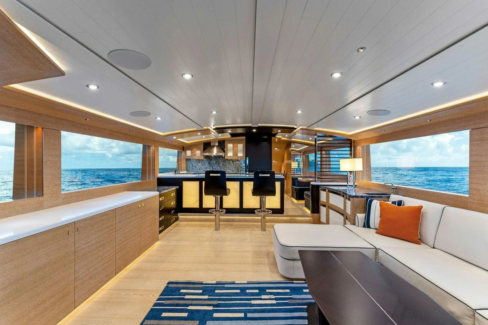 “III Amigos” is an extraordinary and truly custom Michael Rybovich and Sons custom Sportfish Yacht. In addition to her top pedigree custom yacht builder, “III Amigos” had every pain staking detail thought of during her build by experienced yacht owner, captain and crew. The stunning interior is a masterpiece from a partnership on the interior design by Patrick Knowles Designs and then fabricated by Metrica of Germany which brings sophistication, detail and luxury from experience with brands such as Feadship and others. The show stopping exterior profile and lines are accented with real teak to bring in her true custom heritage. On the business side of it all, “III Amigos” has incredible performance, fuel capacity, significant and redundant equipment list to out run, out travel and out fish the competition.