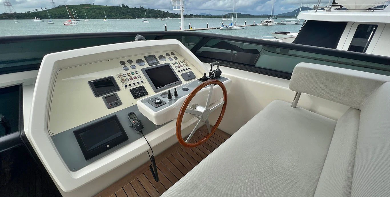 The heart that powers this magnificent vessel is an MTU engine model:16V2000 M93 with an engine power of a staggering 2430 hp /1812 kW that can propel her to cruise speeds up to an impressive 25 knots and reach maximum speeds up to an exhilarating 29 knots. Steering is made effortless with two helm stations & one emergency steering located conveniently in the engine room for swift navigation adjustments when needed.