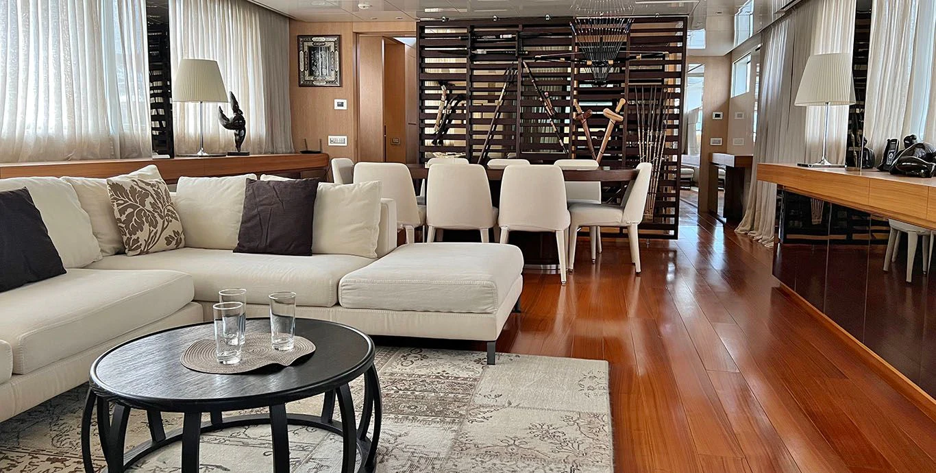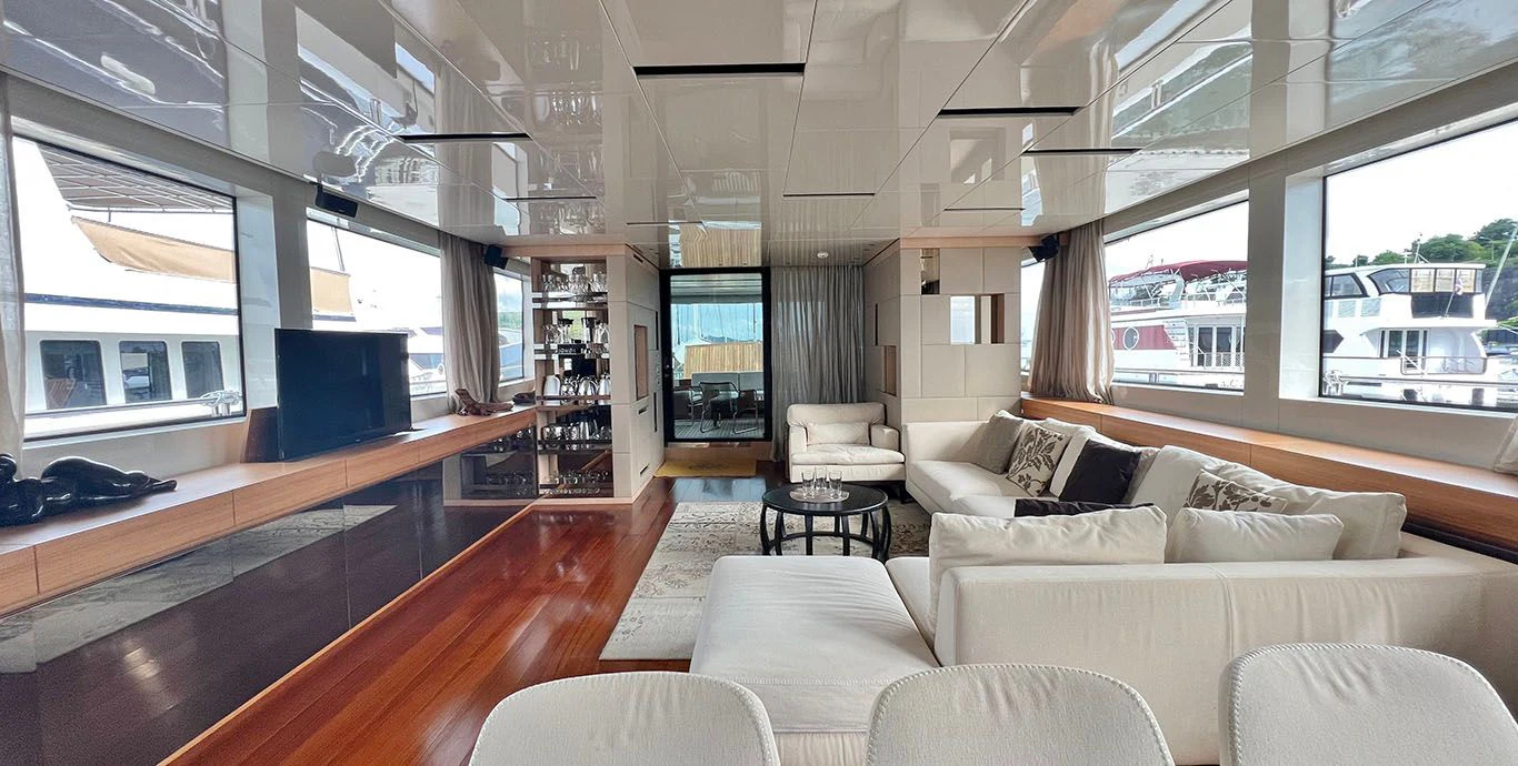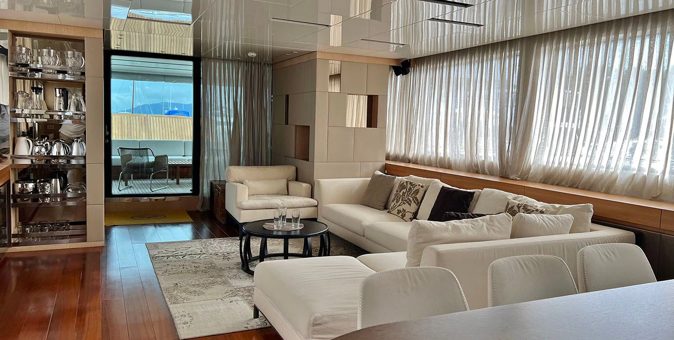 As we step inside INDIGO, we are greeted by opulence personified in every corner of its four cabins designed meticulously to accommodate eight guests comfortably along with provisions for five crew members ensuring personalized services round-the-clock. The interior design showcases contemporary elegance paired harmoniously with comfort-oriented features making it perfect for both relaxation and entertainment.