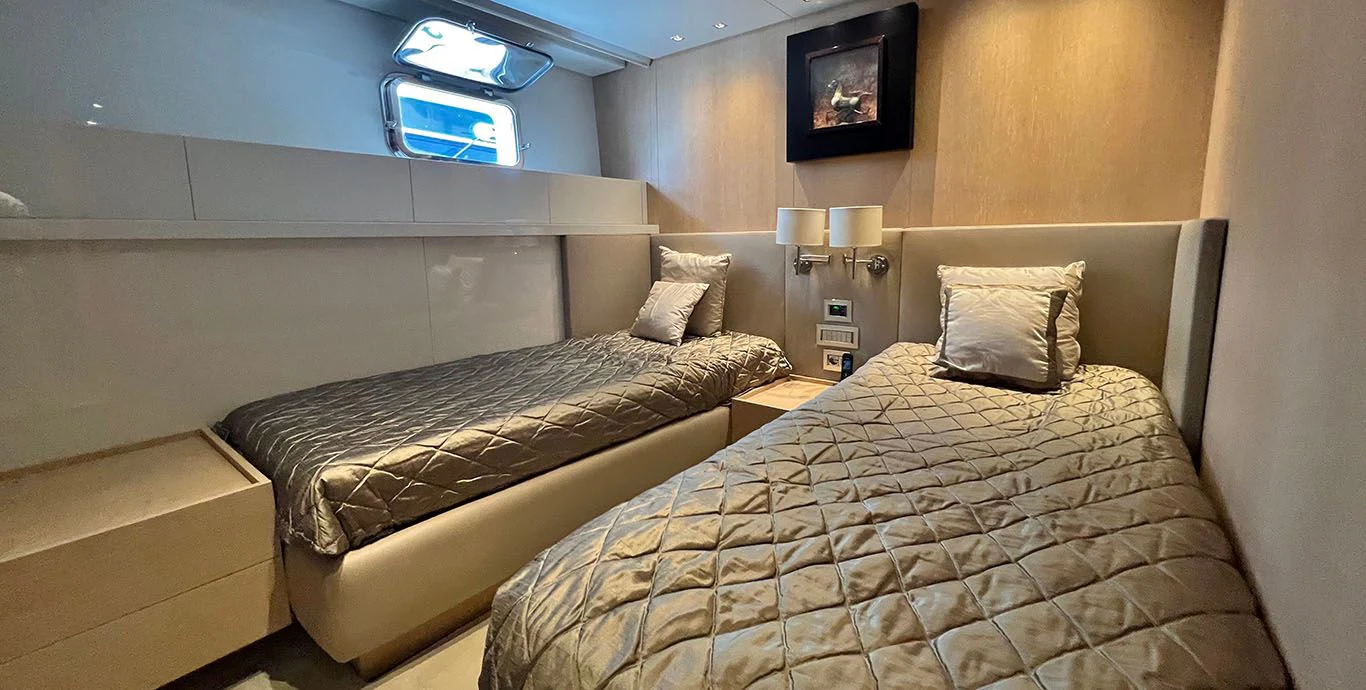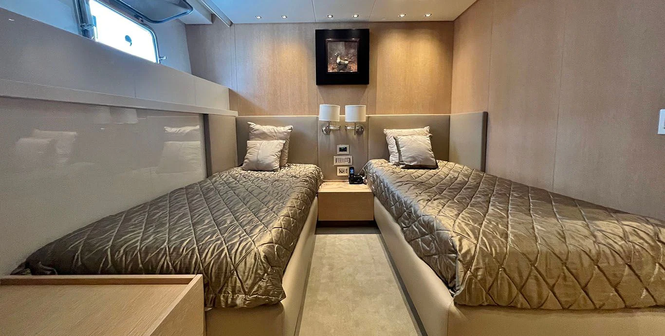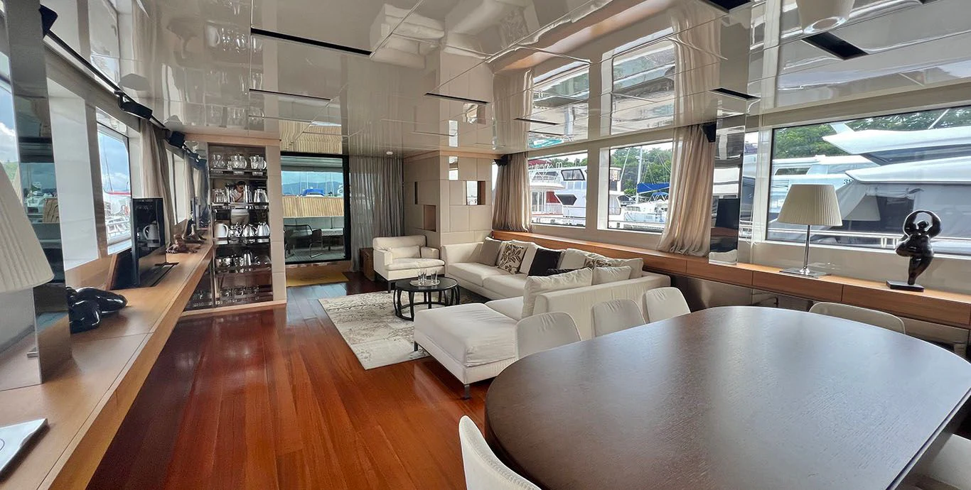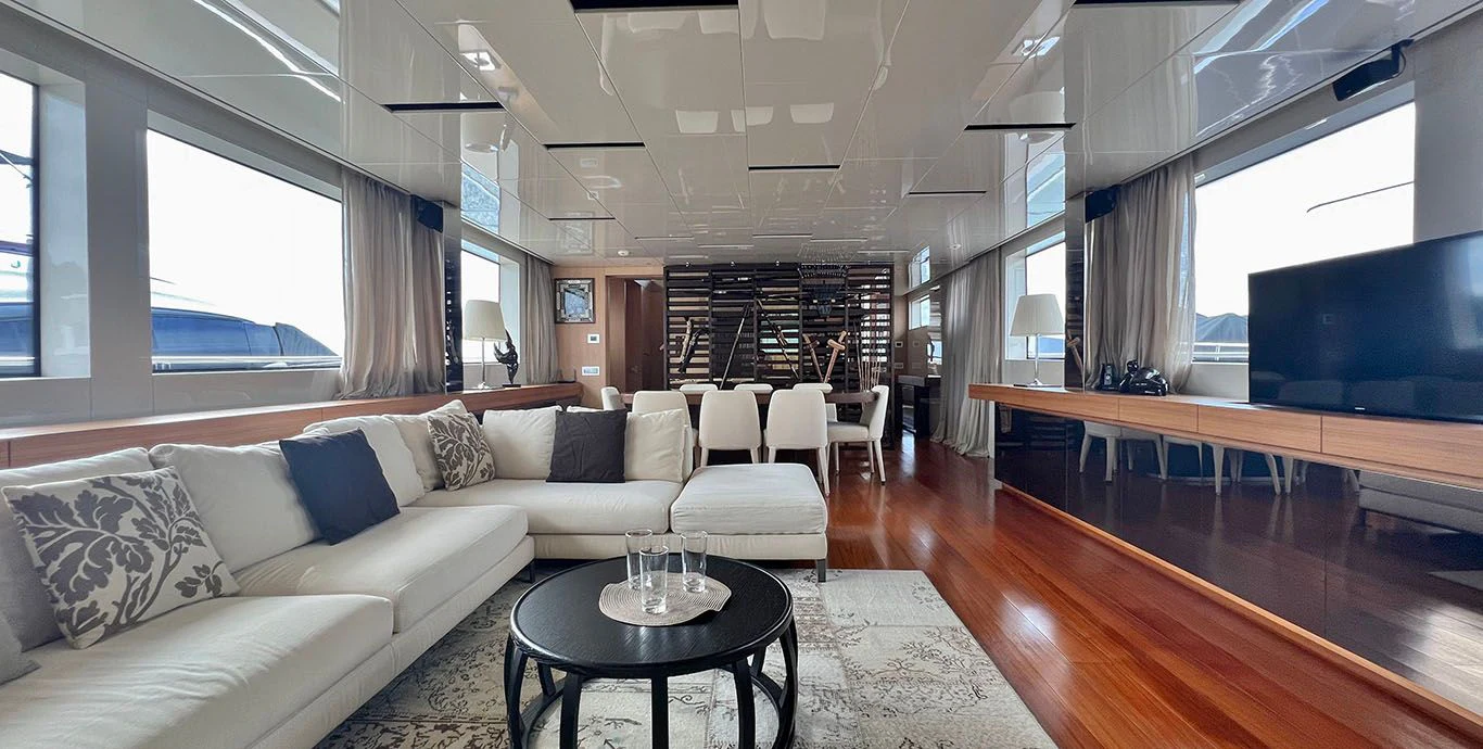 As we step inside INDIGO, we are greeted by opulence personified in every corner of its four cabins designed meticulously to accommodate eight guests comfortably along with provisions for five crew members ensuring personalized services round-the-clock. The interior design showcases contemporary elegance paired harmoniously with comfort-oriented features making it perfect for both relaxation and entertainment.
