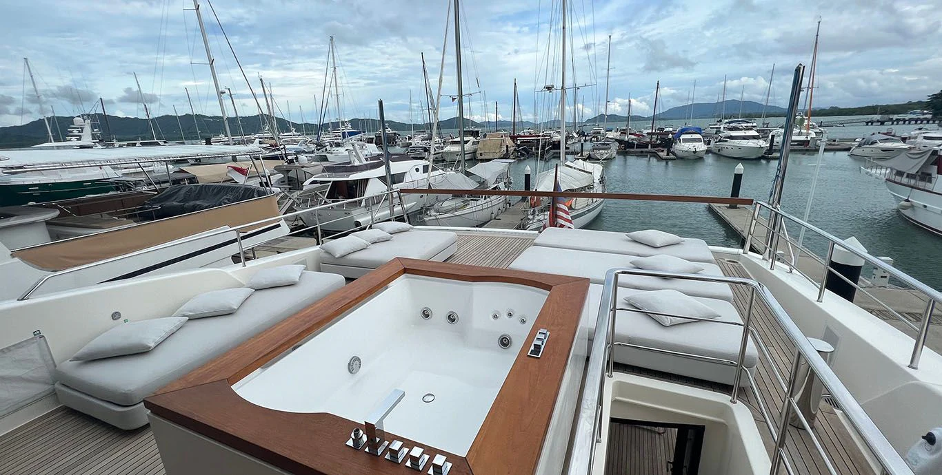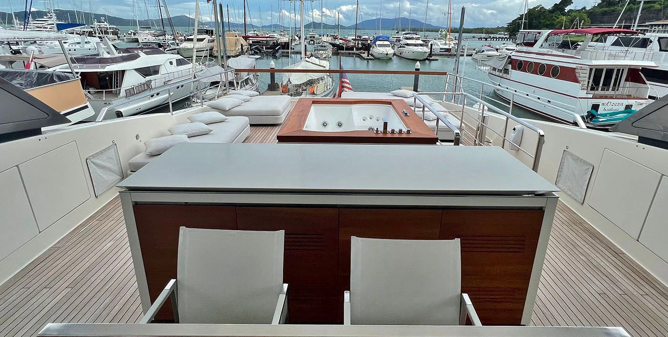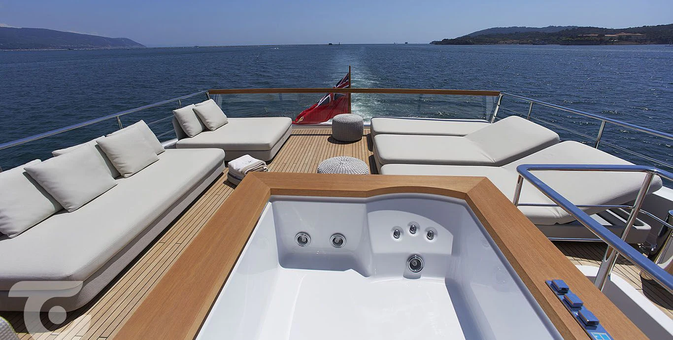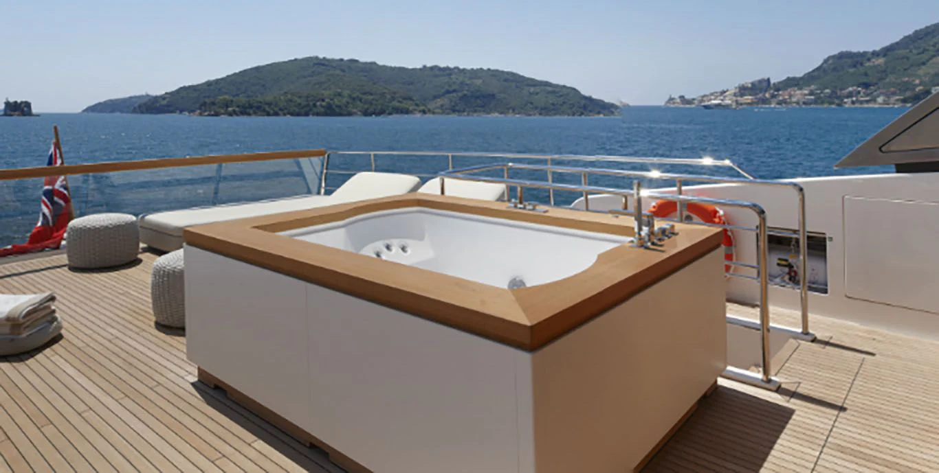 Indulgence comes easy aboard INDIGO thanks to her rich array of amenities including a Jacuzzi for leisurely dips under the sun or stars, a fully-equipped gym catering fitness enthusiasts who wouldn't want their workout routine disrupted even while cruising across oceans, Wi-Fi connectivity keeping you connected with the world outside your floating paradise and last but certainly not least - deck Jacuzzi promising endless hours of relaxation soaking up breathtaking vistas surrounding you.