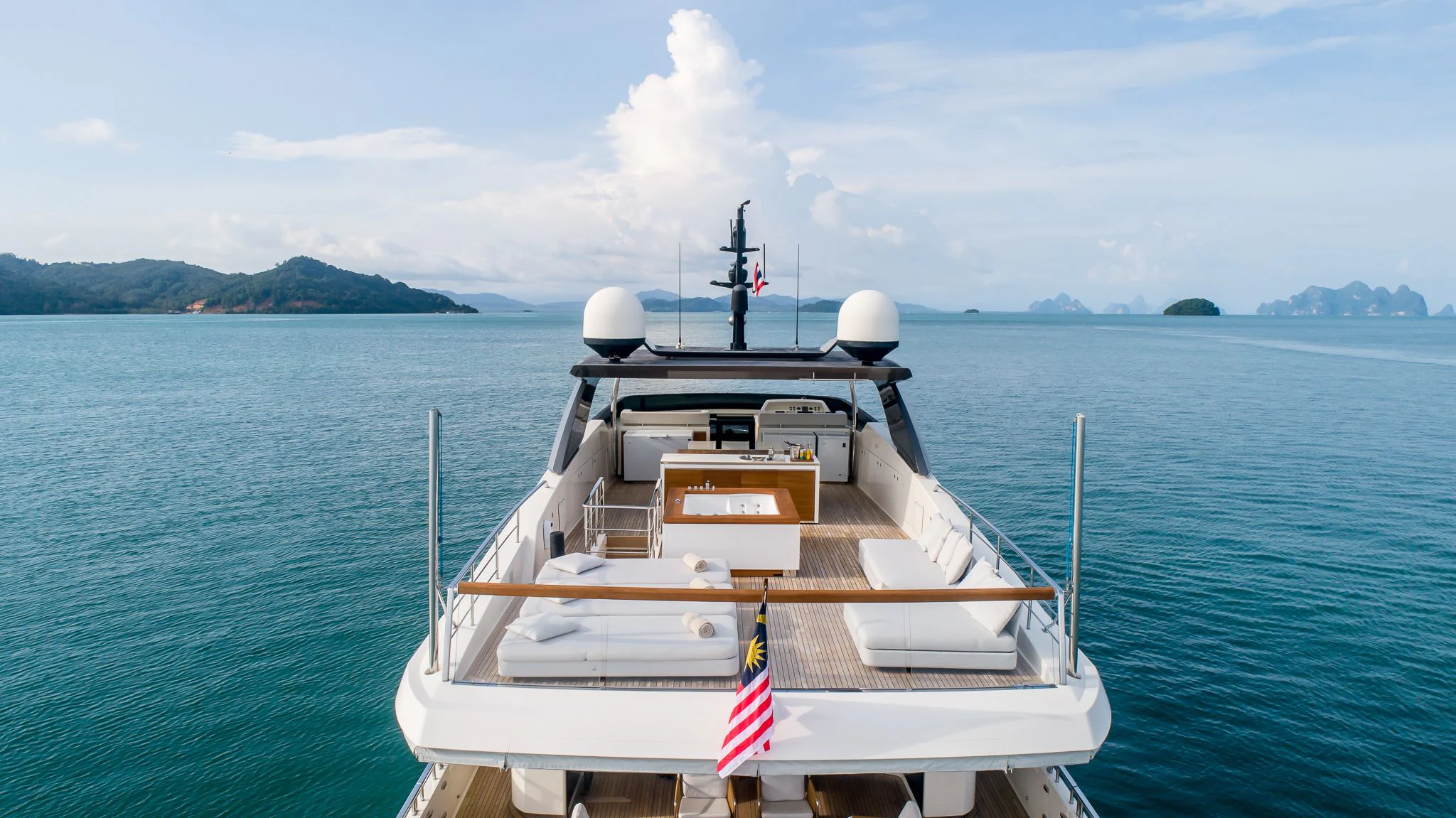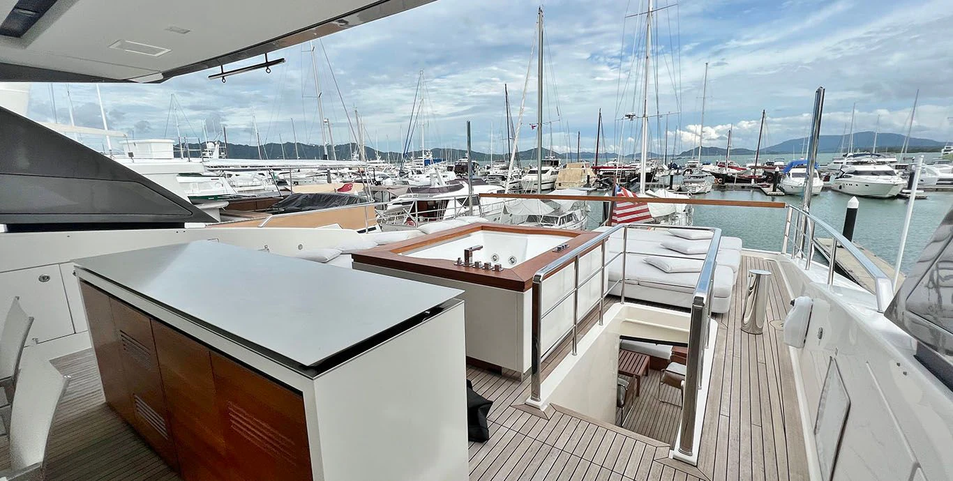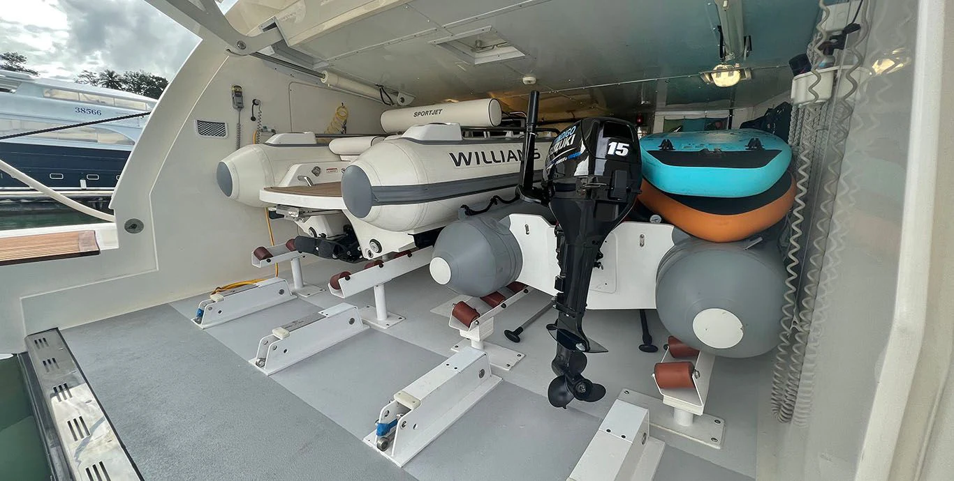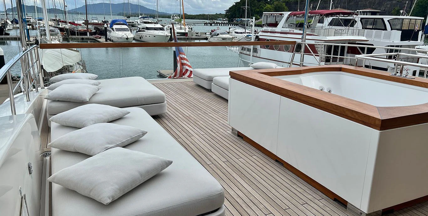 Indulgence comes easy aboard INDIGO thanks to her rich array of amenities including a Jacuzzi for leisurely dips under the sun or stars, a fully-equipped gym catering fitness enthusiasts who wouldn't want their workout routine disrupted even while cruising across oceans, Wi-Fi connectivity keeping you connected with the world outside your floating paradise and last but certainly not least - deck Jacuzzi promising endless hours of relaxation soaking up breathtaking vistas surrounding you.
