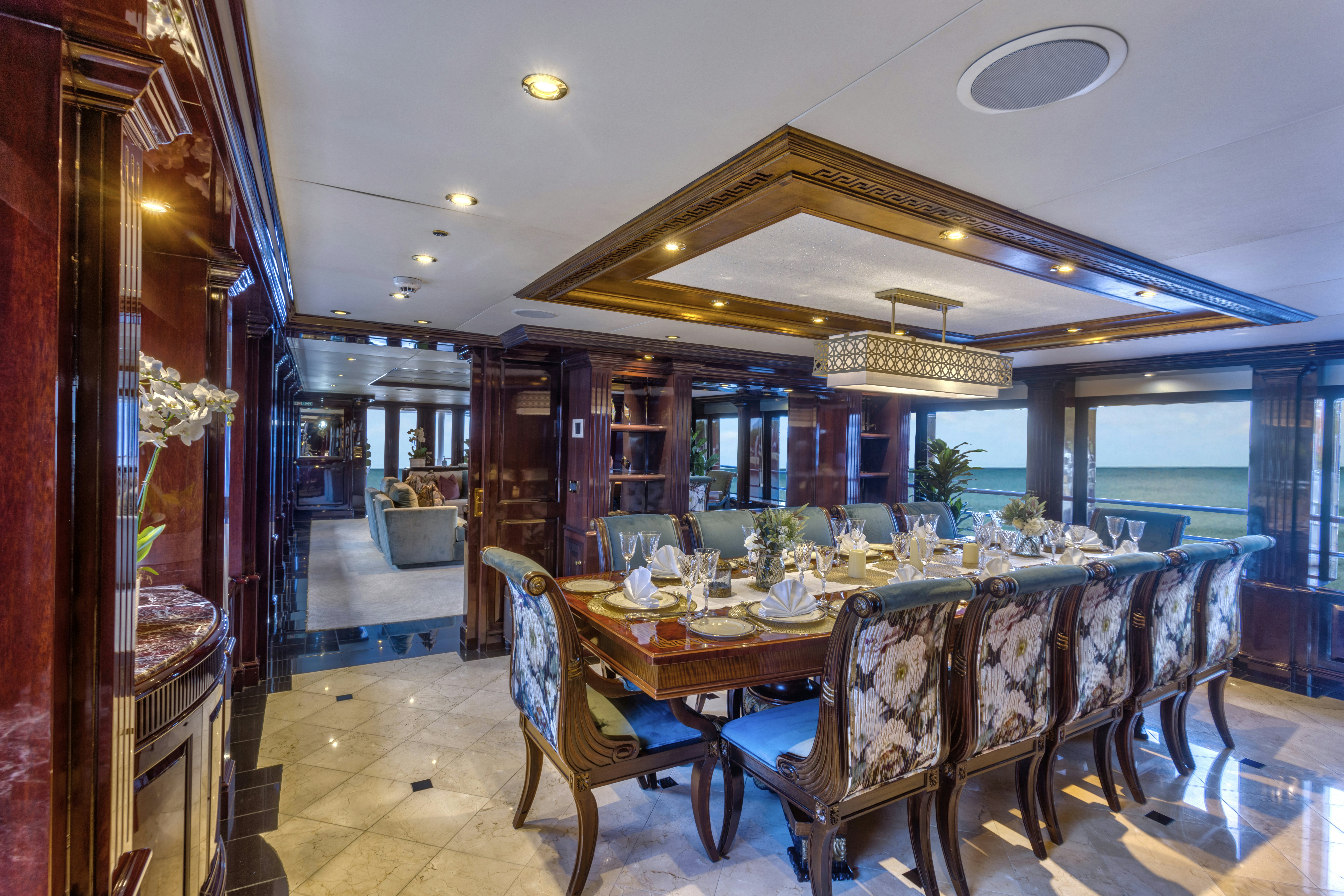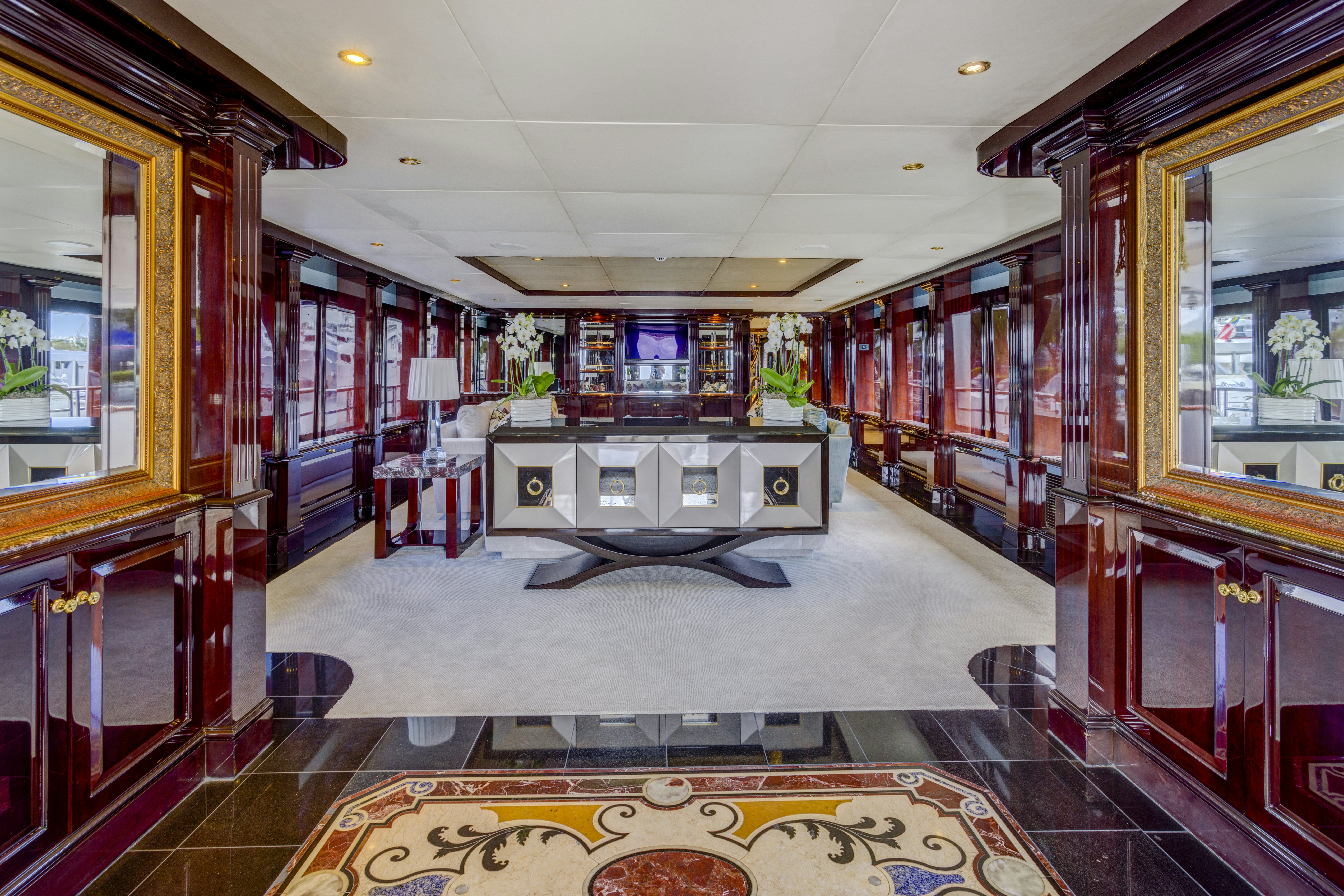 Upon stepping inside the IONIAN PRINCESS, you're greeted by an ambiance that exudes opulence at every turn. With six luxurious cabins capable of hosting up to twelve guests along with accommodation for nine dedicated crew members, this yacht guarantees exceptional service round-the-clock. The master stateroom stands out with its plush decor and spacious layout while additional guest rooms are equally lavish ensuring every occupant enjoys their time onboard in absolute comfort.