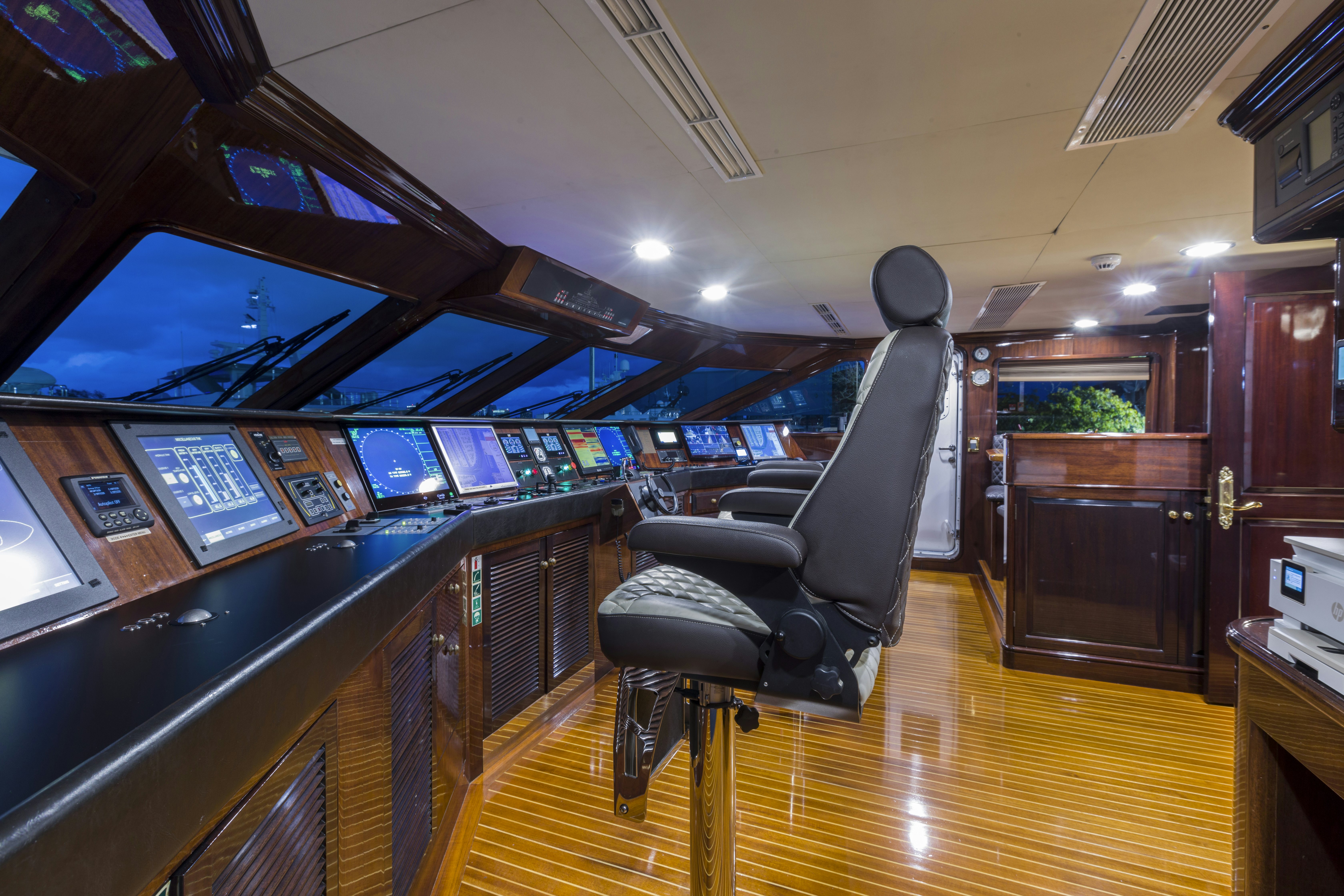 Underneath her sleek exterior lies powerful machinery that sets her apart from others in her class: Twin Caterpillar C32 engines each generating up to 1900 horsepower ensure swift cruising speeds of up to 12 knots and max speeds reaching up to15 knots – all controlled through Anschutz steering system providing precision navigation even under challenging conditions.