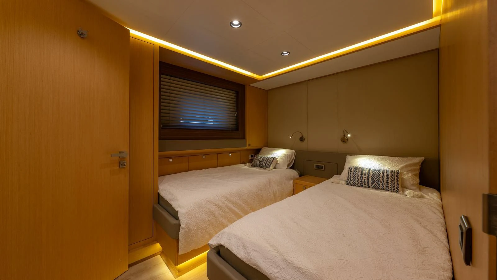 Accommodating up to 8 guests in 3 double and 1 twin cabin, along with a crew of 4, Jasmina III is equipped with advanced onboard systems, including hydraulic bow and stern thrusters and interconnected bilge and fire-fighting systems. With a highly motivated Owner and now located in Didim, Turkey, she is available for viewings.