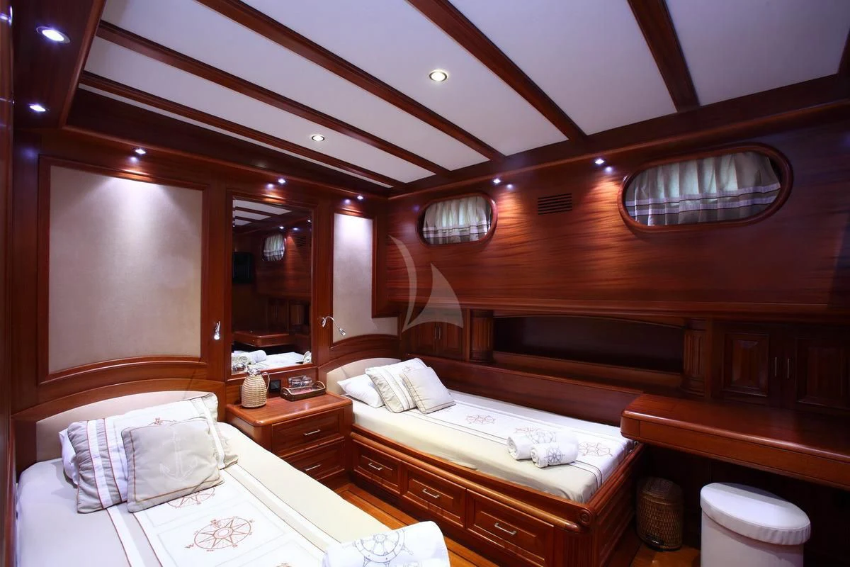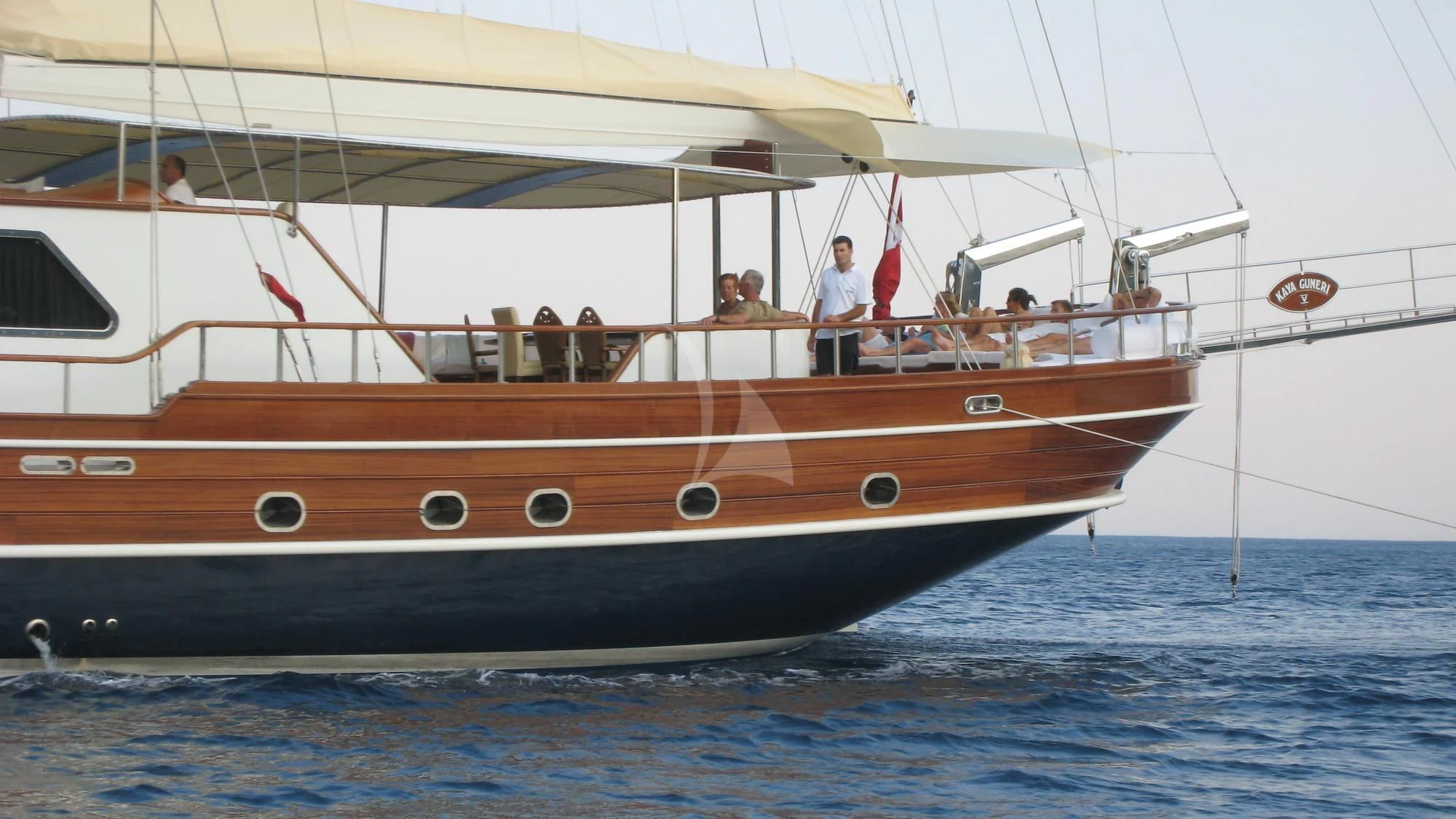 Allow me to introduce you to the epitome of luxury and elegance on water - KAYA GUNERI V. This yacht is a masterpiece, crafted meticulously by the renowned shipbuilders from Bodrum in 2009. With an impressive length overall (LOA) of 129 feet or approximately 39.5 meters, this beauty is a custom model that belongs to the esteemed category of sailing yachts, specifically the Gulet subcategory. The exterior design is a captivating blend of traditional and modern aesthetics, with its wooden hull material adding an element of timeless charm.