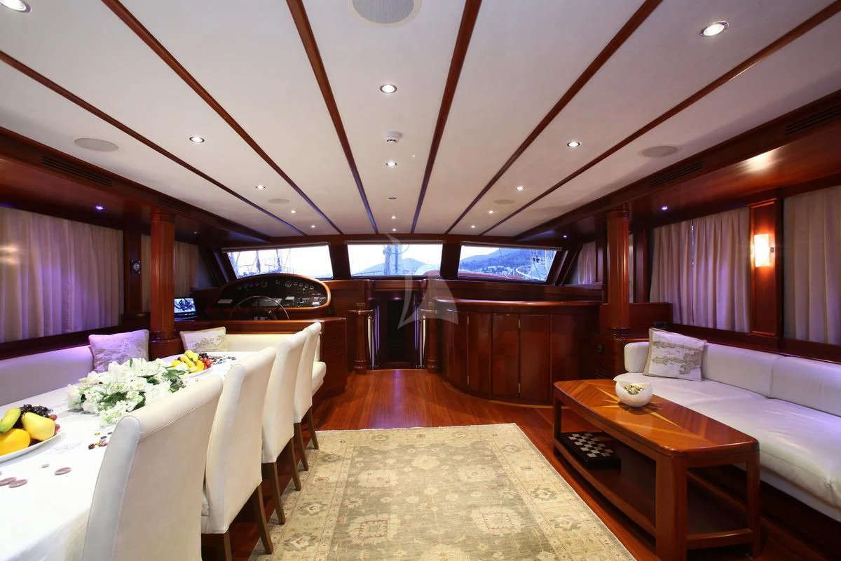 The main salon serves as a social hub where guests can unwind after a day filled with adventures on water. It comes equipped with Wi-Fi connectivity allowing you to stay connected even while you're away from land-based networks. A well-appointed dining area adds another layer of luxury where delicious meals prepared by skilled chefs can be savored amidst opulent surroundings.