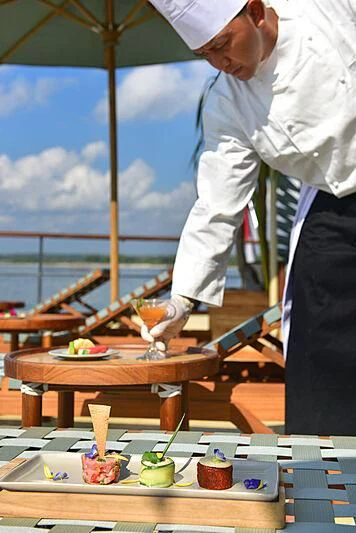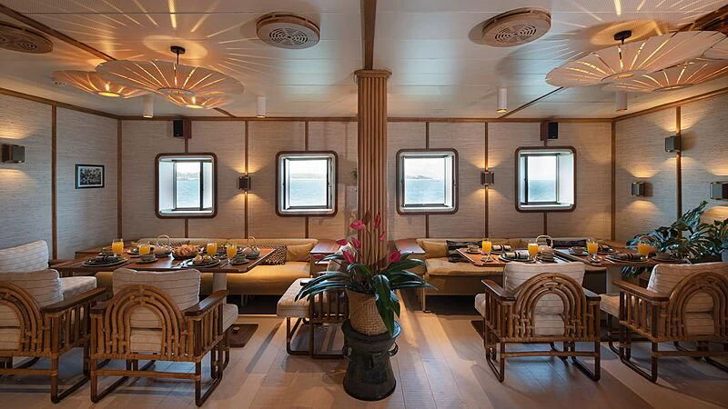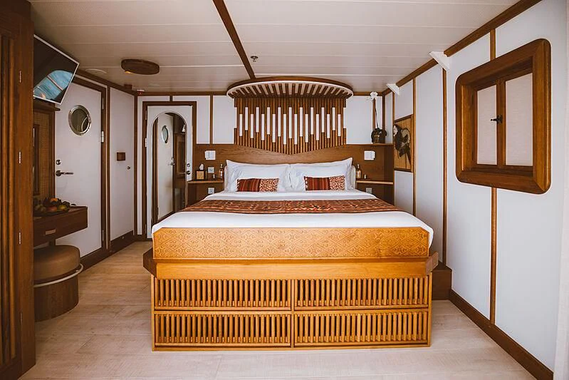 Stepping aboard the KUDANIL EXPLORER, guests are immediately enveloped in an ambiance of refined luxury. The interior design presents a harmonious blend between traditional elegance and modern comfort that can comfortably accommodate up to sixteen guests across eight cabins – each one more opulent than the last.