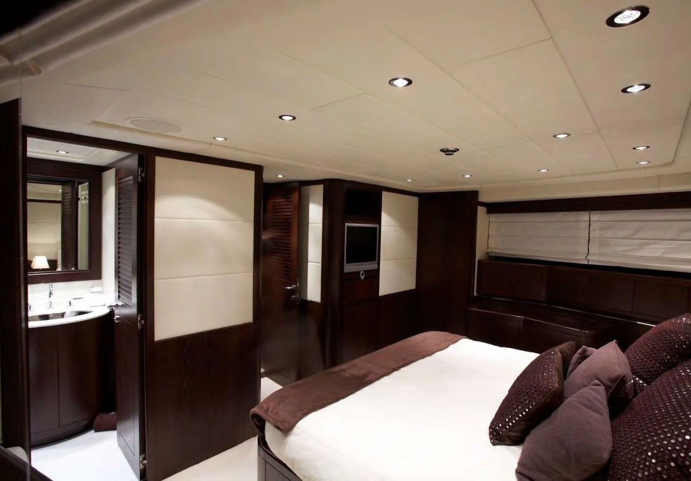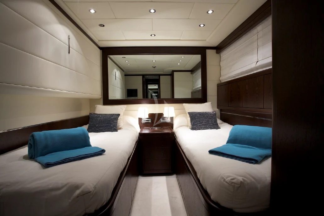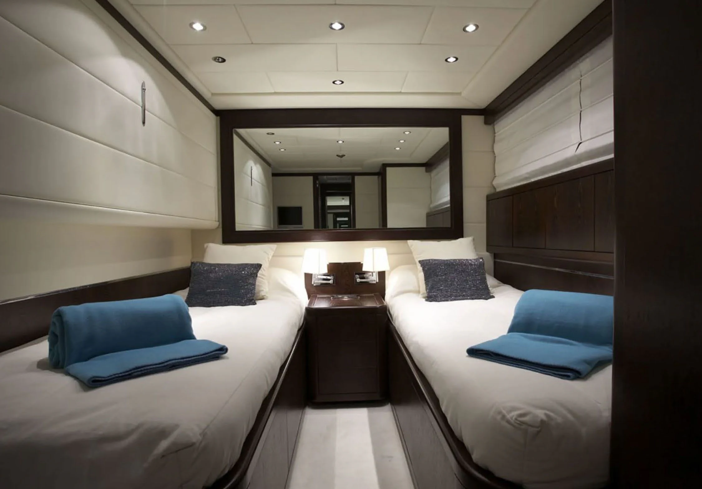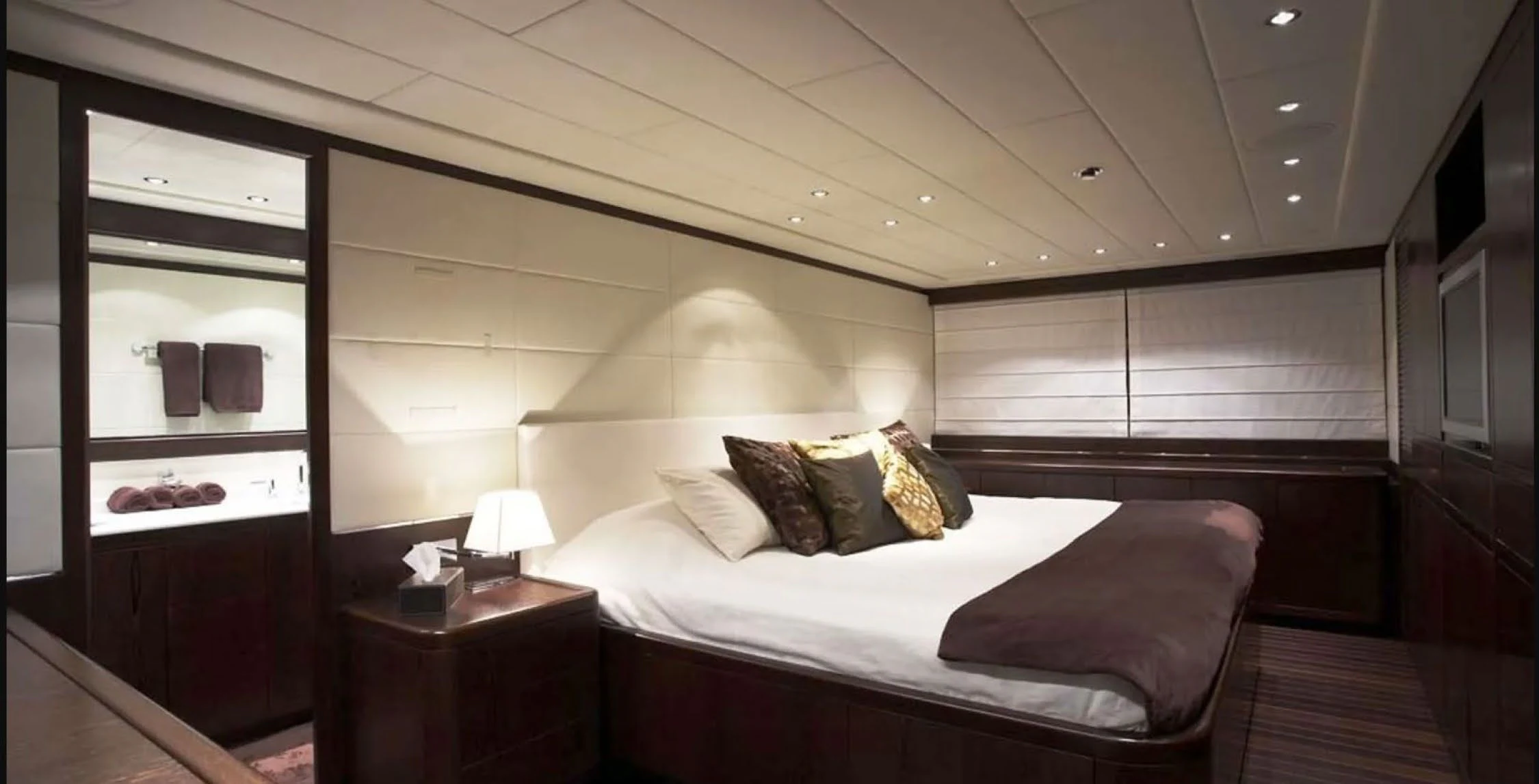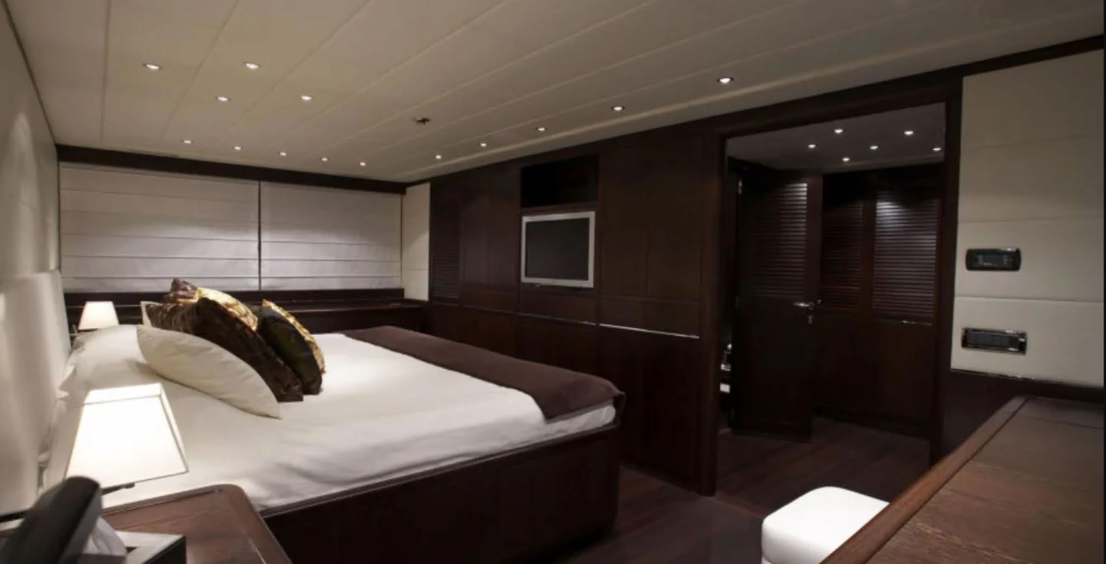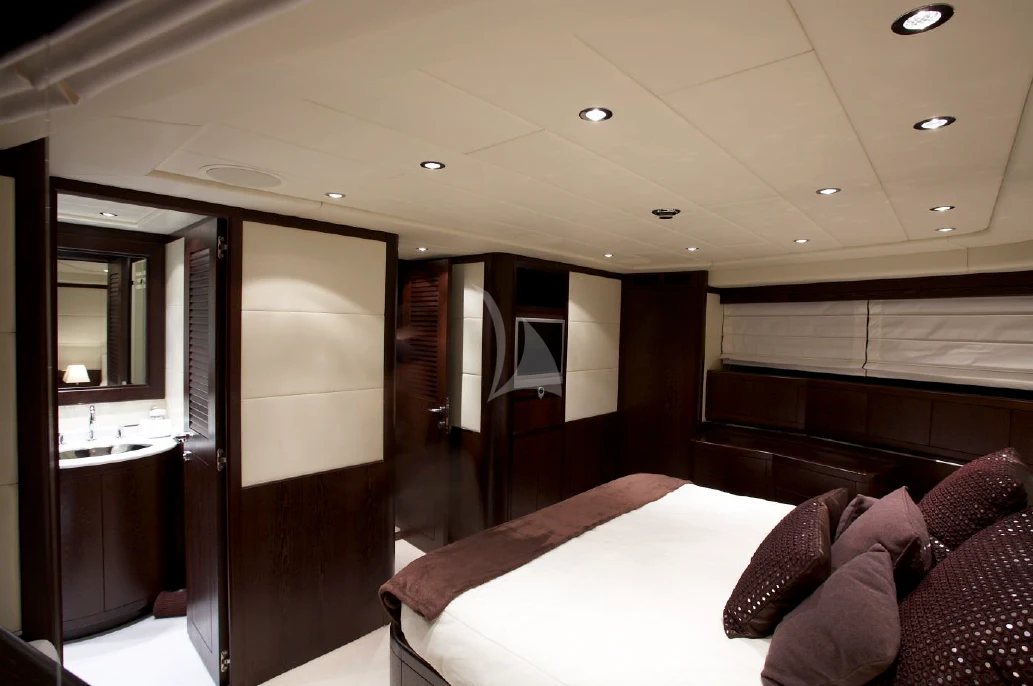 Accommodation aboard the yacht is arranged for up to seven guests in three well-appointed staterooms. The master suite offers a private and comfortable retreat, while the VIP stateroom and twin guest cabin, which includes a Pullman berth, provide flexible accommodation options for family and guests. Crew accommodation for four allows for professional service without compromising guest privacy, making the yacht equally suitable for private use or commercial operation.