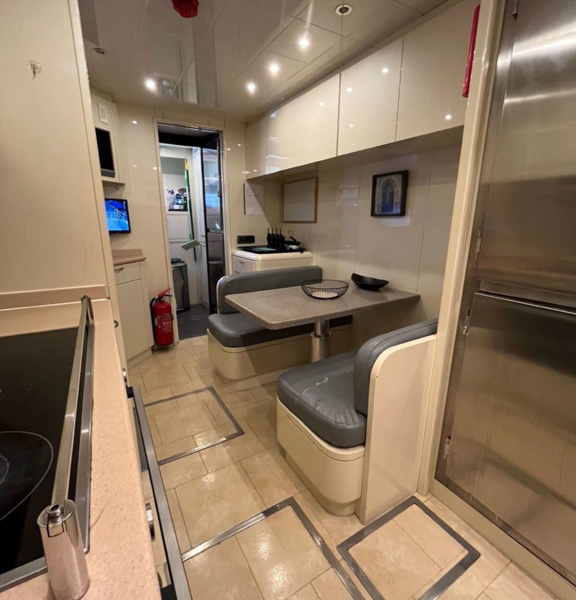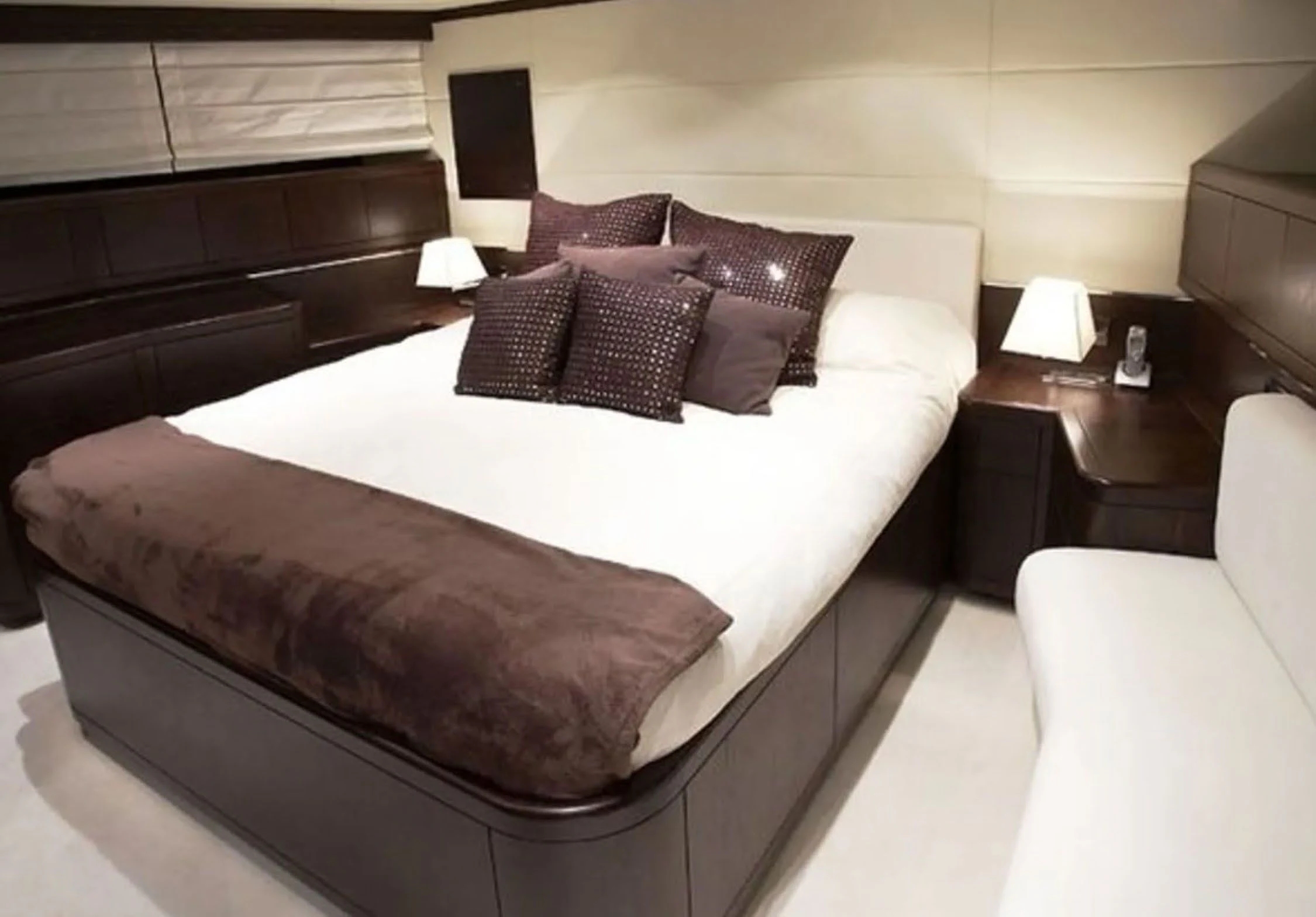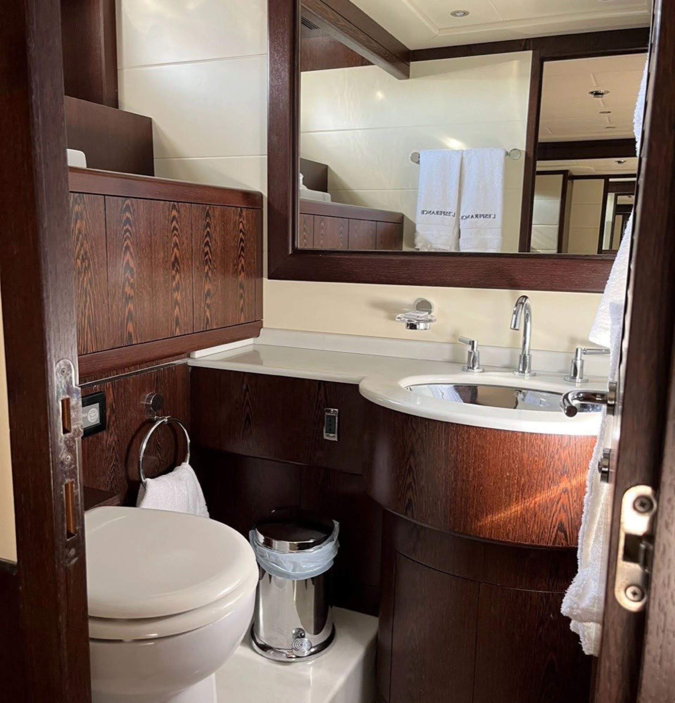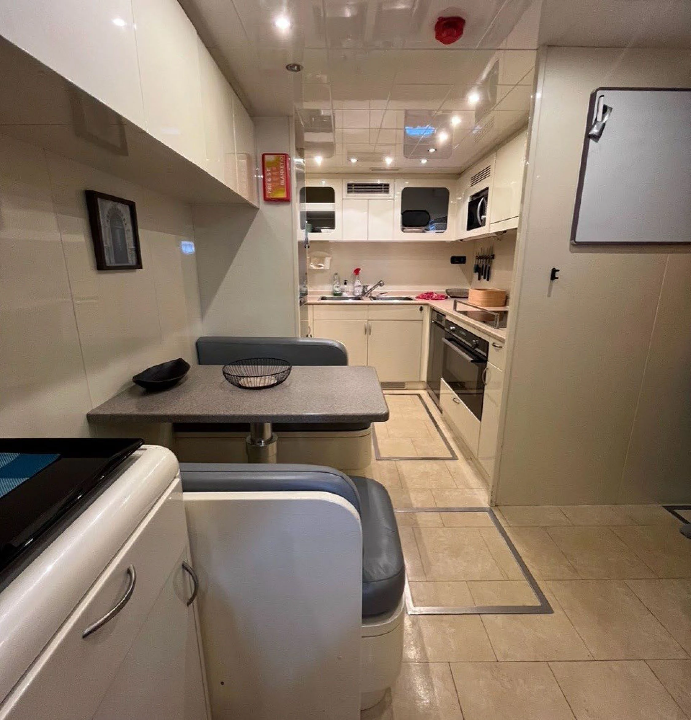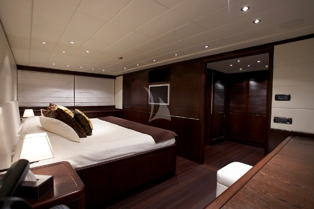 Accommodation aboard the yacht is arranged for up to seven guests in three well-appointed staterooms. The master suite offers a private and comfortable retreat, while the VIP stateroom and twin guest cabin, which includes a Pullman berth, provide flexible accommodation options for family and guests. Crew accommodation for four allows for professional service without compromising guest privacy, making the yacht equally suitable for private use or commercial operation.